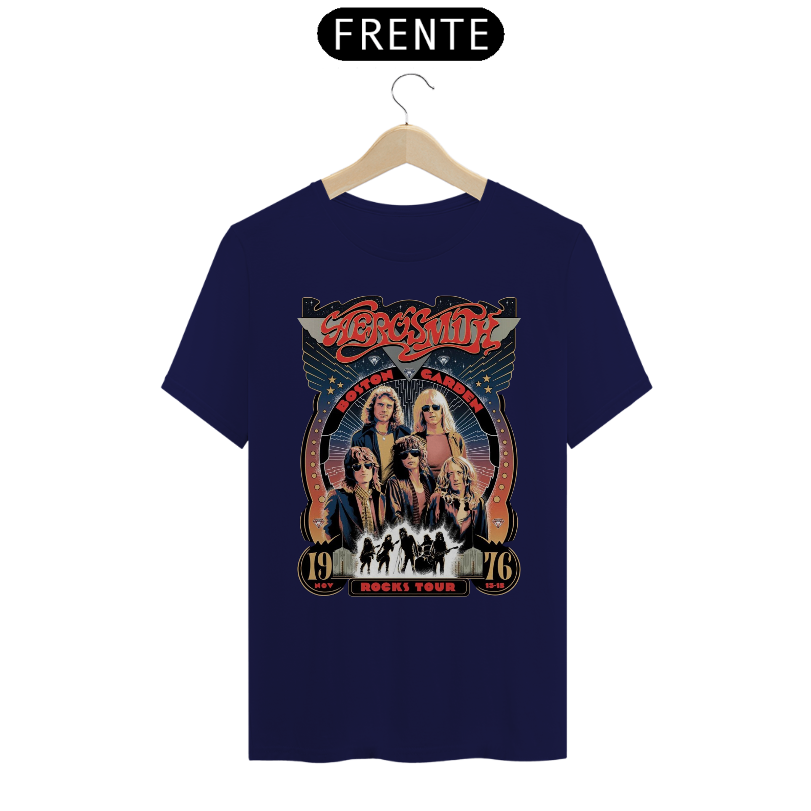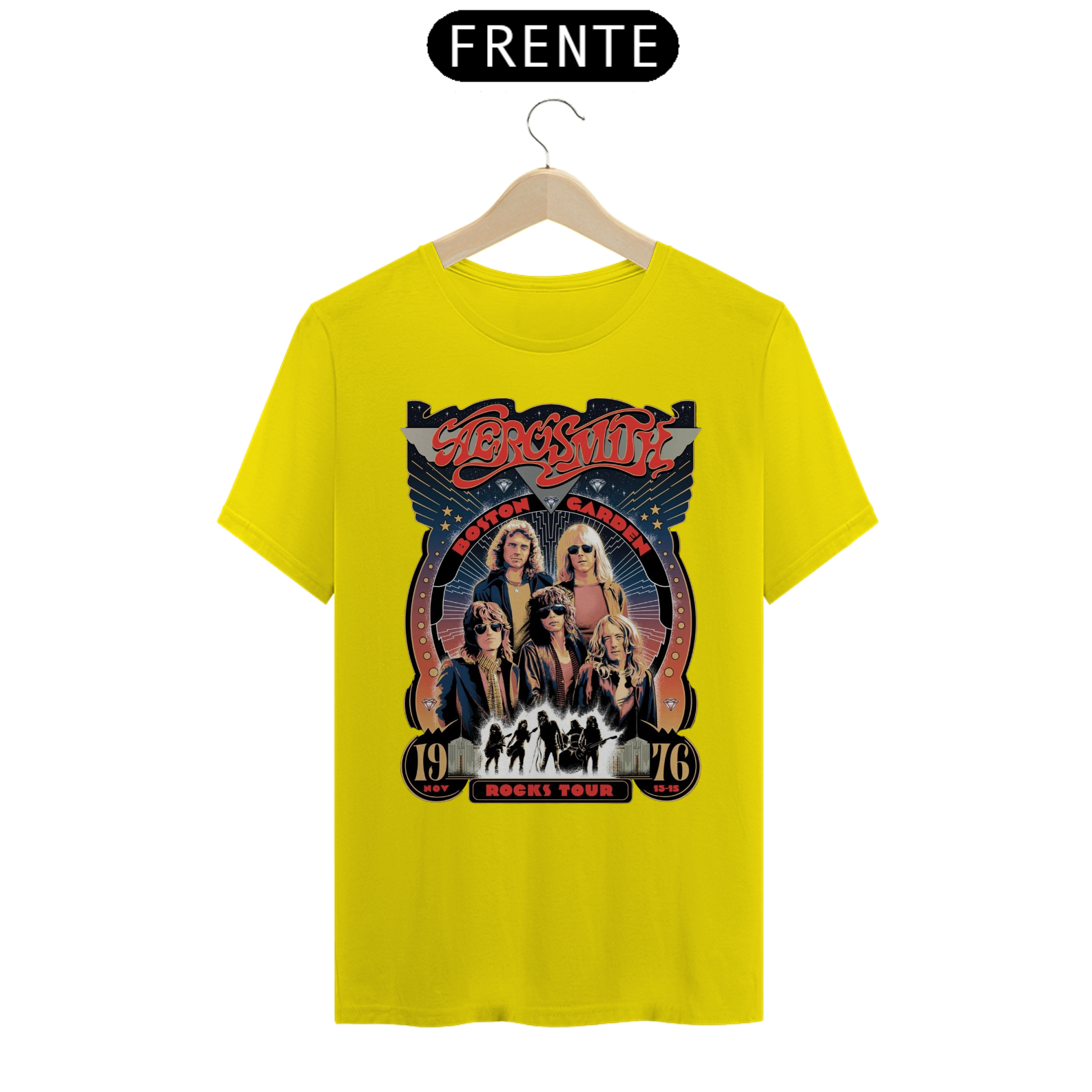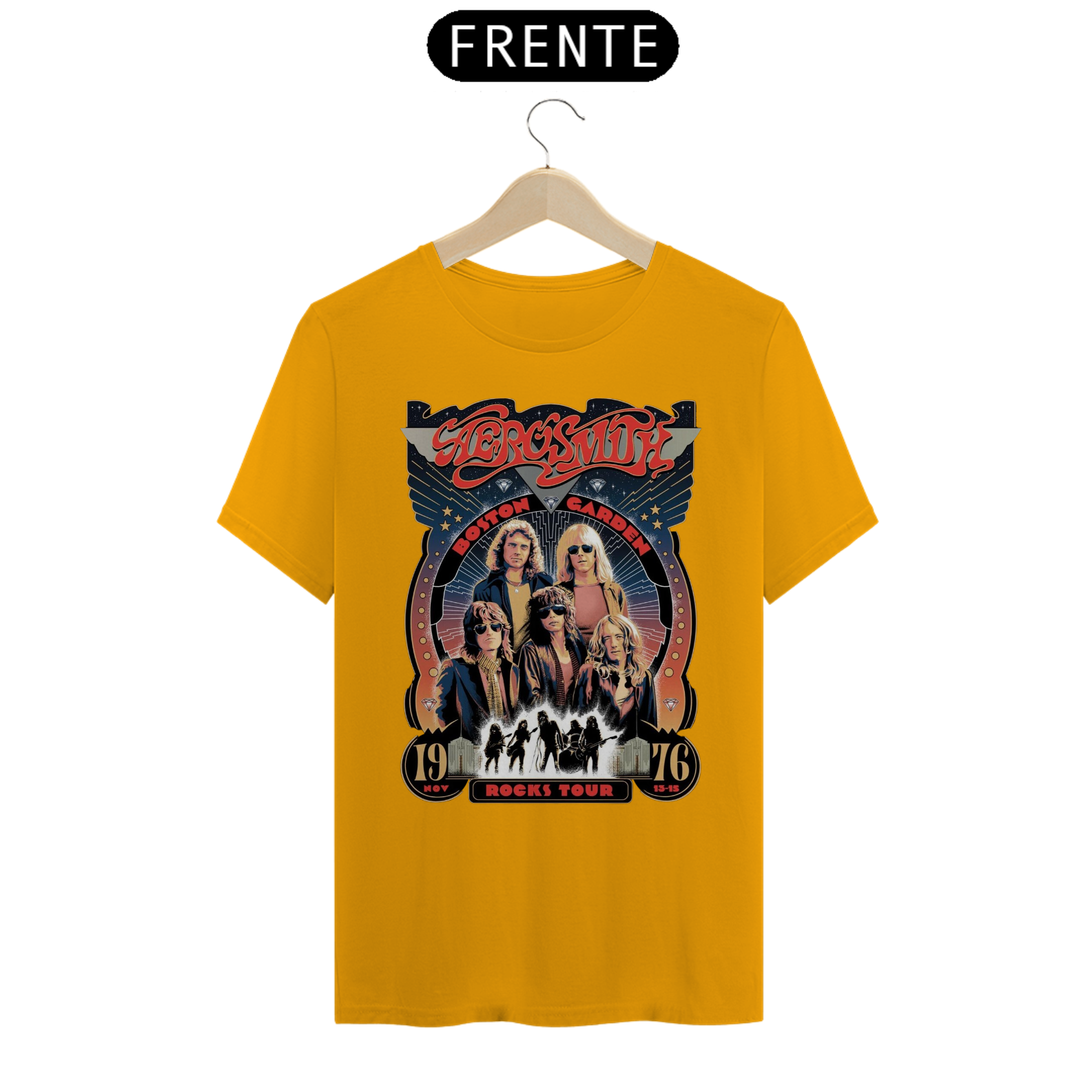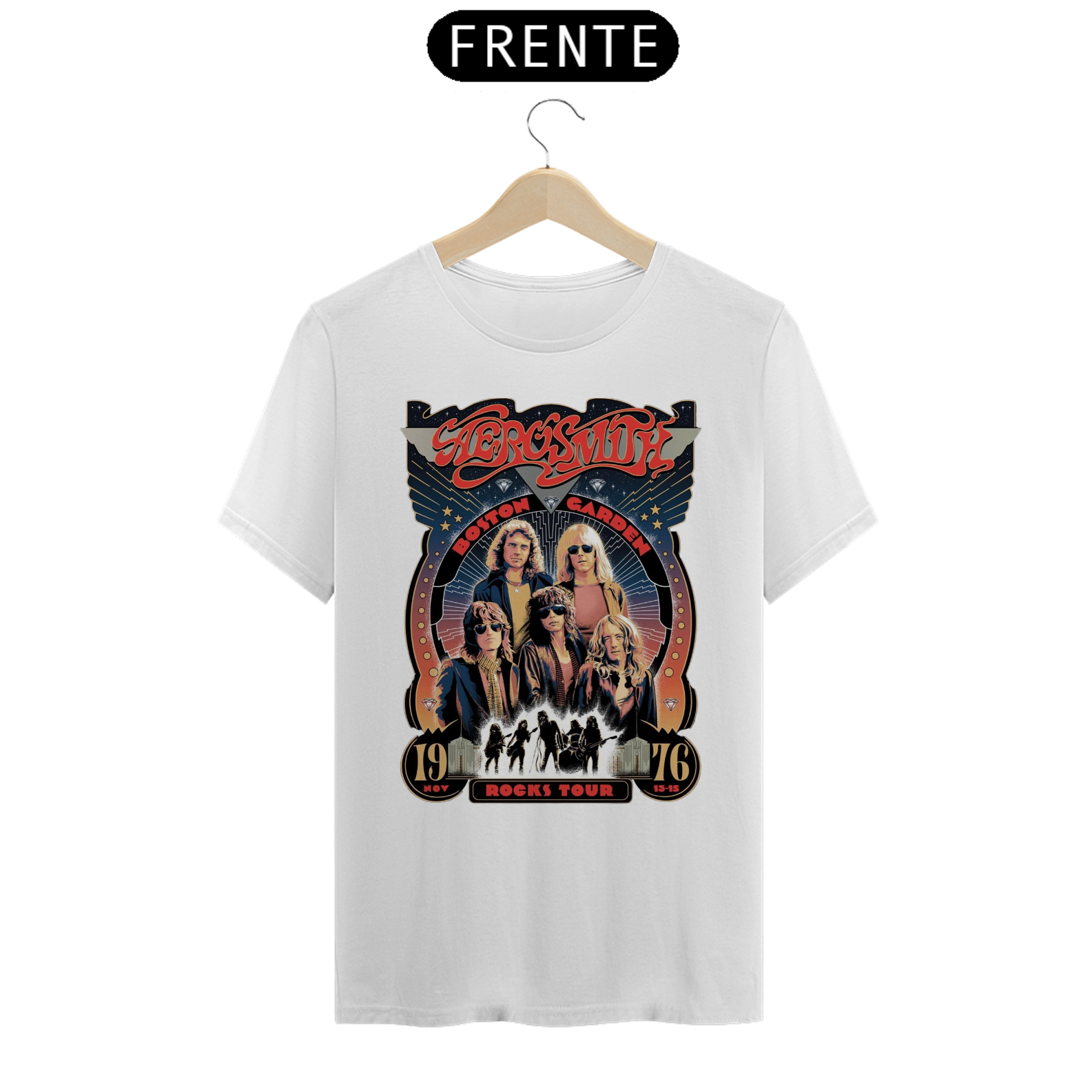 Camiseta estampada com a lendária banda Aerosmith: Rock clássico em grande estilo.