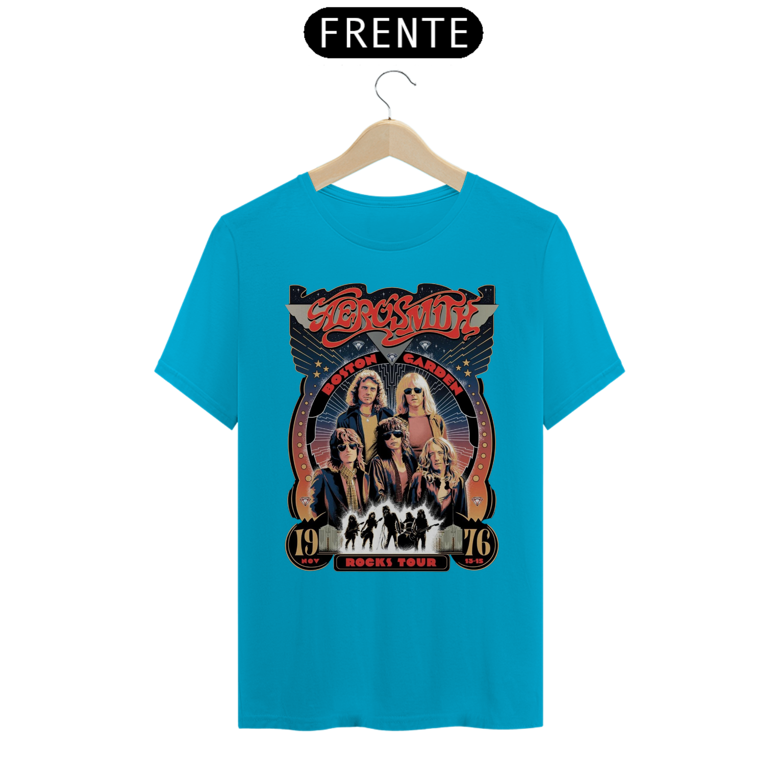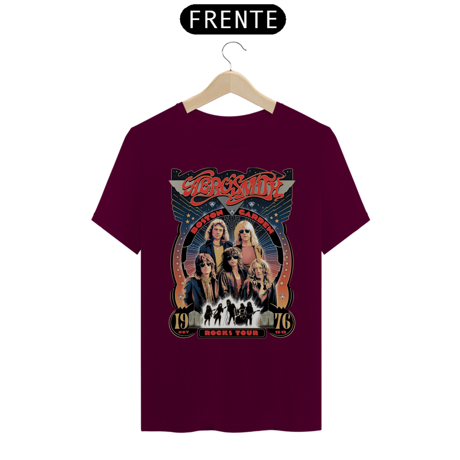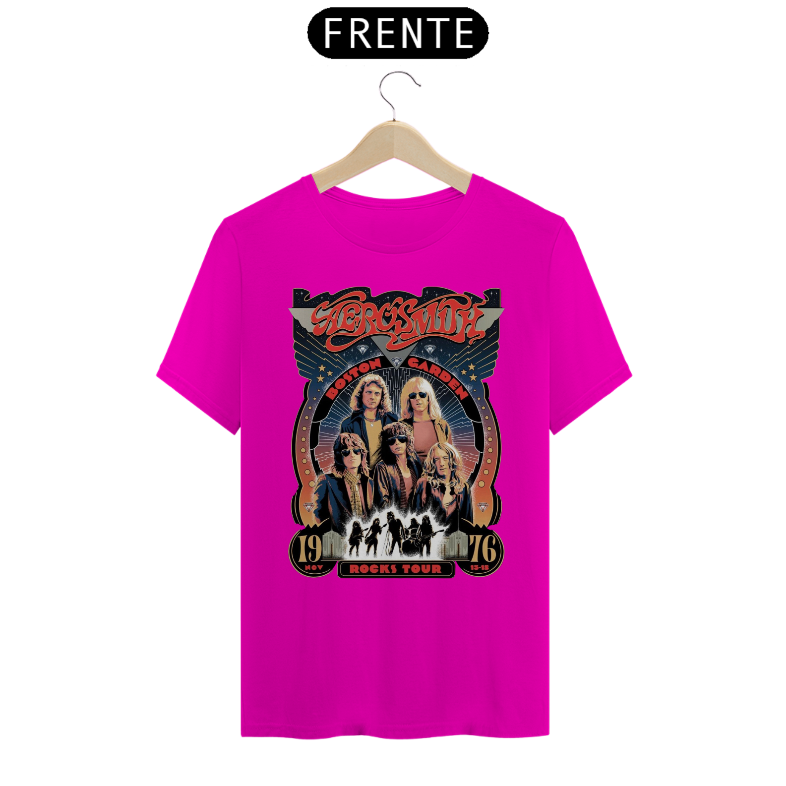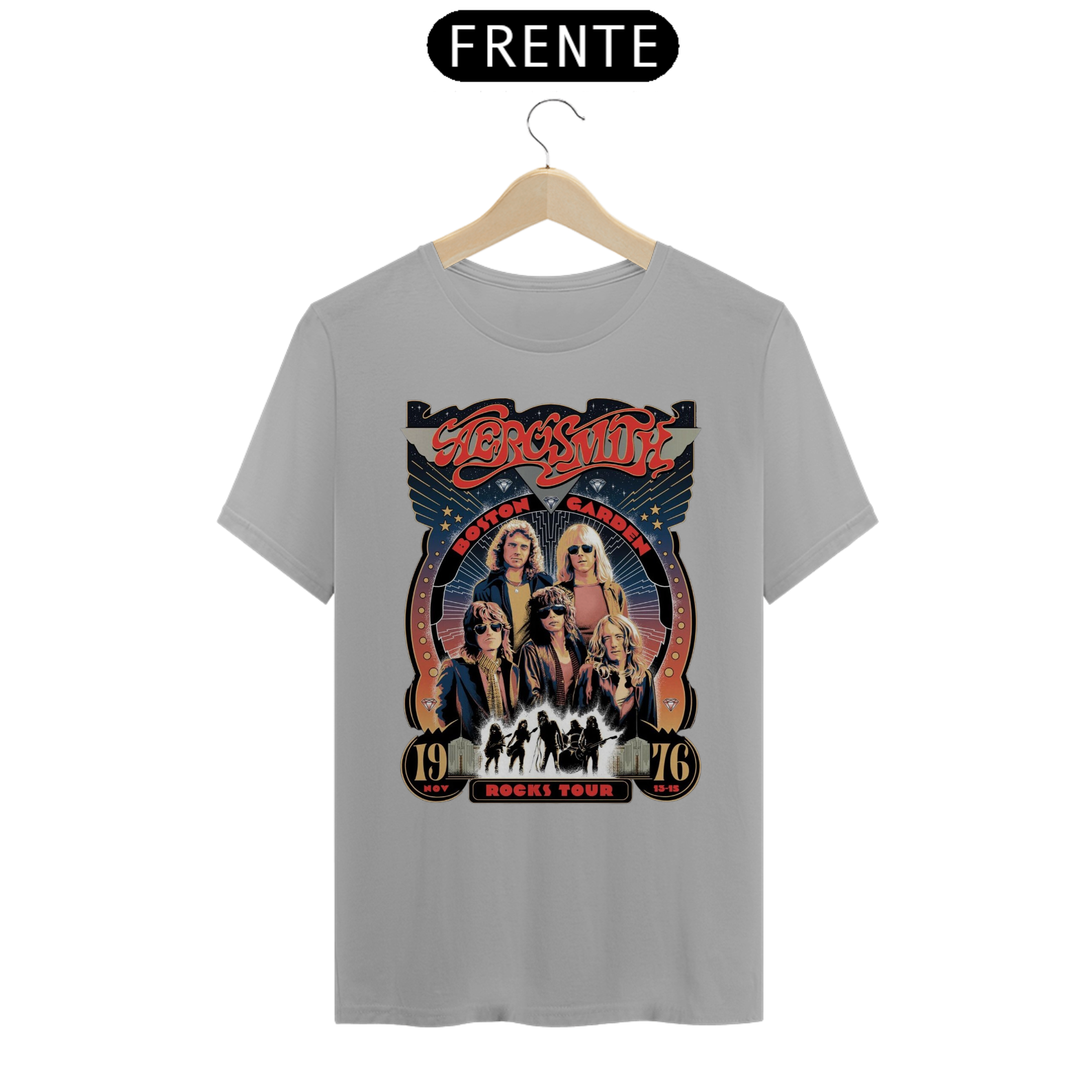 Camiseta estampada com a lendária banda Aerosmith: Rock clássico em grande estilo.