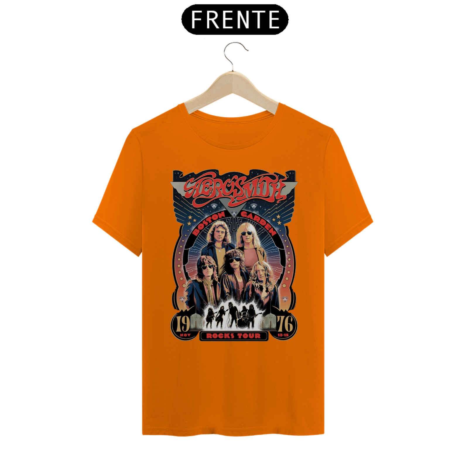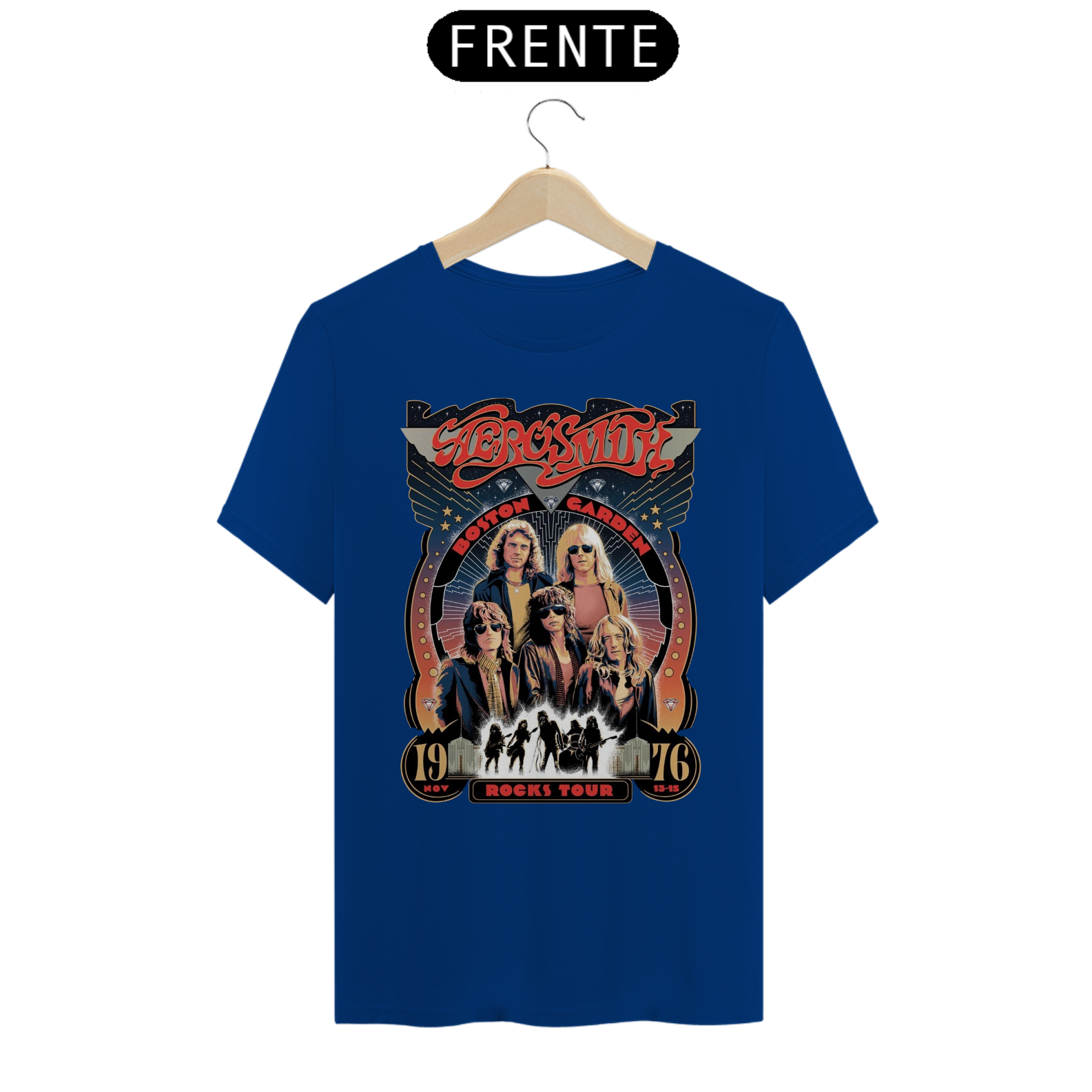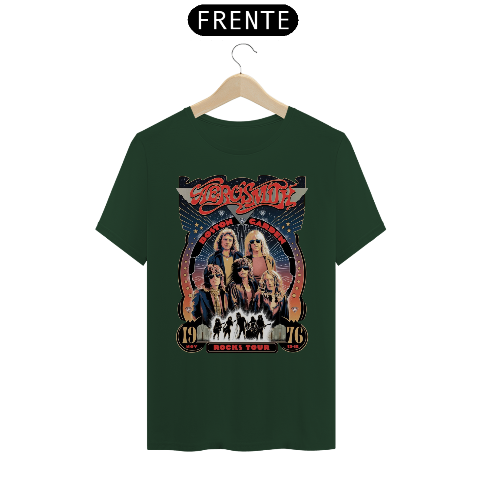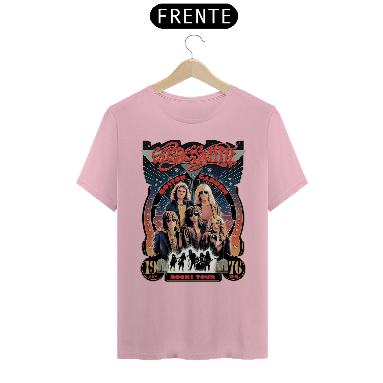 Camiseta estampada com a lendária banda Aerosmith: Rock clássico em grande estilo.