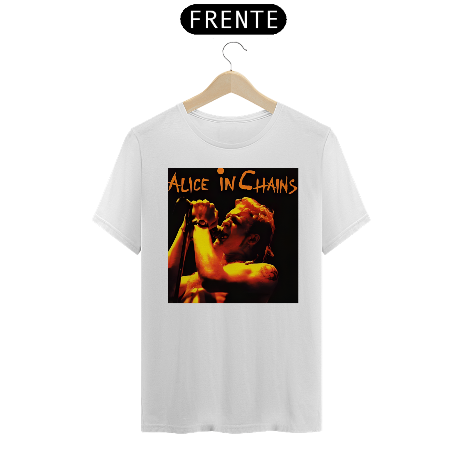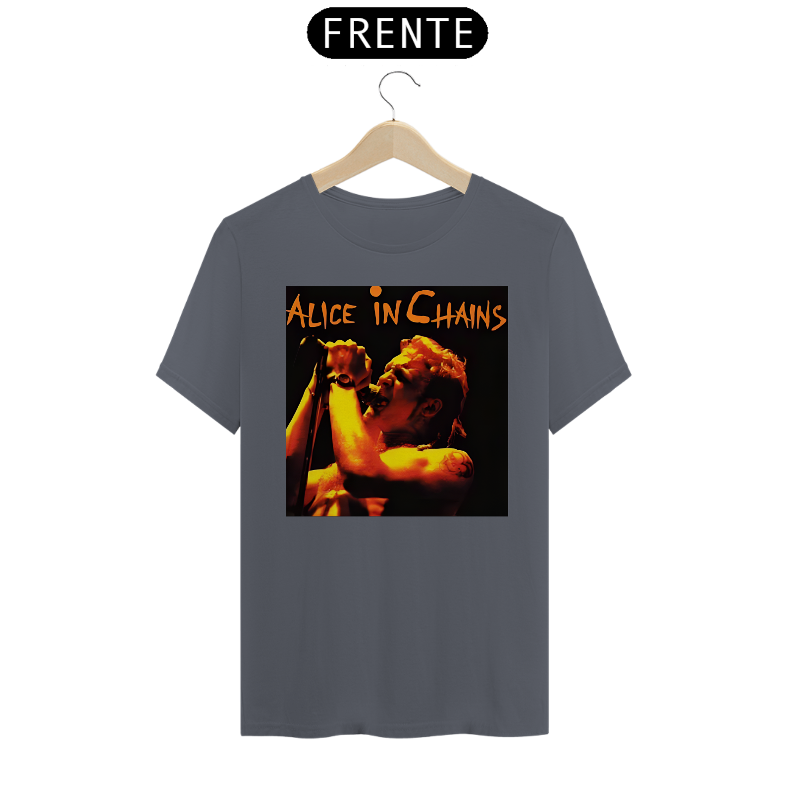 Afunde-se na intensidade do grunge com esta camiseta estampada do Alice In Chains. A arte sombria captura a profundidade emocional e a sonoridade única que definem a banda.