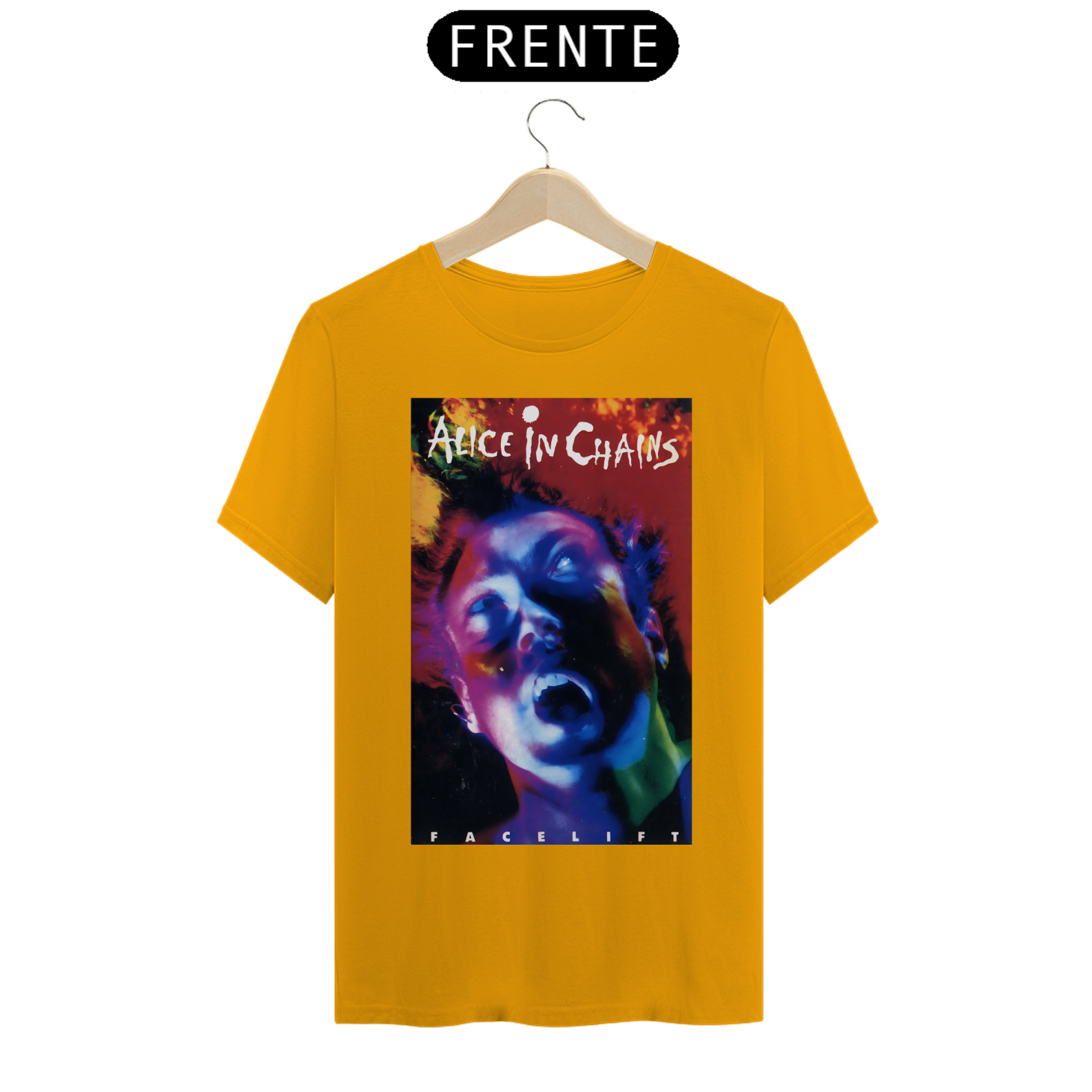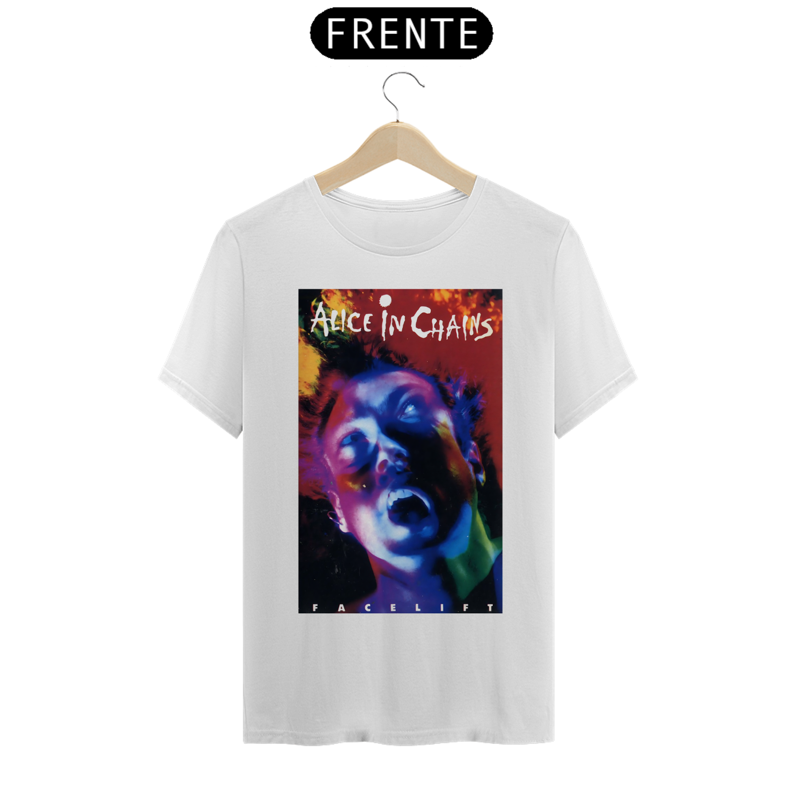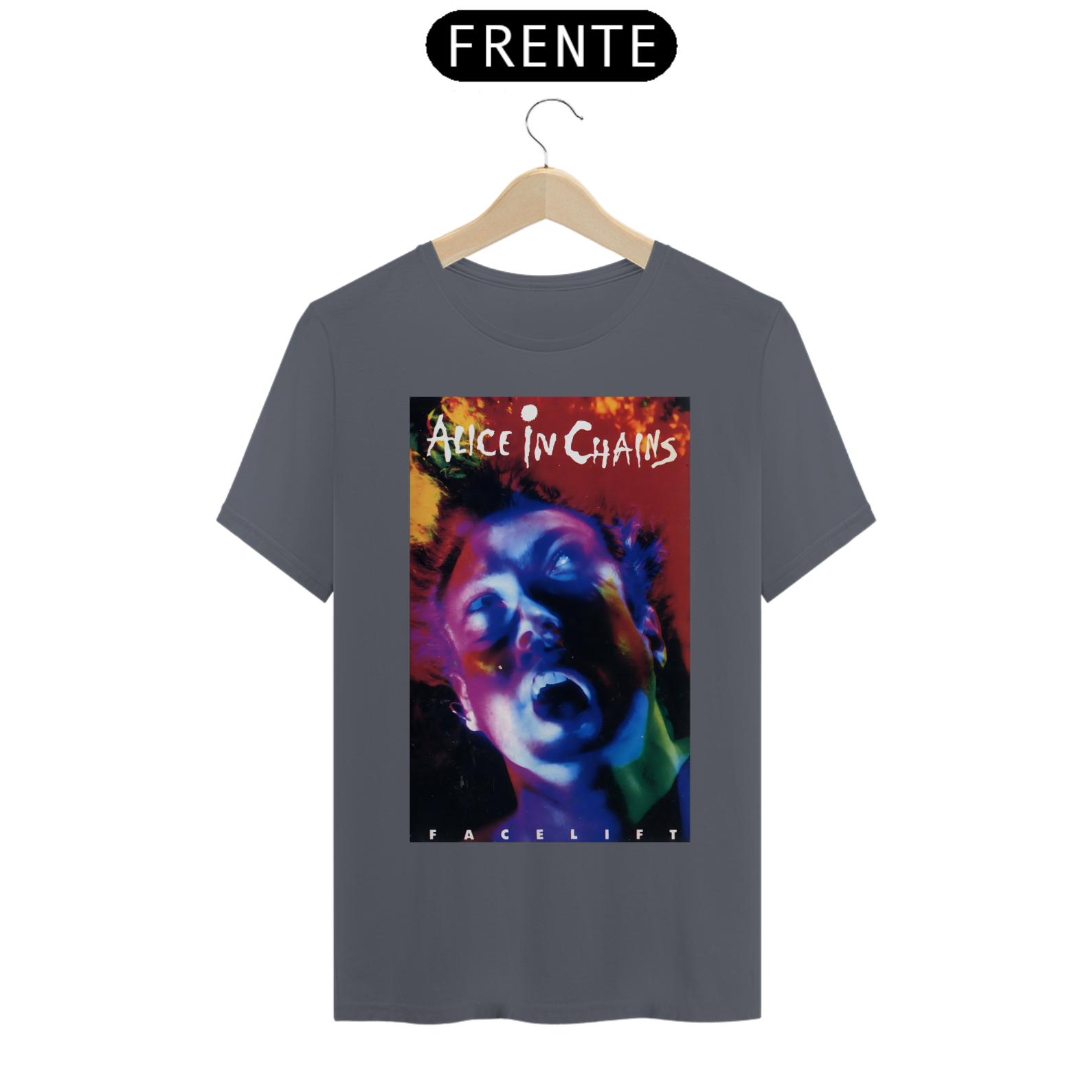 Afunde-se na intensidade do grunge com esta camiseta estampada do Alice In Chains. A arte sombria captura a profundidade emocional e a sonoridade única que definem a banda.