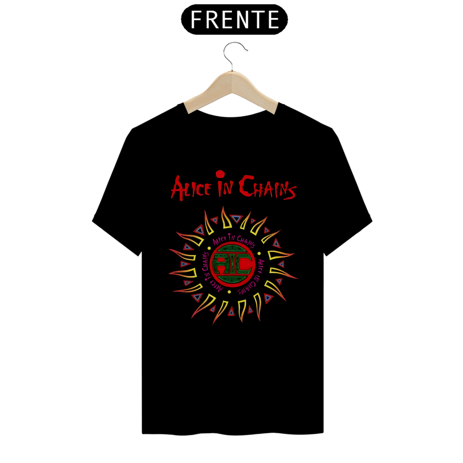 Afunde-se na intensidade do grunge com esta camiseta estampada do Alice In Chains. A arte sombria captura a profundidade emocional e a sonoridade única que definem a banda.
