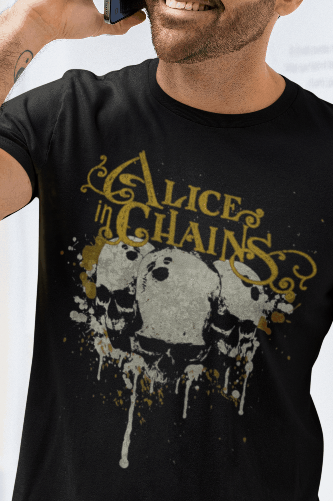 Afunde-se na intensidade do grunge com esta camiseta estampada do Alice In Chains. A arte sombria captura a profundidade emocional e a sonoridade única que definem a banda.