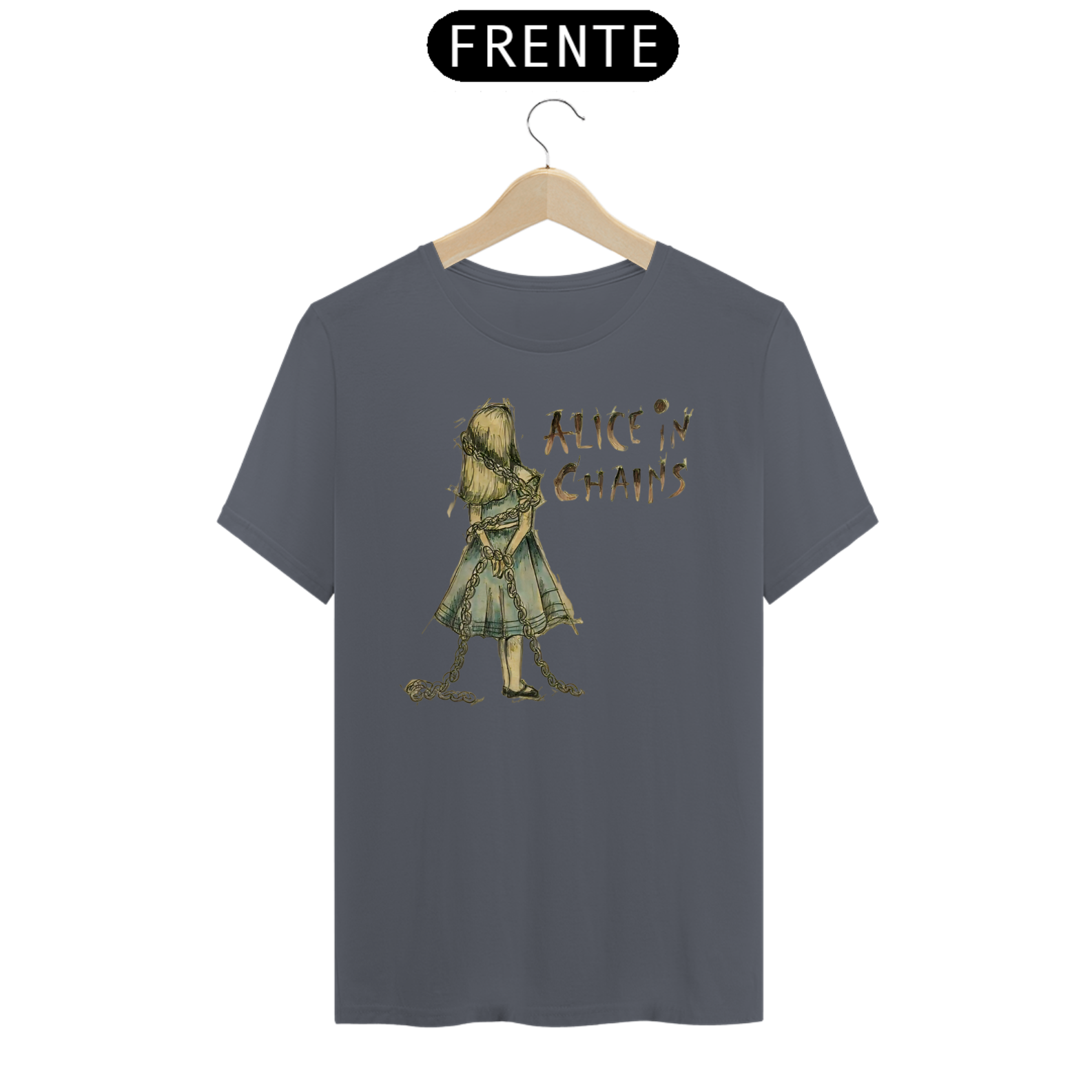 Afunde-se na intensidade do grunge com esta camiseta estampada do Alice In Chains. A arte sombria captura a profundidade emocional e a sonoridade única que definem a banda.