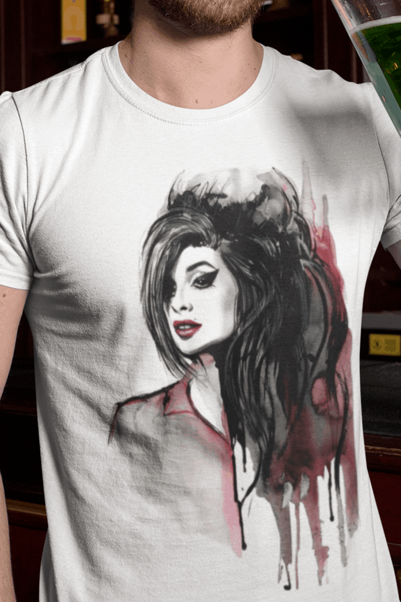 Vista-se com estilo e reverencie a lendária Amy Winehouse com esta camiseta estampada. A arte detalhada captura a alma única da diva do soul. Uma homenagem fashion à inesquecível voz que deixou sua marca na música.