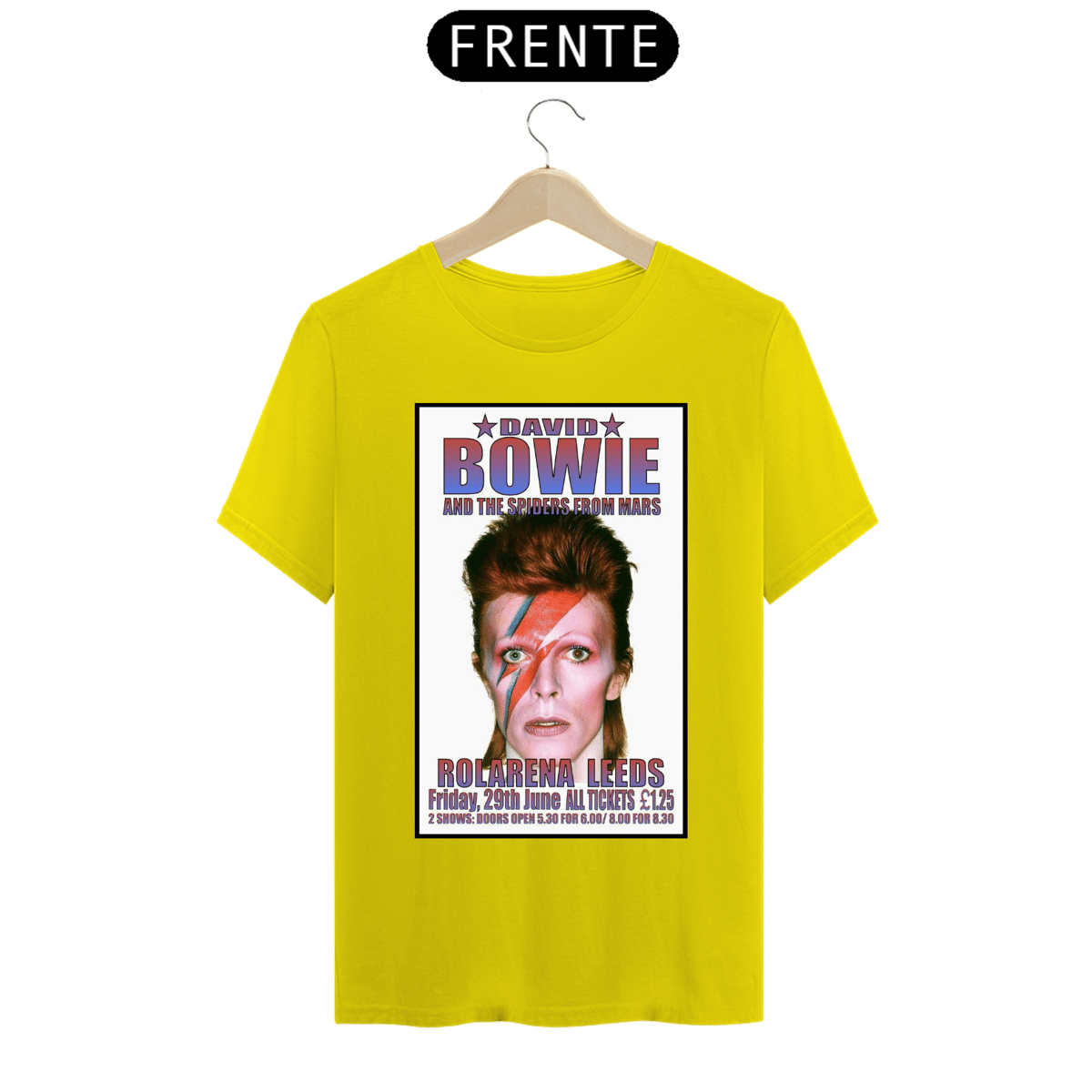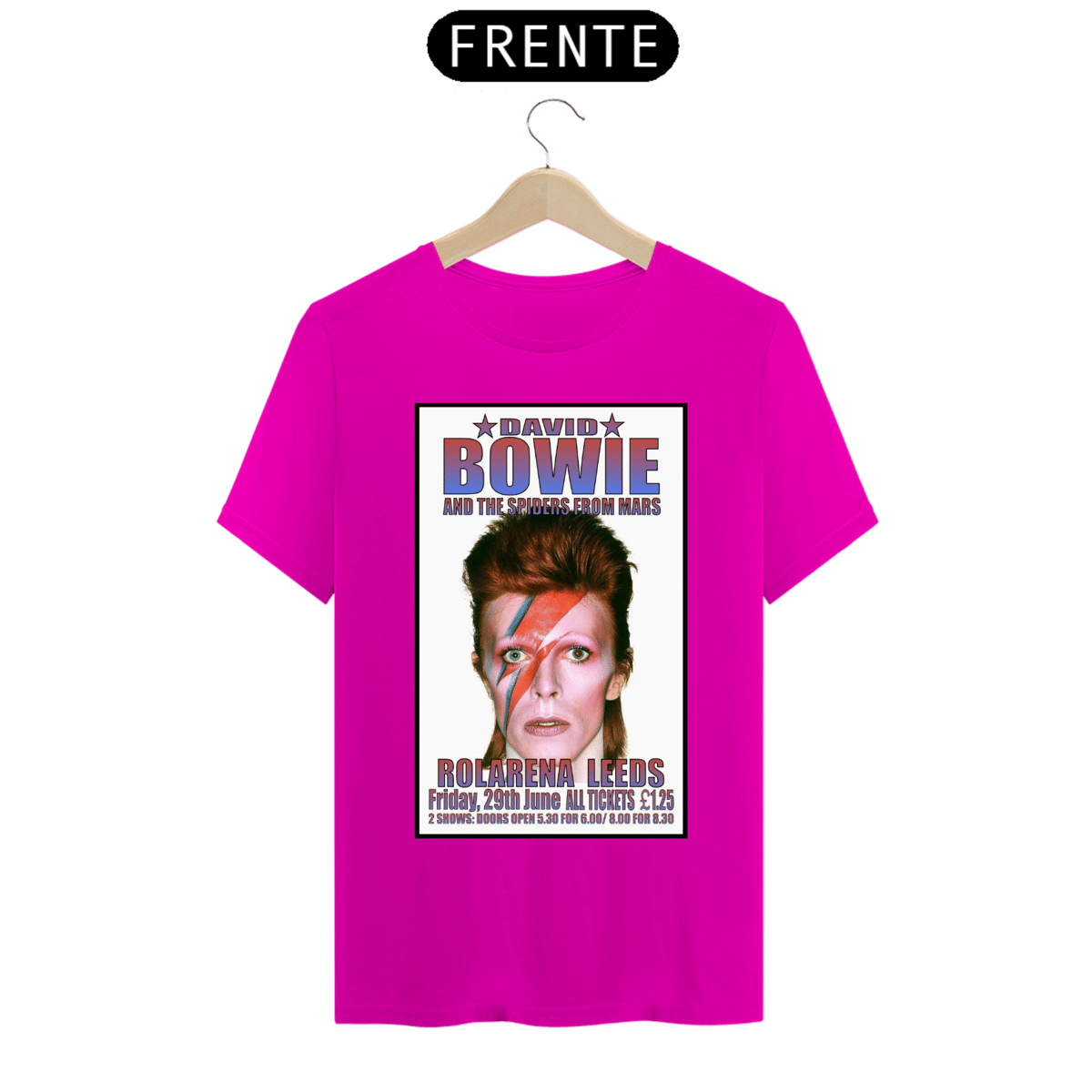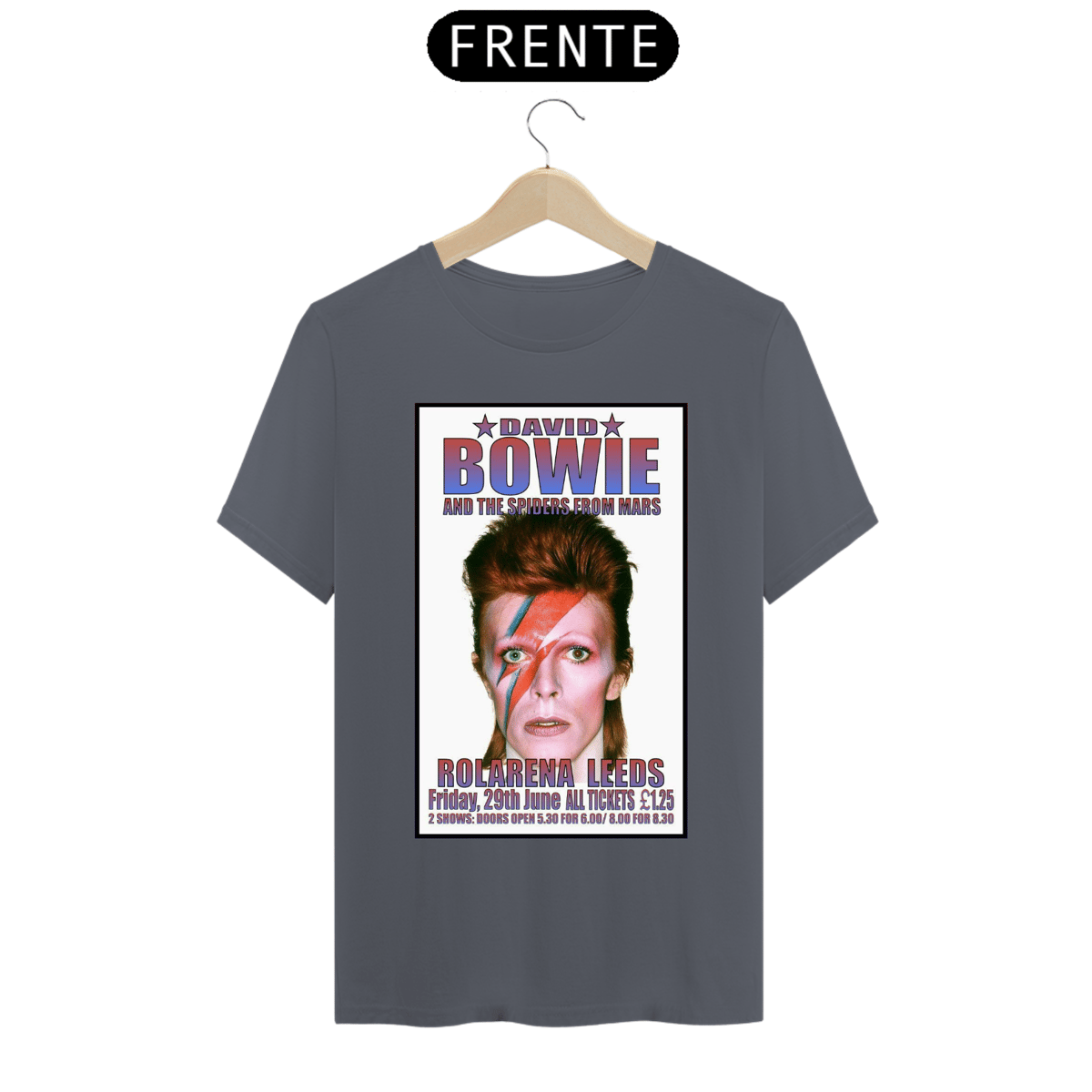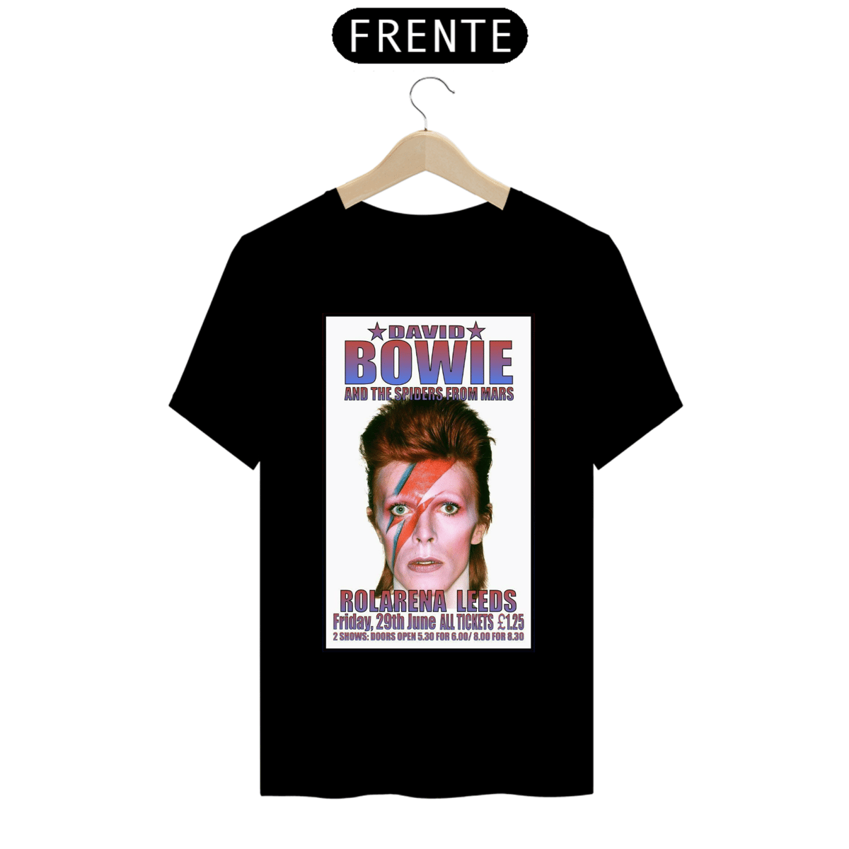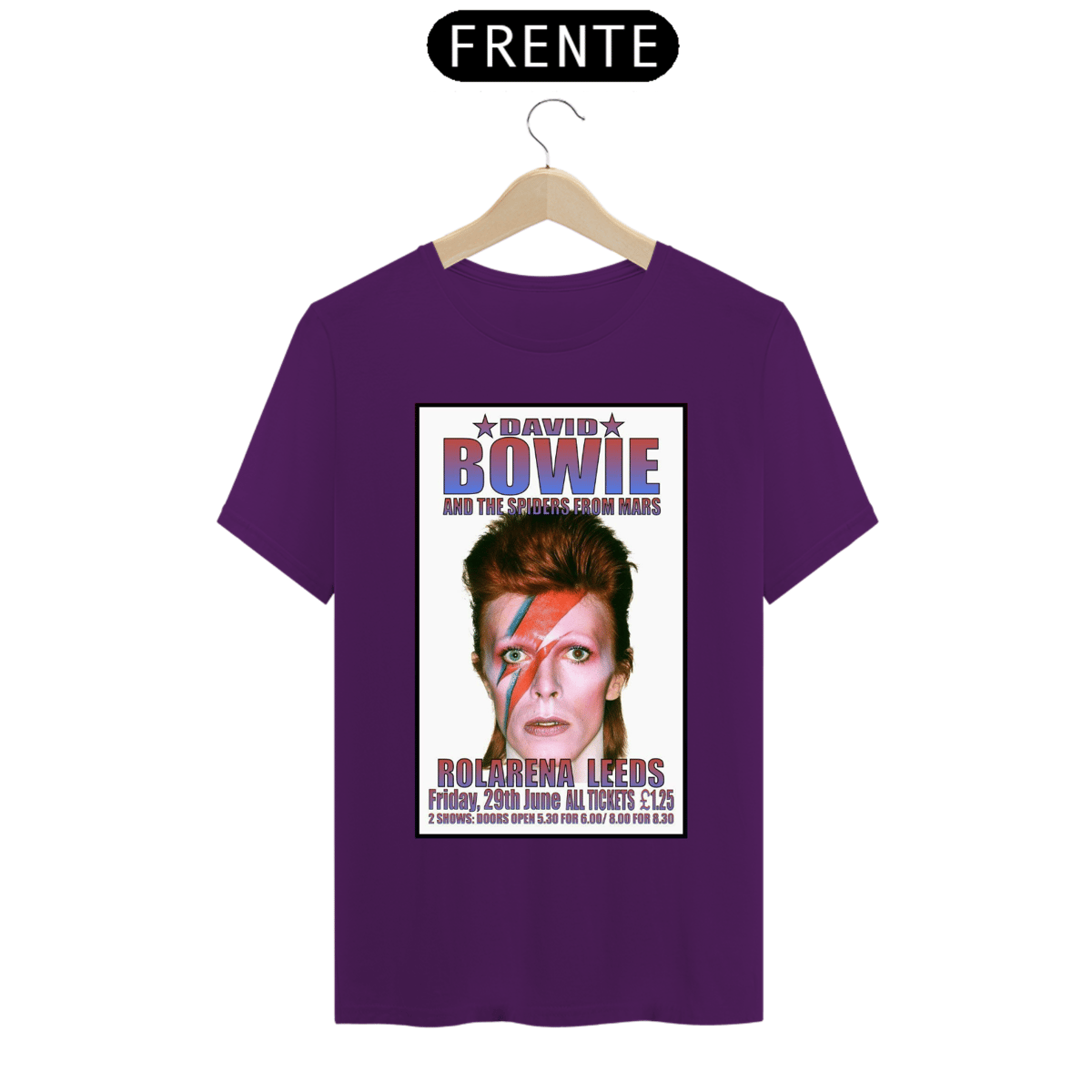 Esta camiseta estampada é uma homenagem ao lendário músico e ícone do rock, David Bowie. A estampa traz uma imagem icônica de David Bowie, representando sua ousadia, estilo e inovação artística.