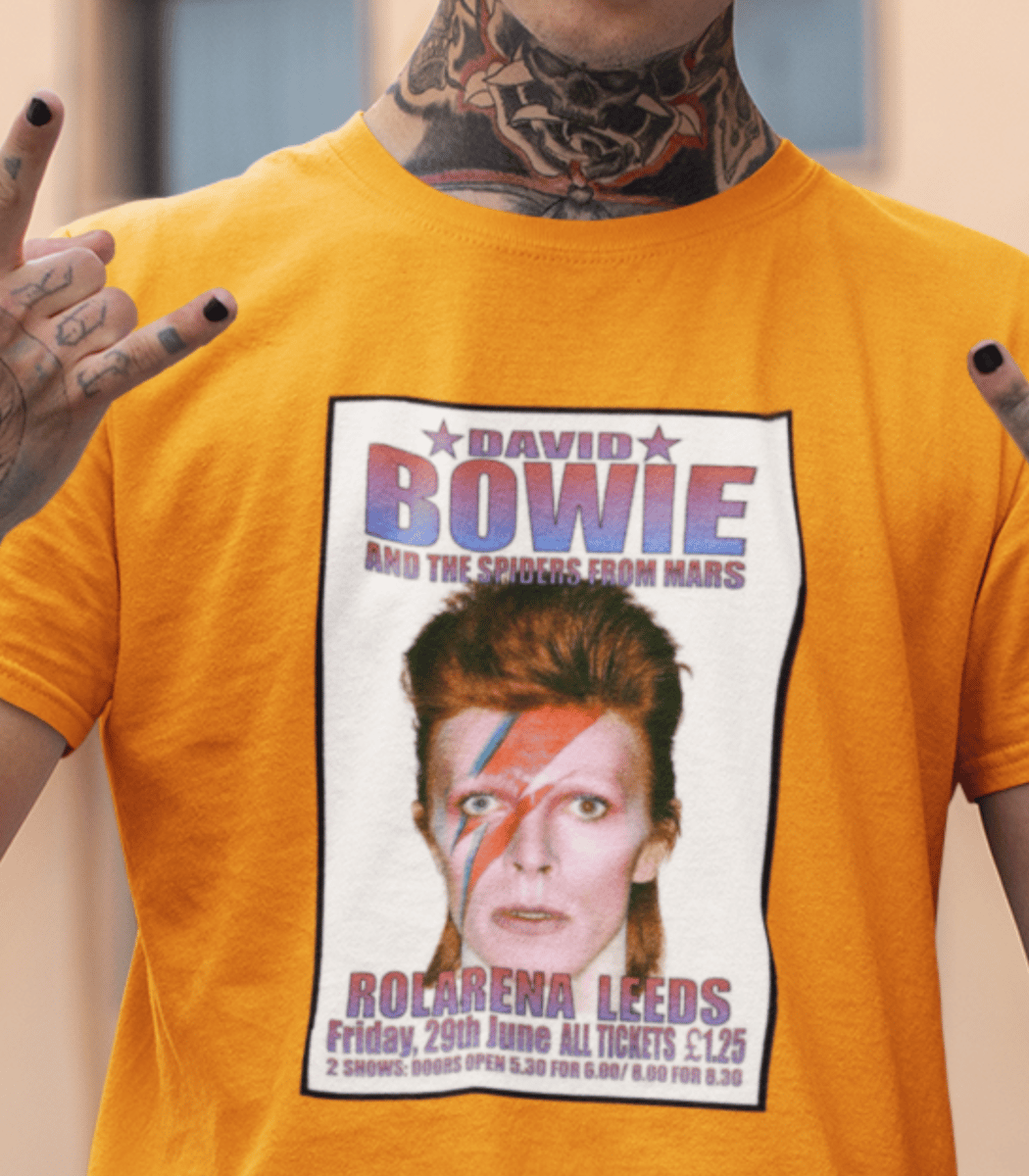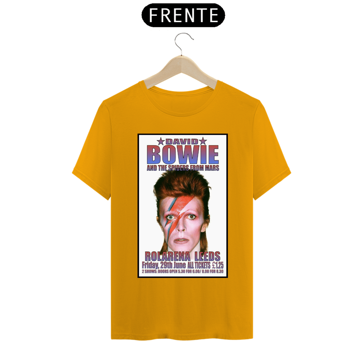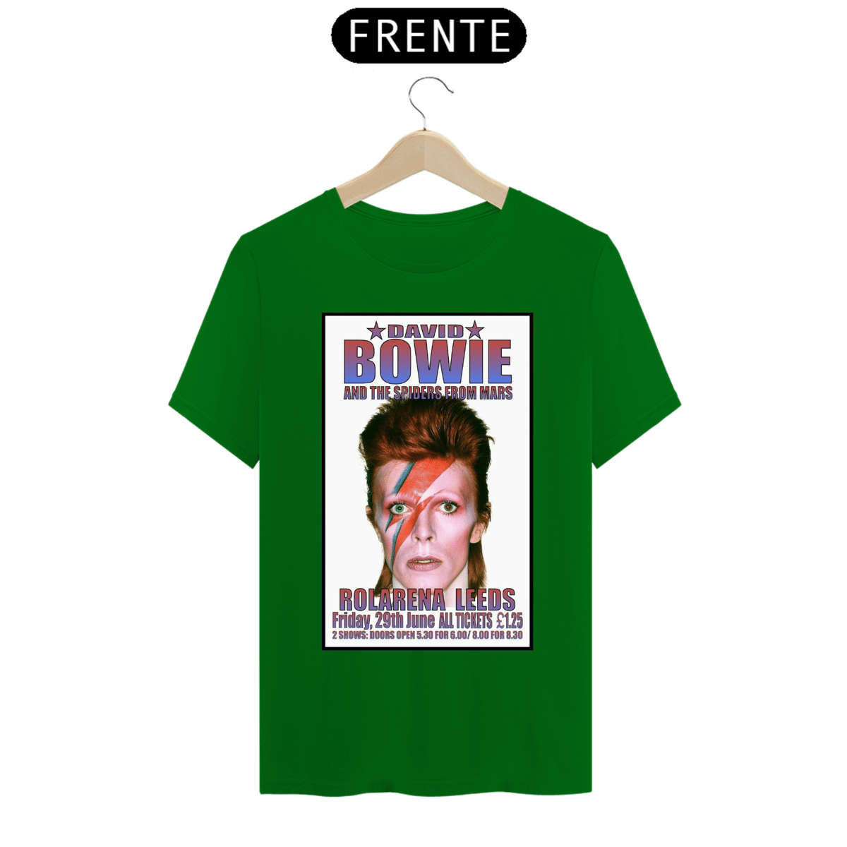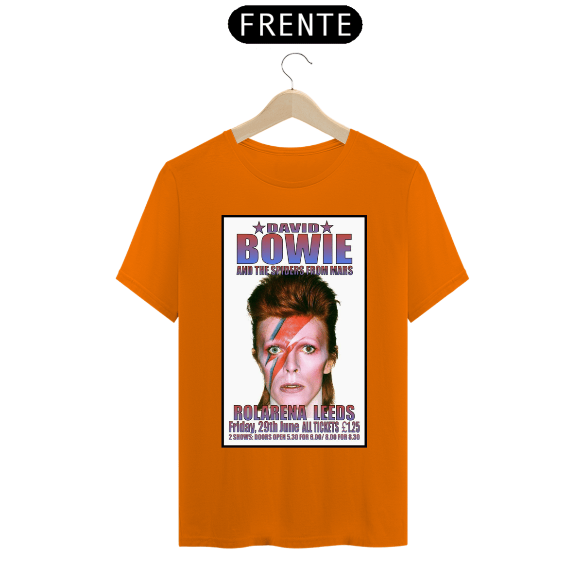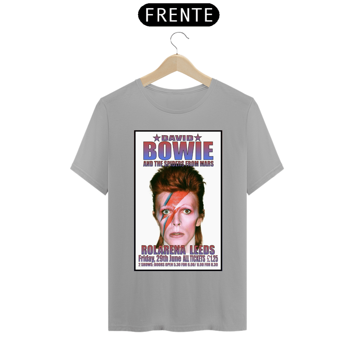 Esta camiseta estampada é uma homenagem ao lendário músico e ícone do rock, David Bowie. A estampa traz uma imagem icônica de David Bowie, representando sua ousadia, estilo e inovação artística.