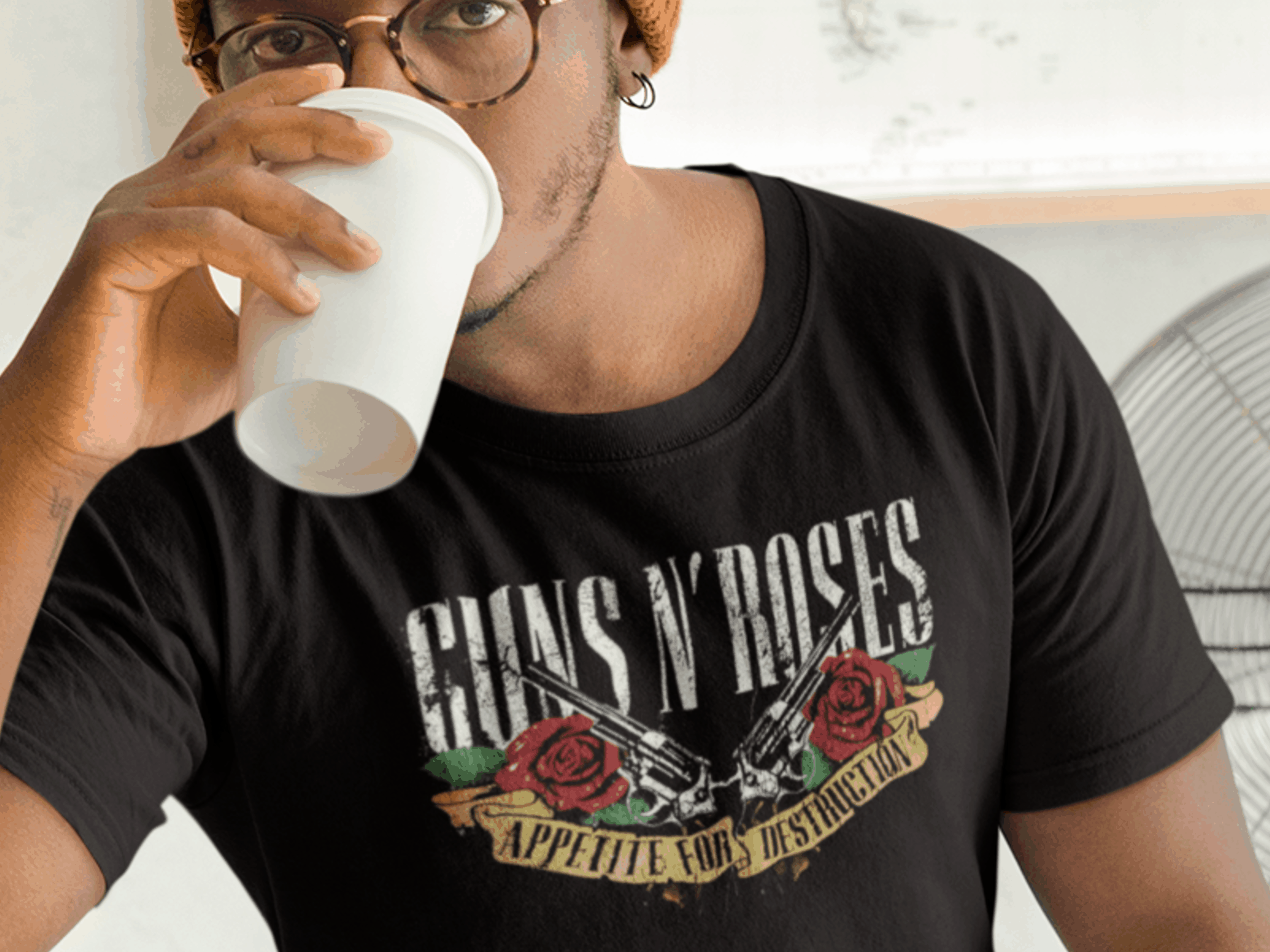 Camiseta estampada com o espírito rebelde dos Guns N' Roses. Celebre a atitude e o som inconfundível dessa banda lendária com estilo e personalidade.