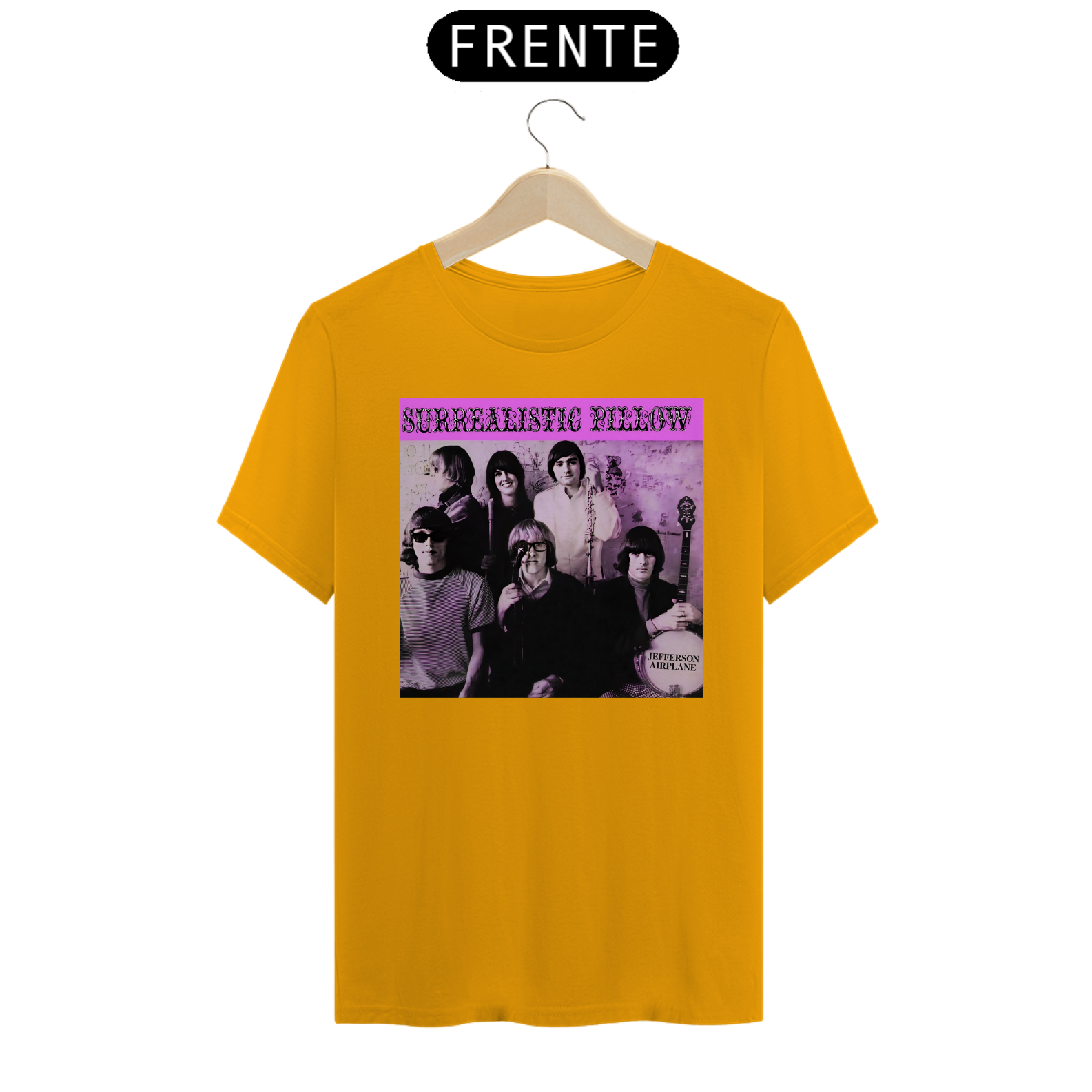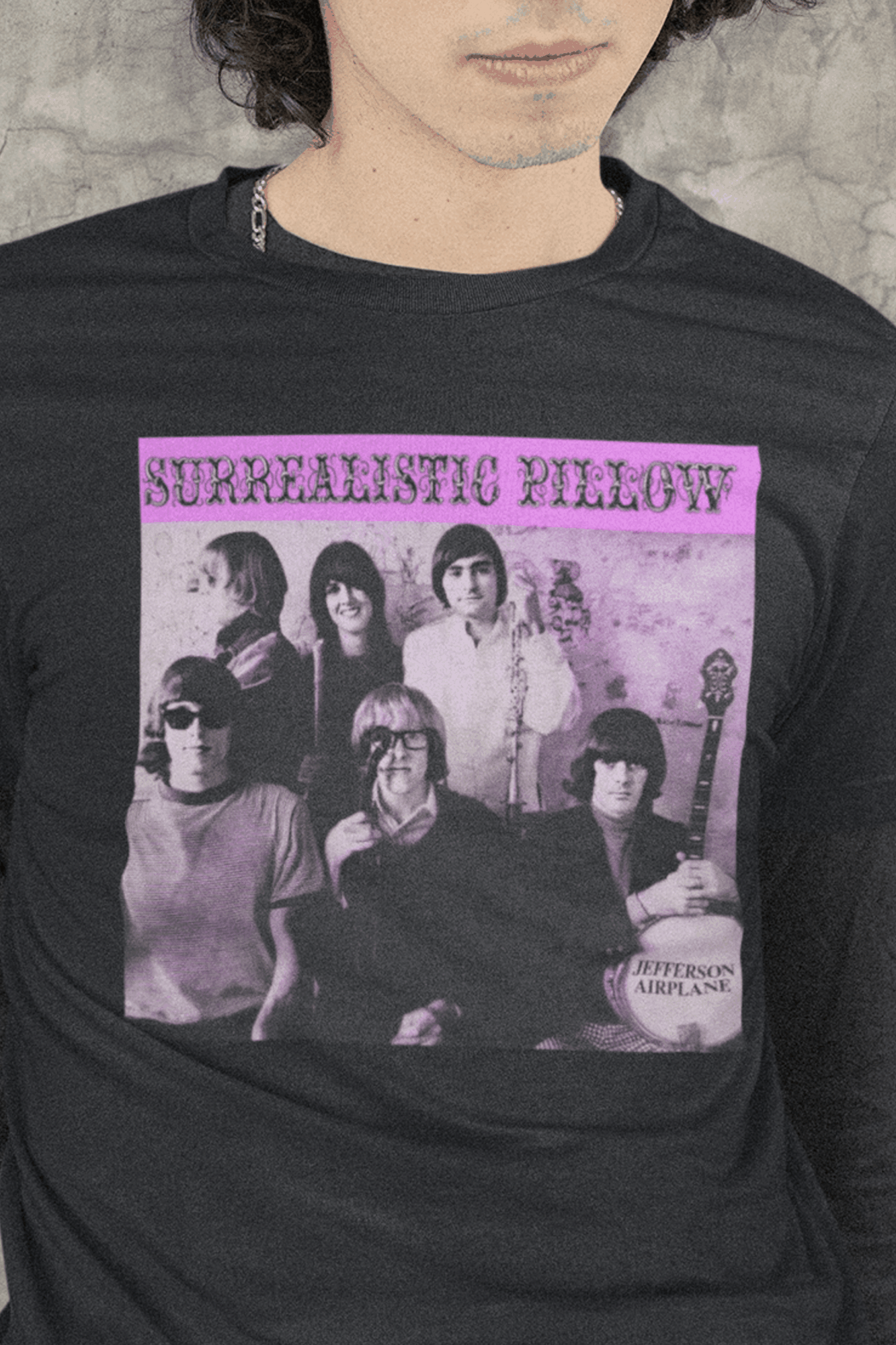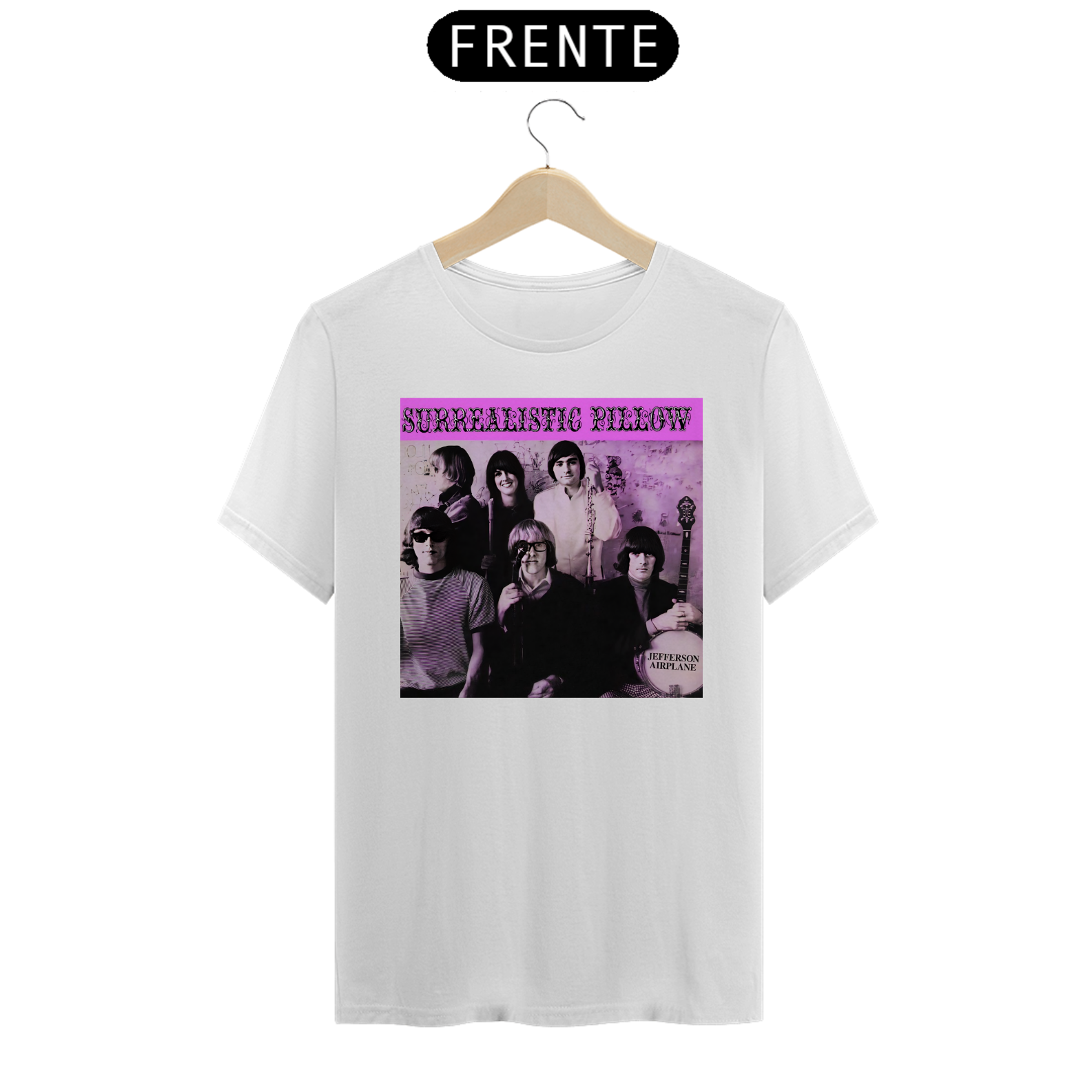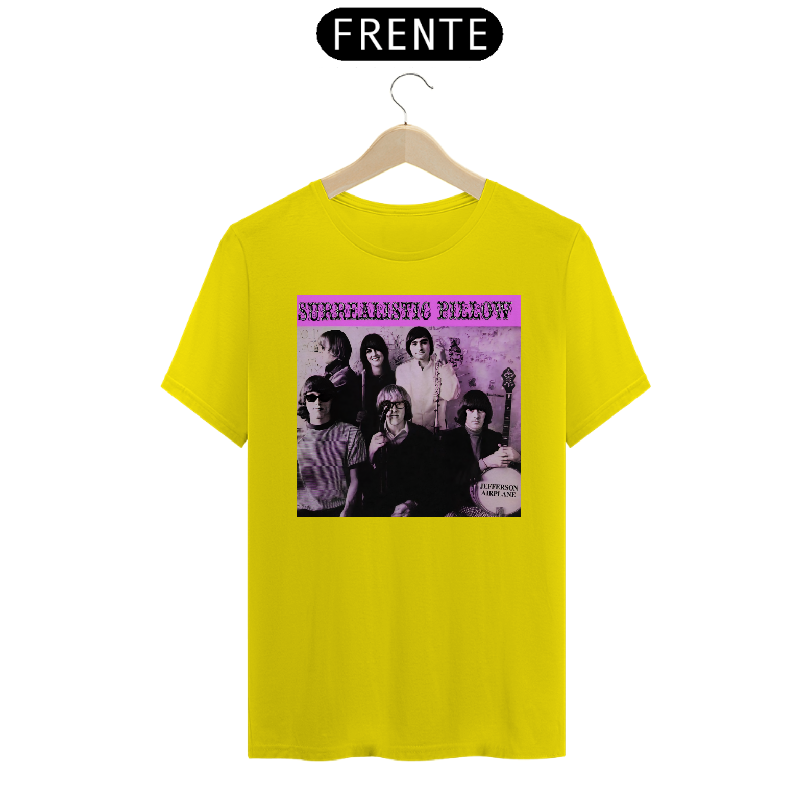 Camiseta psicodélica estampada com a icônica banda Jefferson Airplane. Viaje de volta aos anos 60 com o som revolucionário do rock psicodélico.