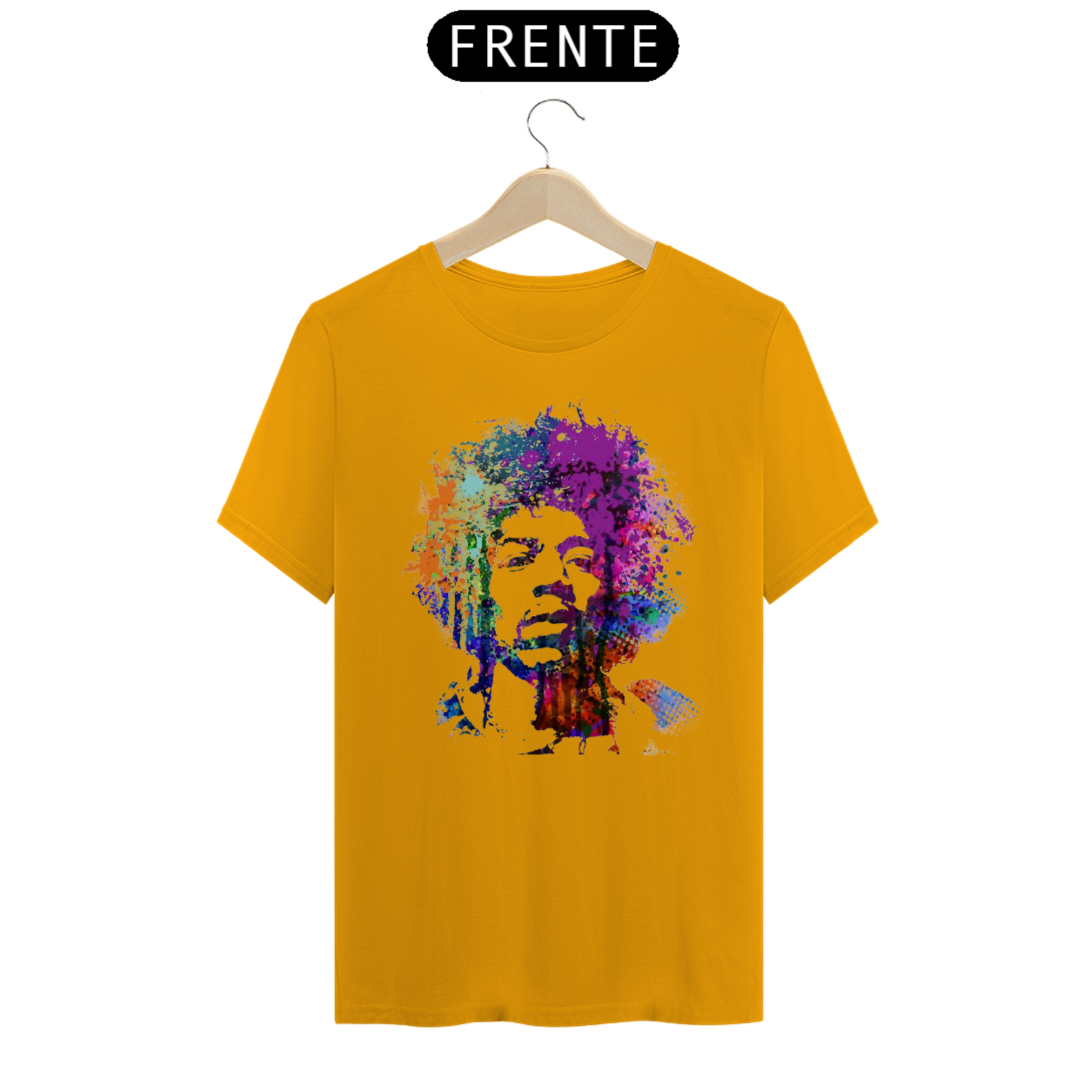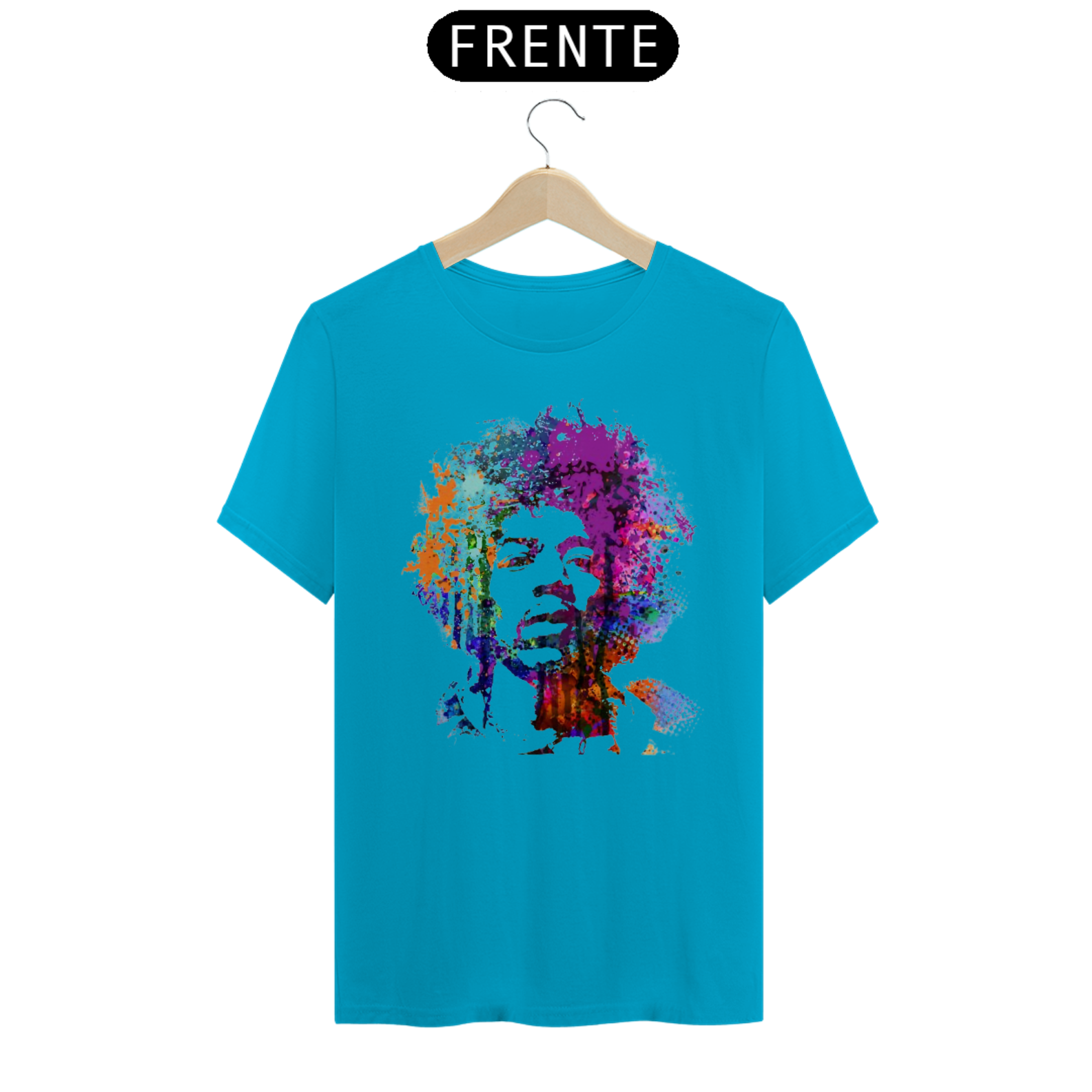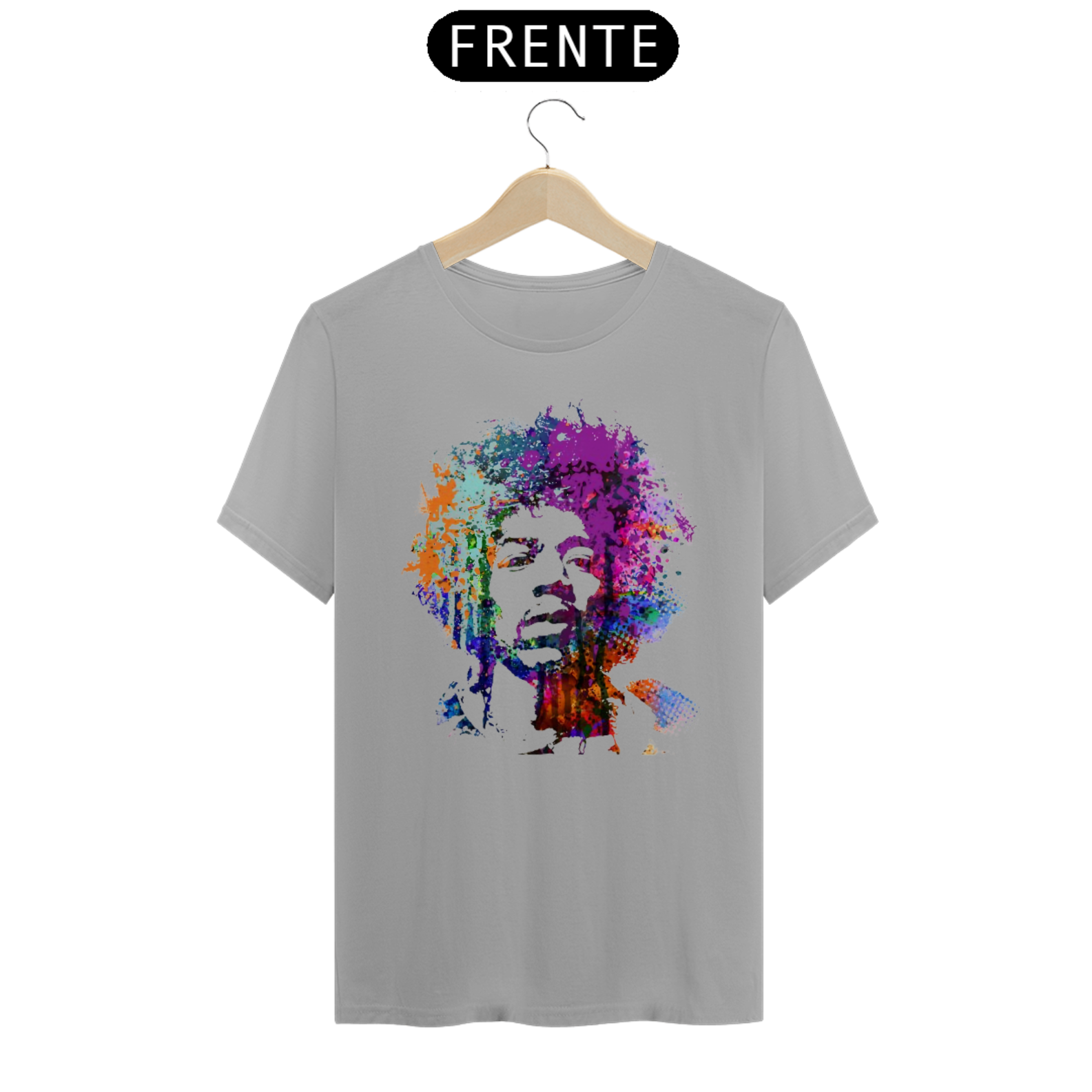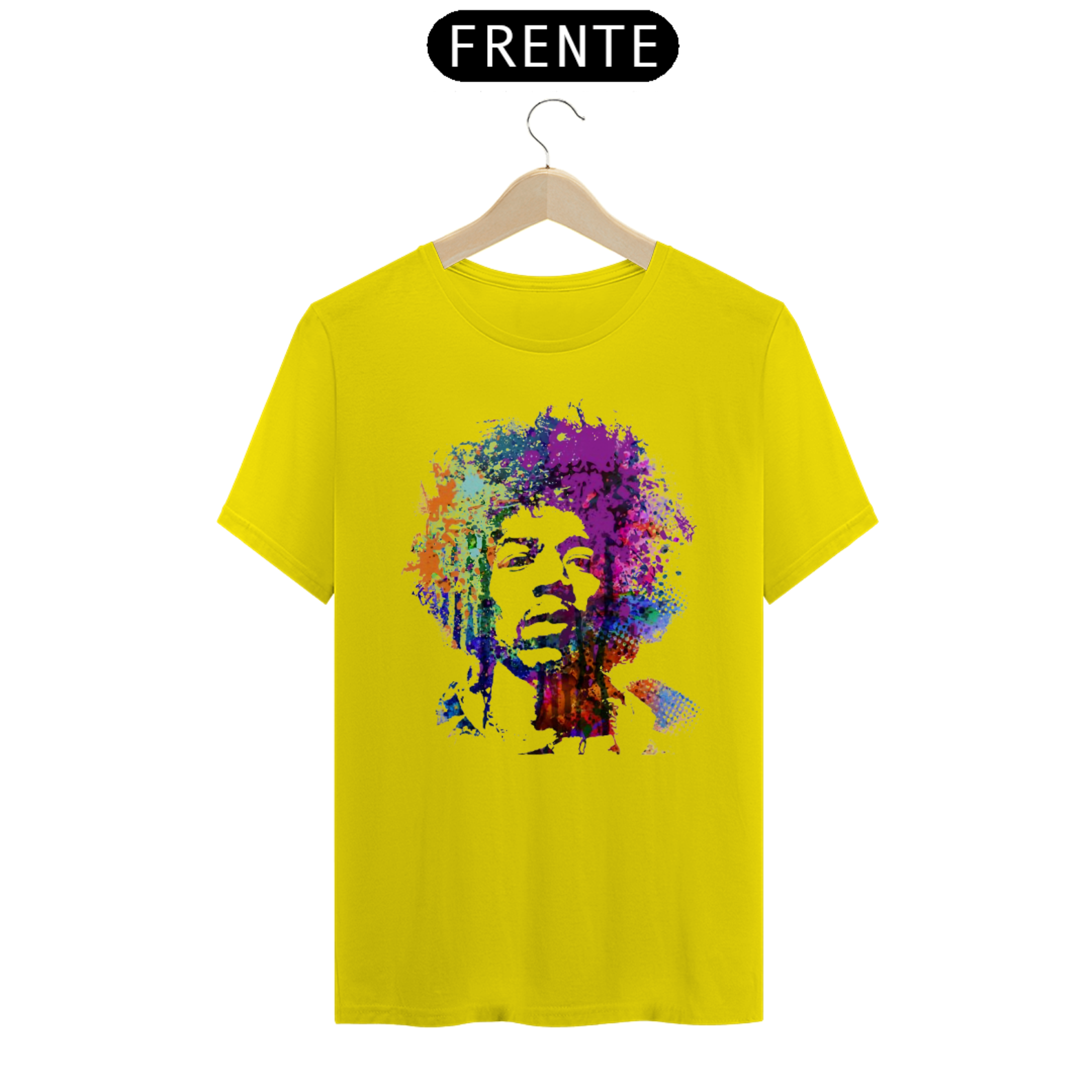 Camiseta eletricamente estampada com o lendário Jimi Hendrix. Vista a energia do maior guitarrista de todos os tempos.