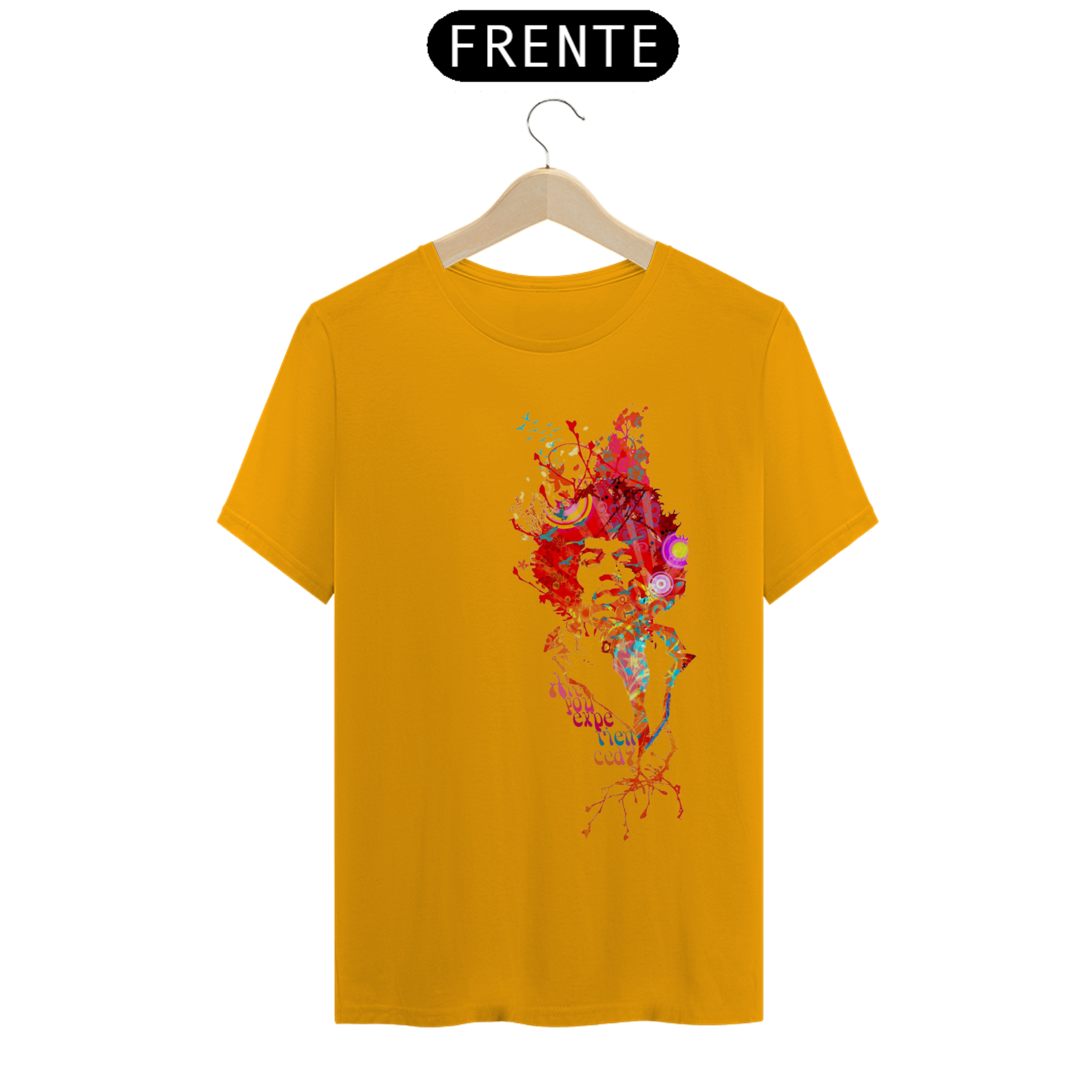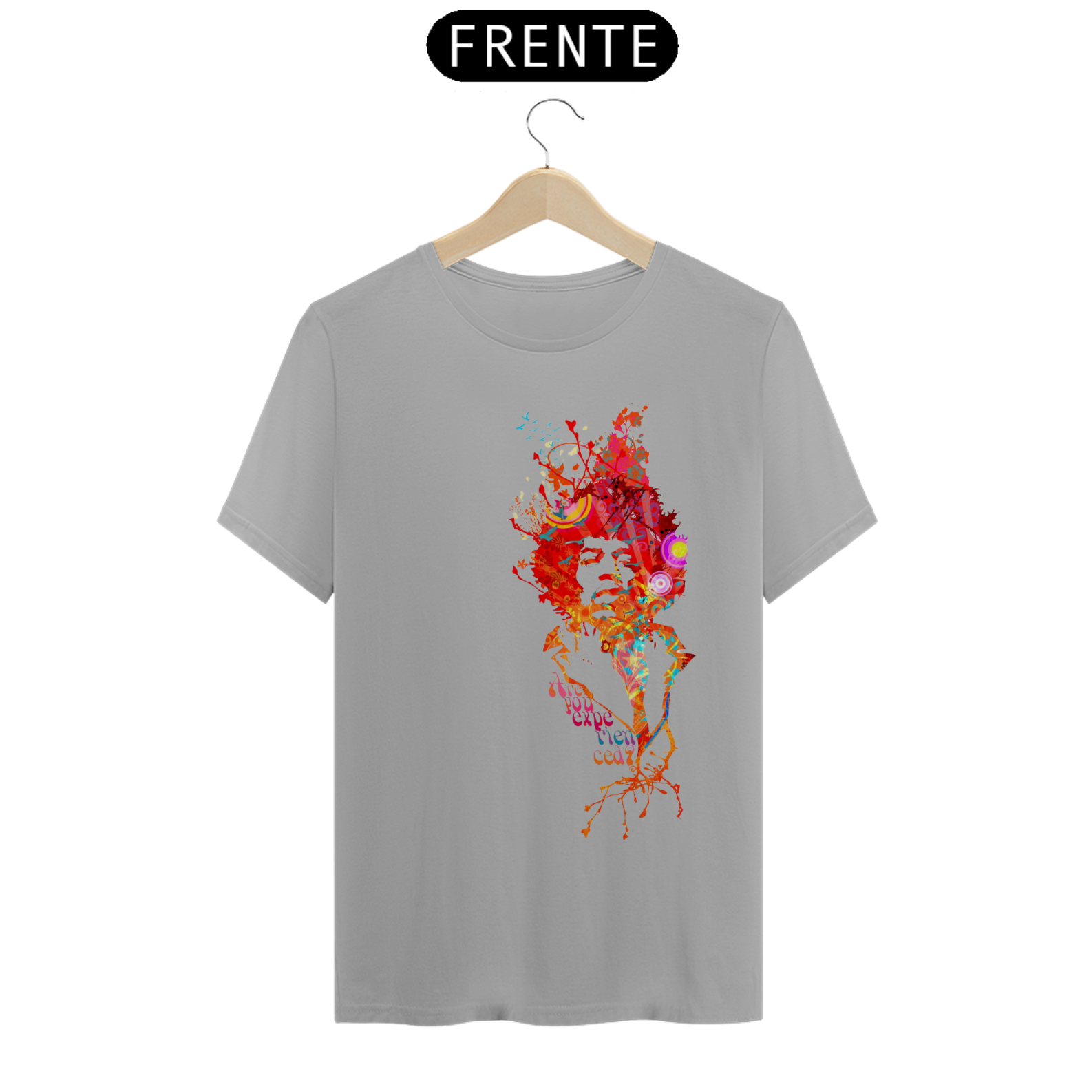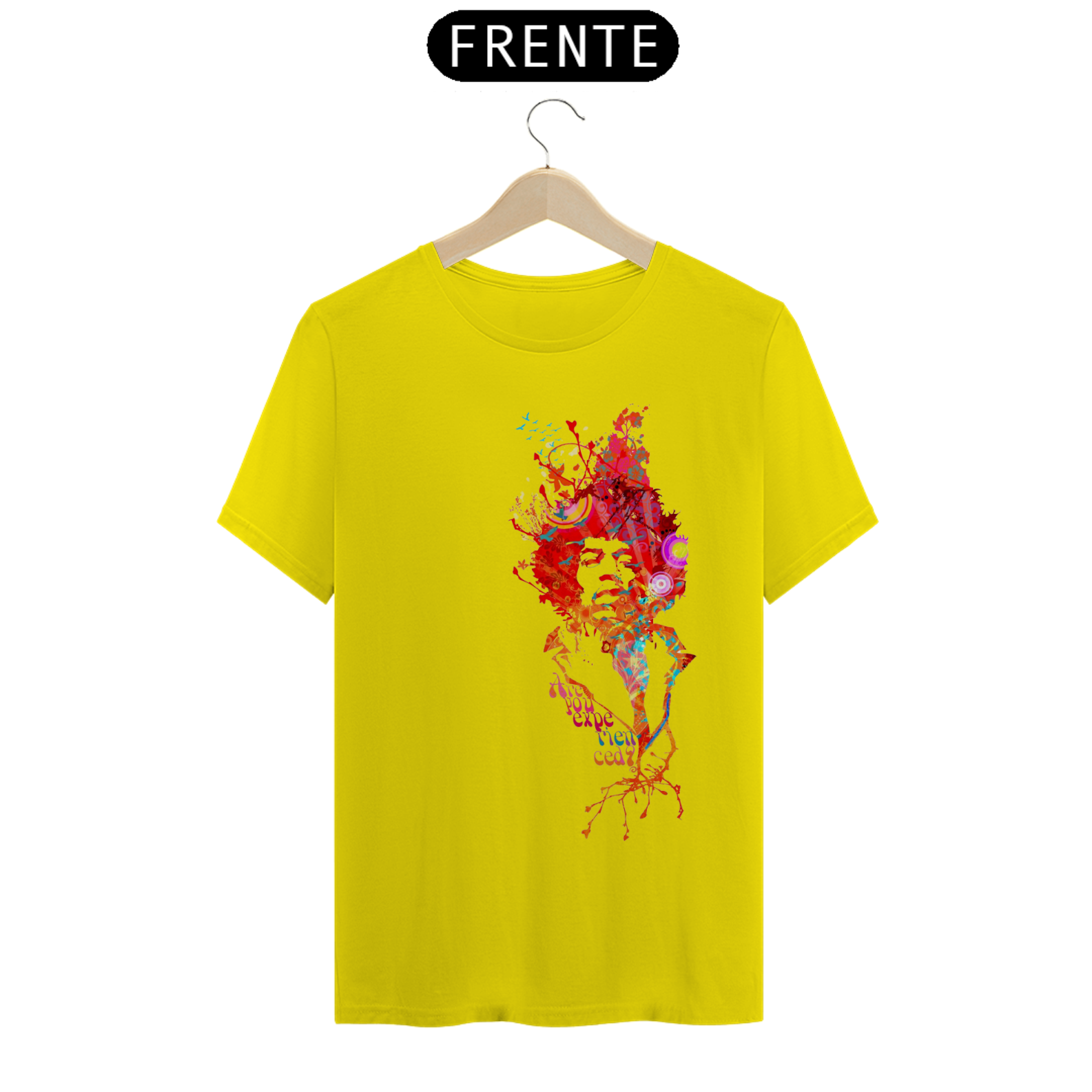 Camiseta eletricamente estampada com o lendário Jimi Hendrix. Vista a energia do maior guitarrista de todos os tempos.