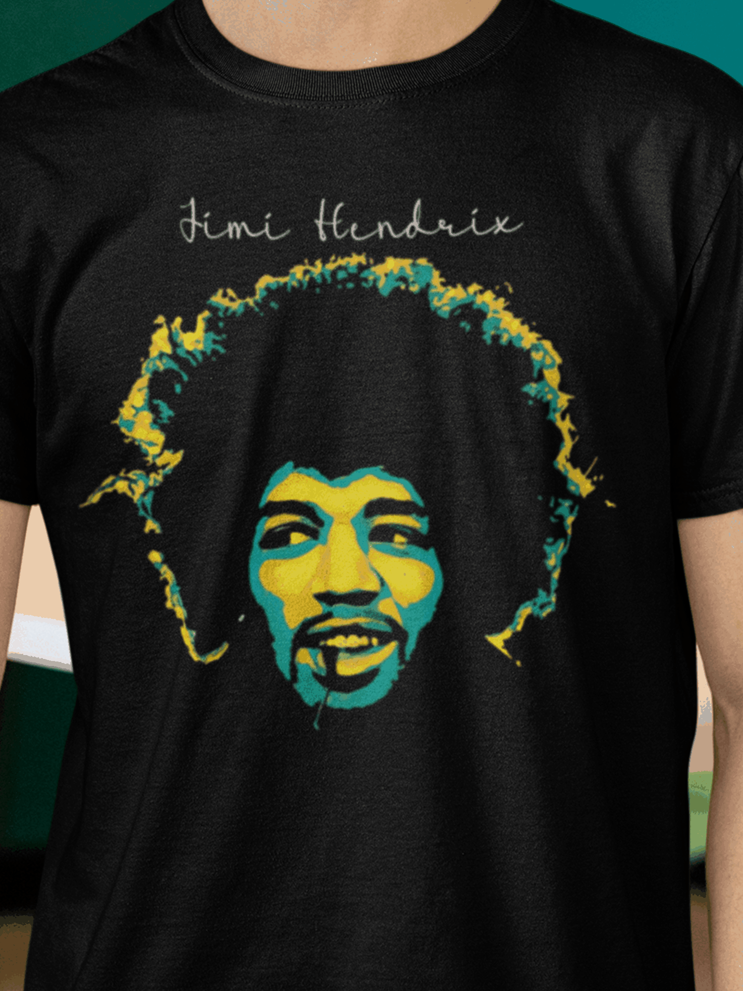 Camiseta eletricamente estampada com o lendário Jimi Hendrix. Vista a energia do maior guitarrista de todos os tempos.