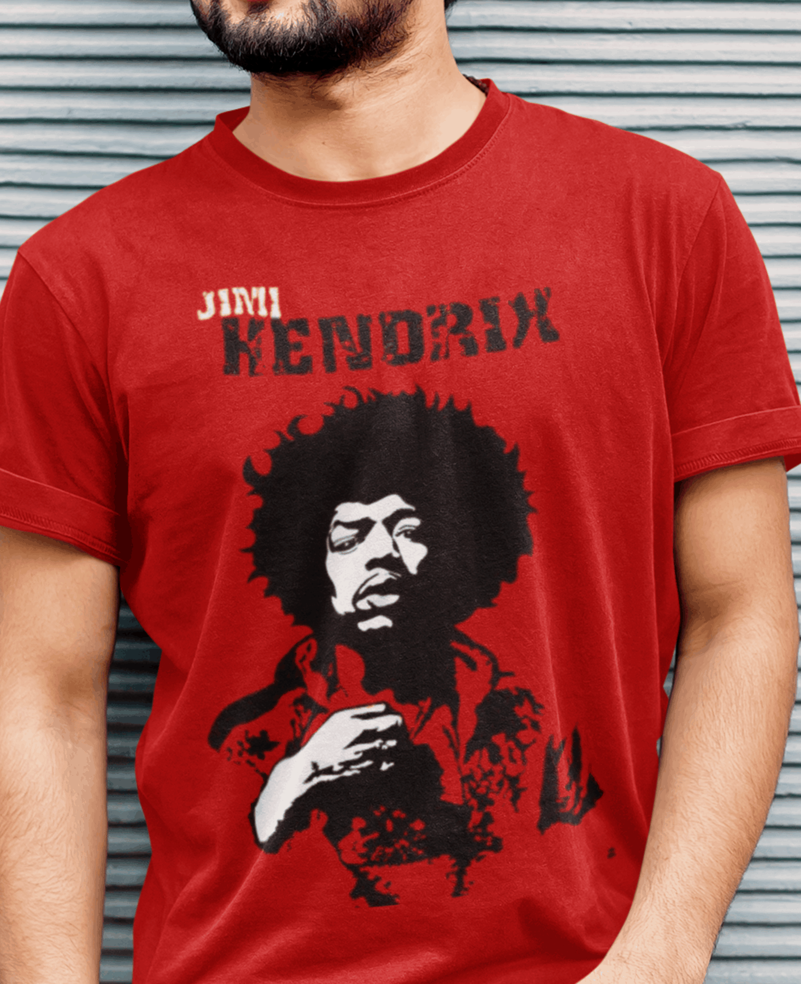 Camiseta eletricamente estampada com o lendário Jimi Hendrix. Vista a energia do maior guitarrista de todos os tempos.