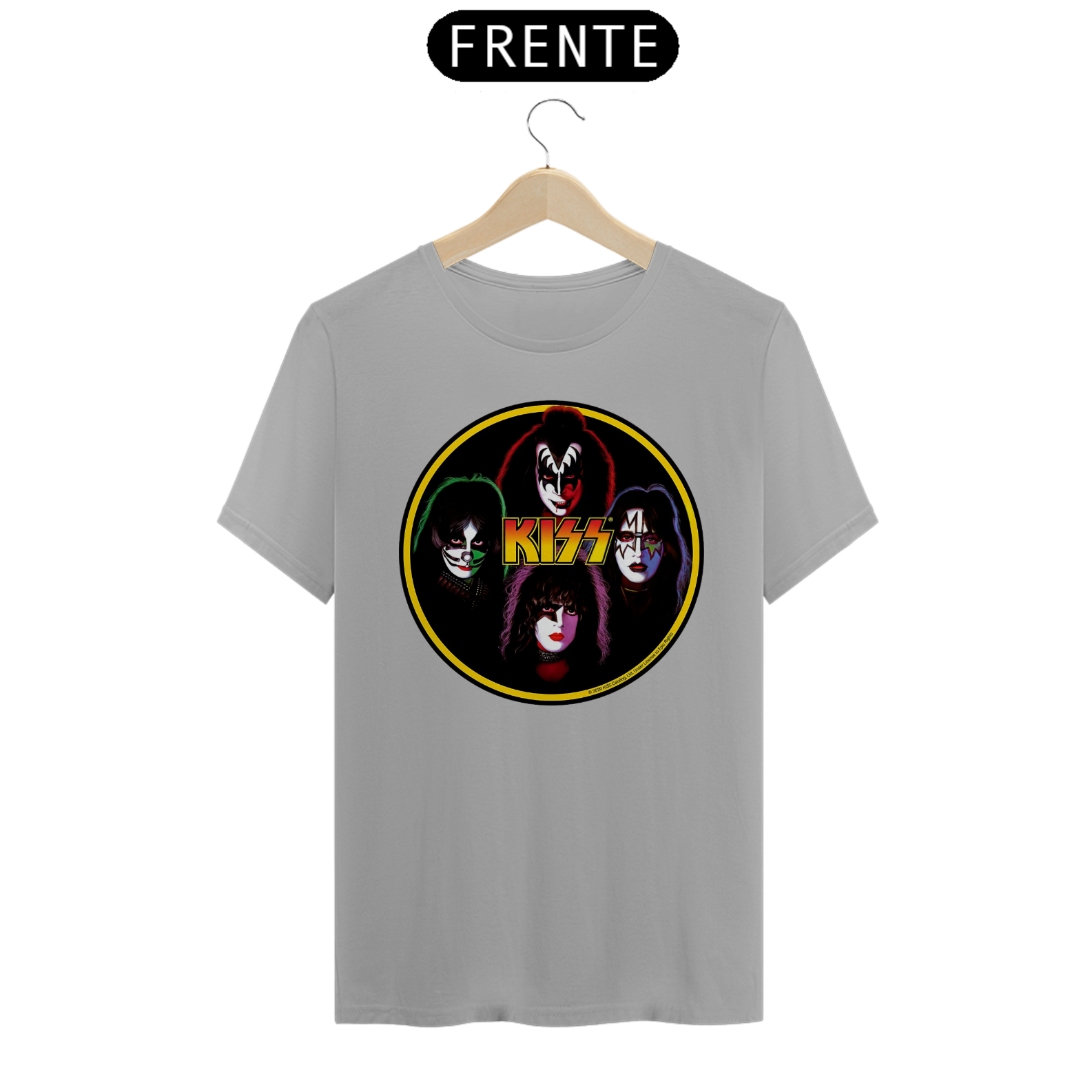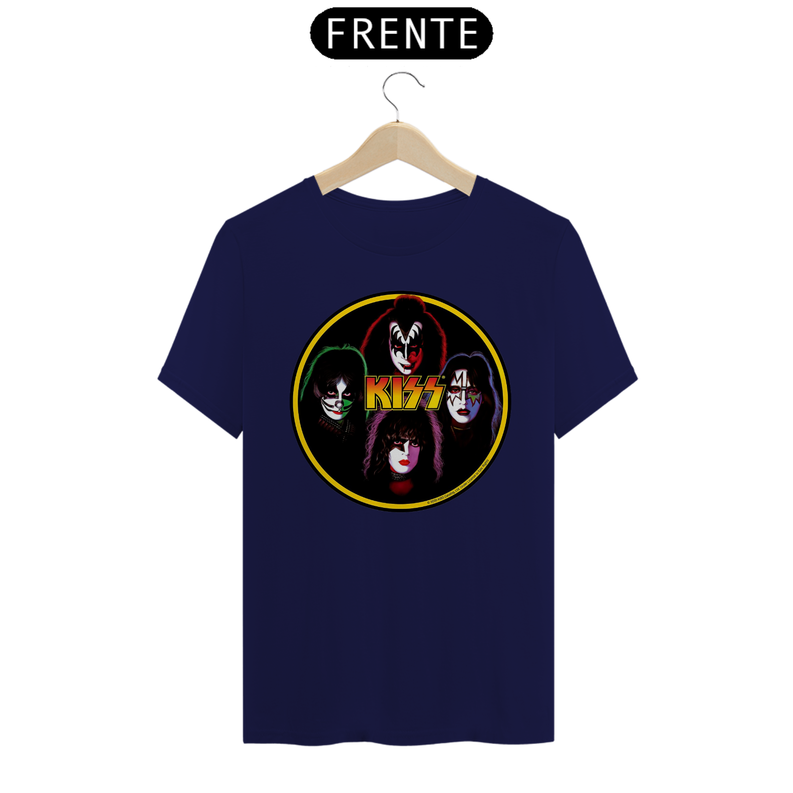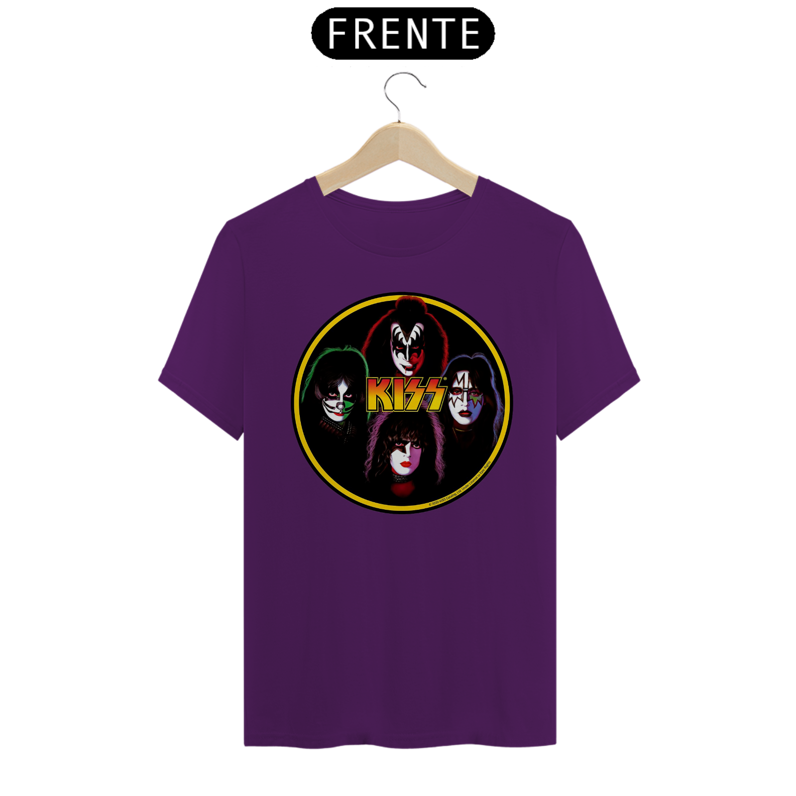 A arte icônica captura a presença teatral e a energia explosiva da lendária banda de glam metal.