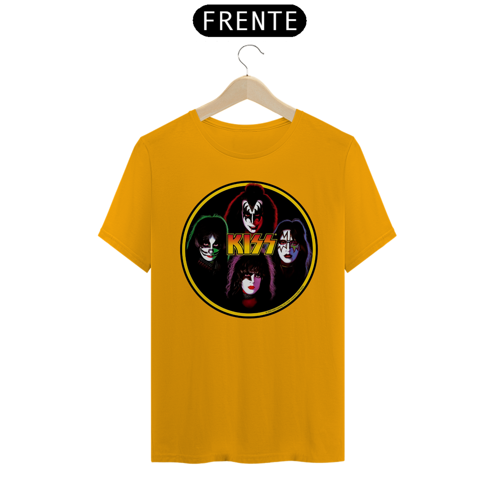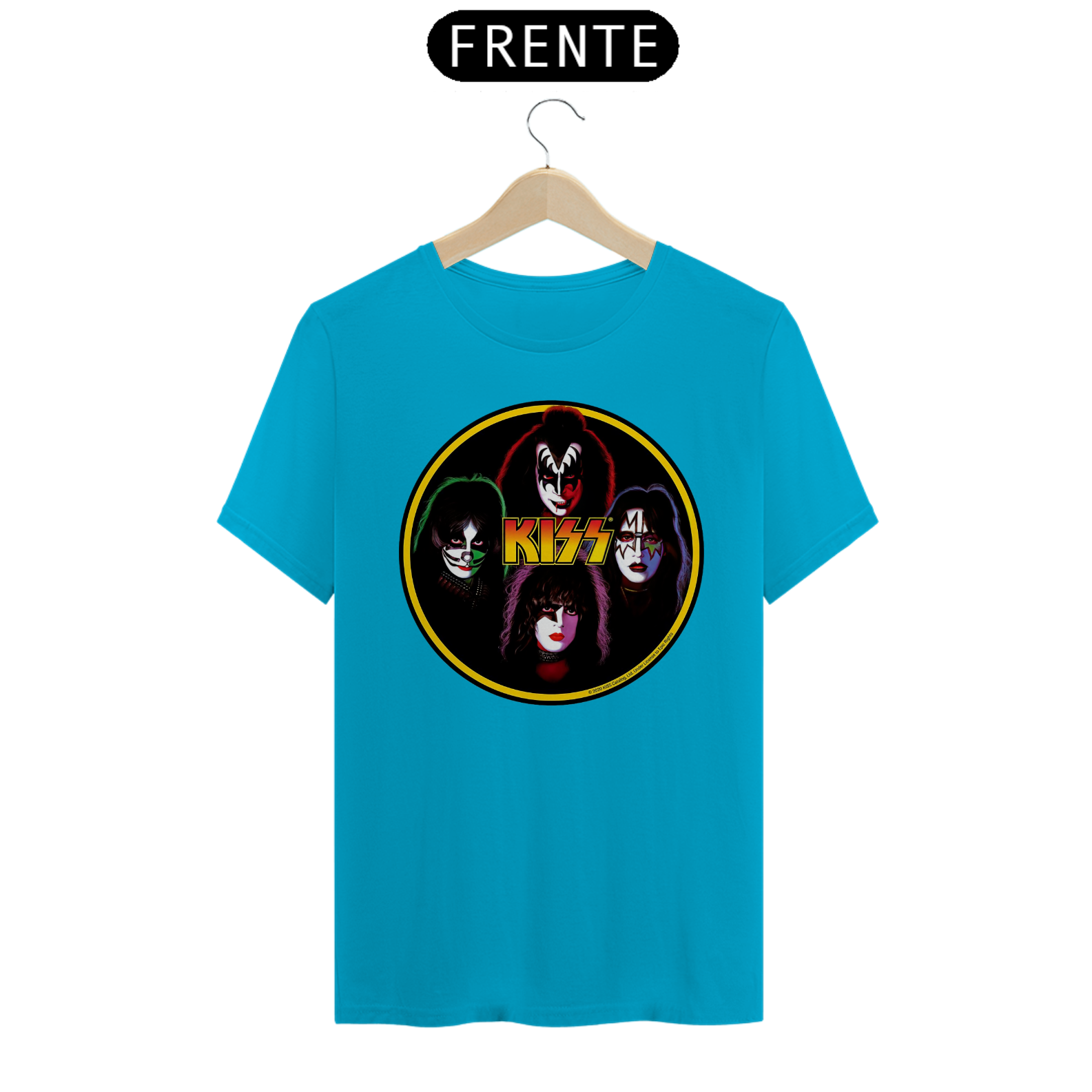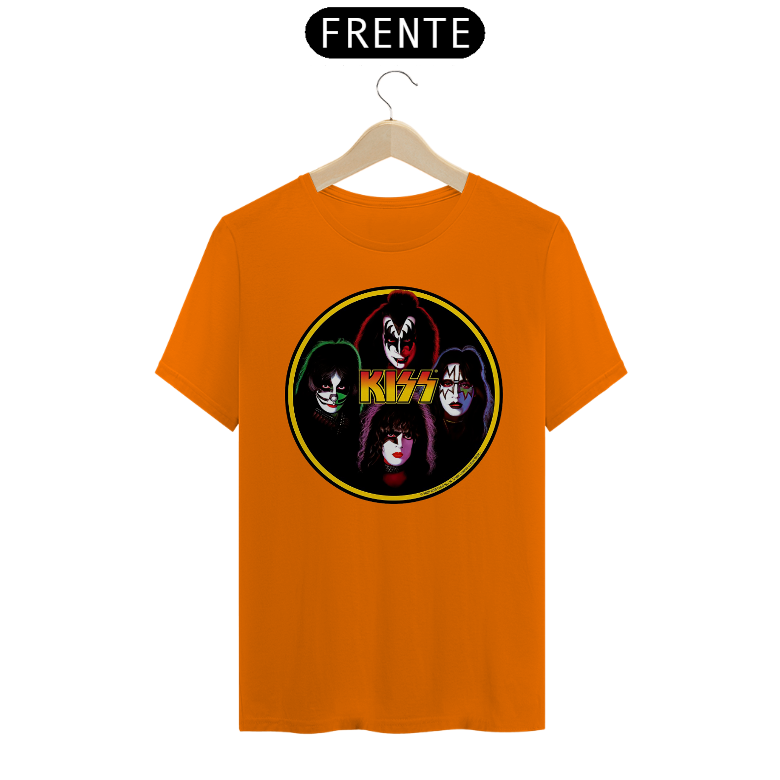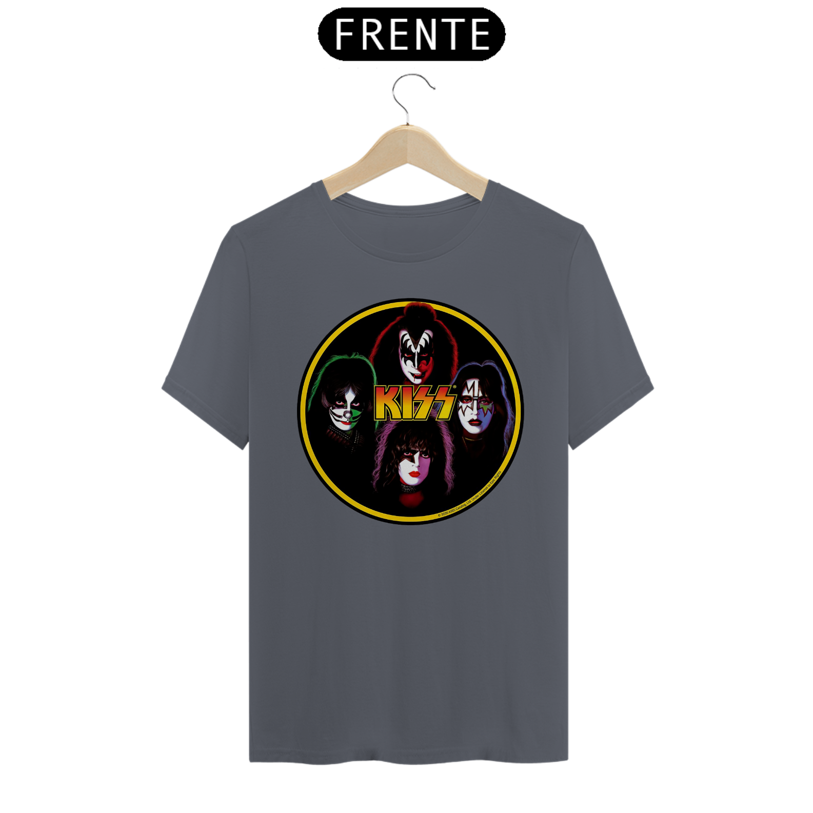 A arte icônica captura a presença teatral e a energia explosiva da lendária banda de glam metal.