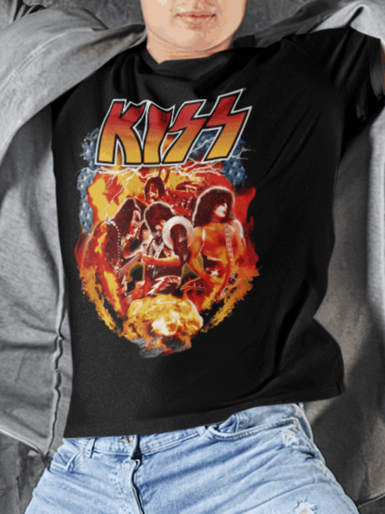 A arte icônica captura a presença teatral e a energia explosiva da lendária banda de glam metal.