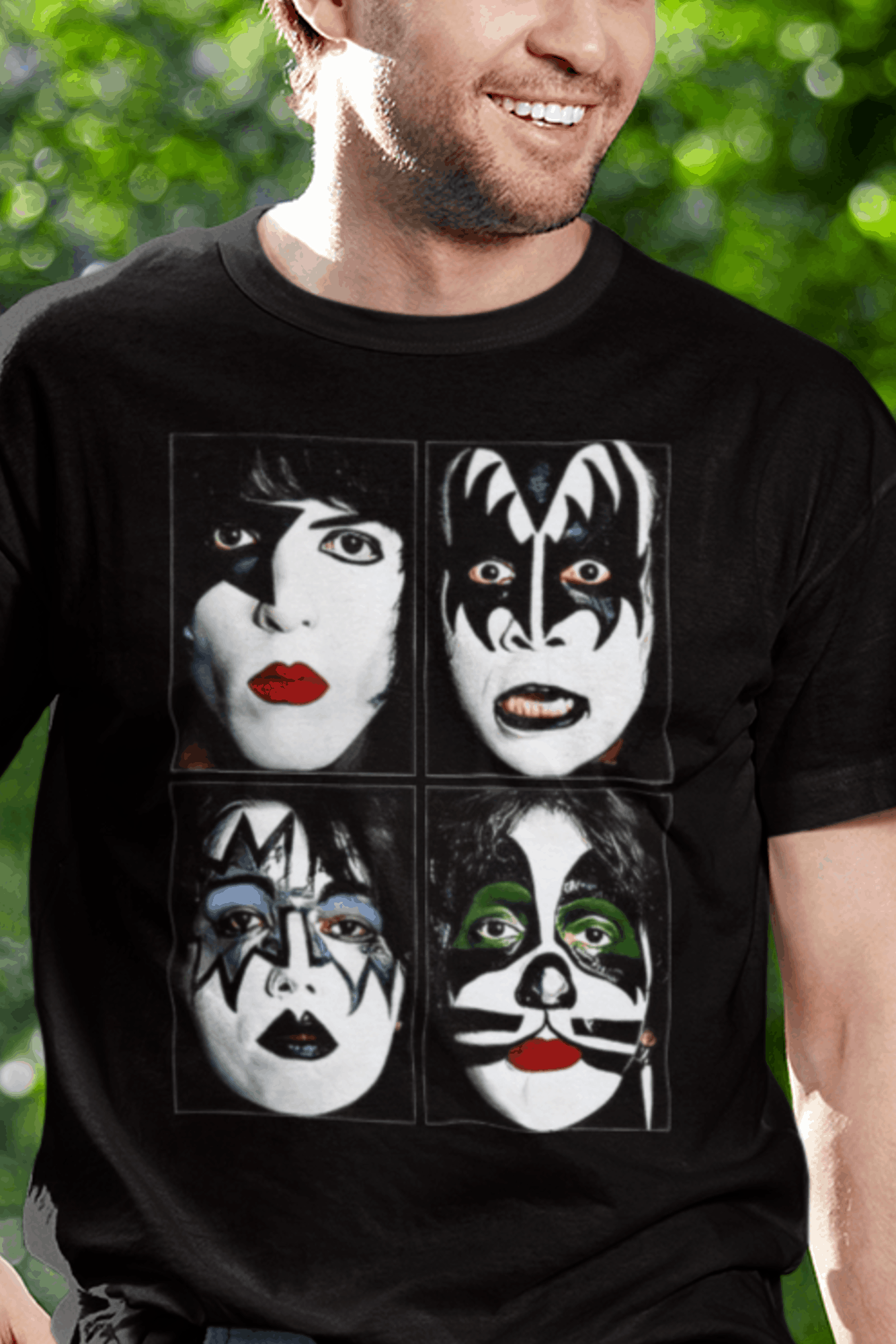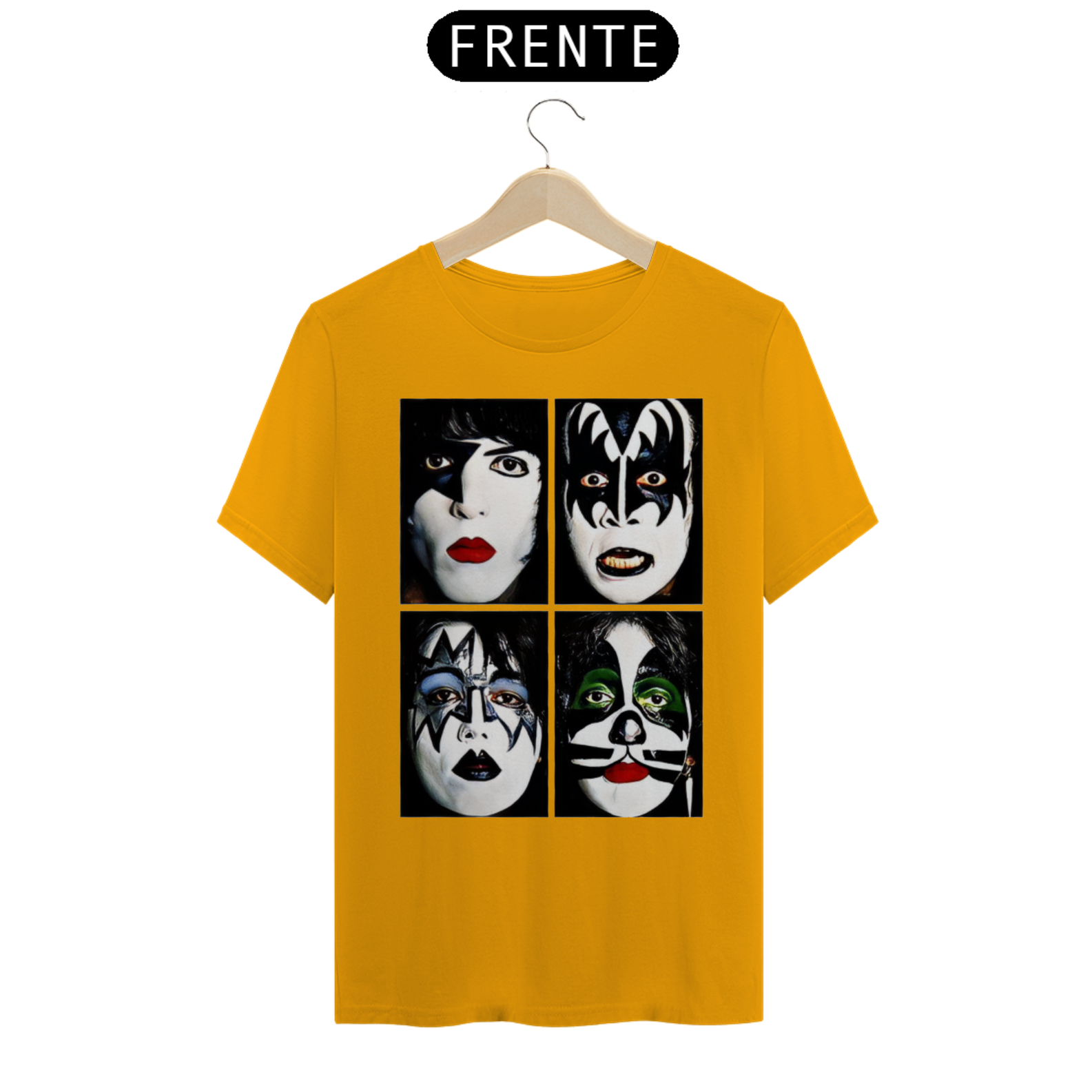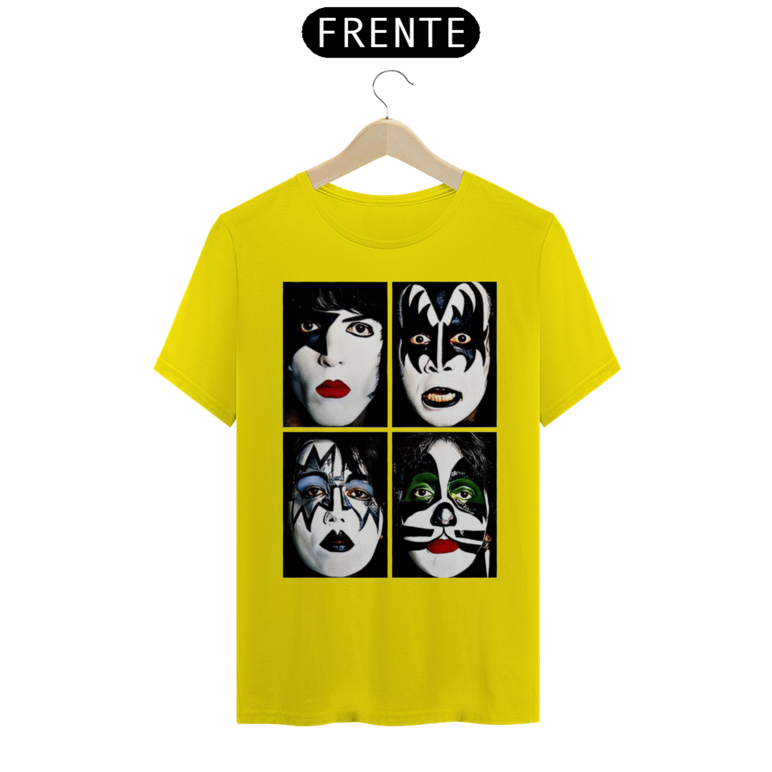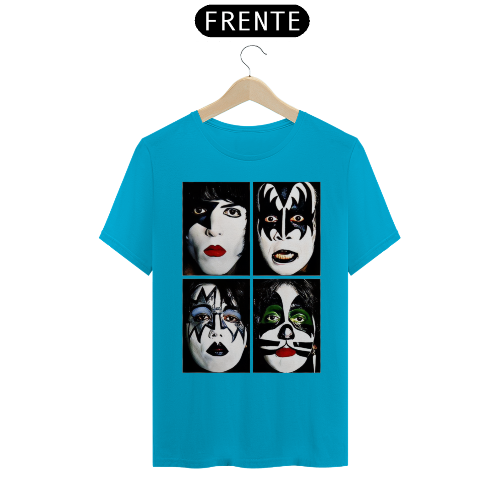 A arte icônica captura a presença teatral e a energia explosiva da lendária banda de glam metal.
