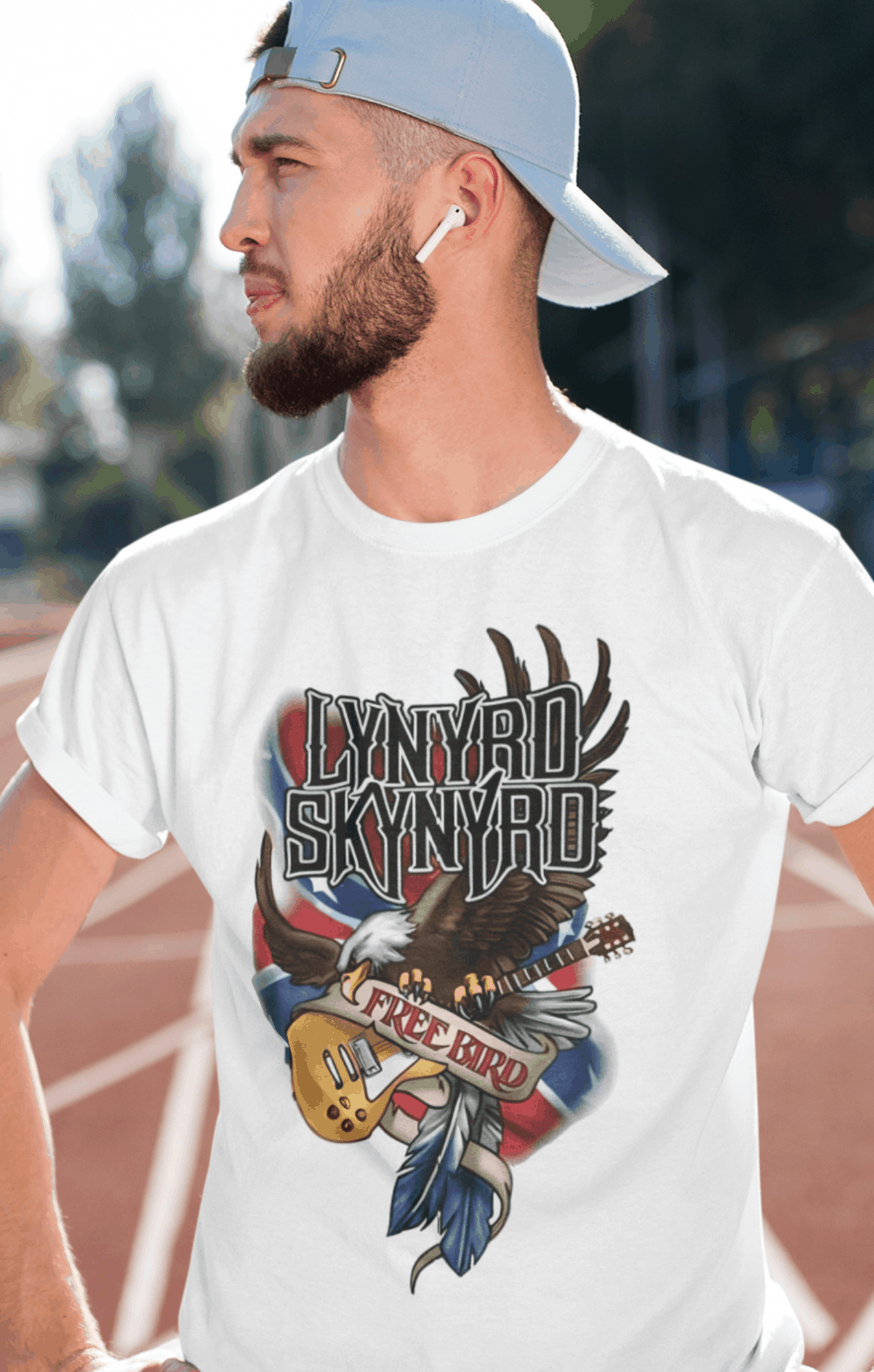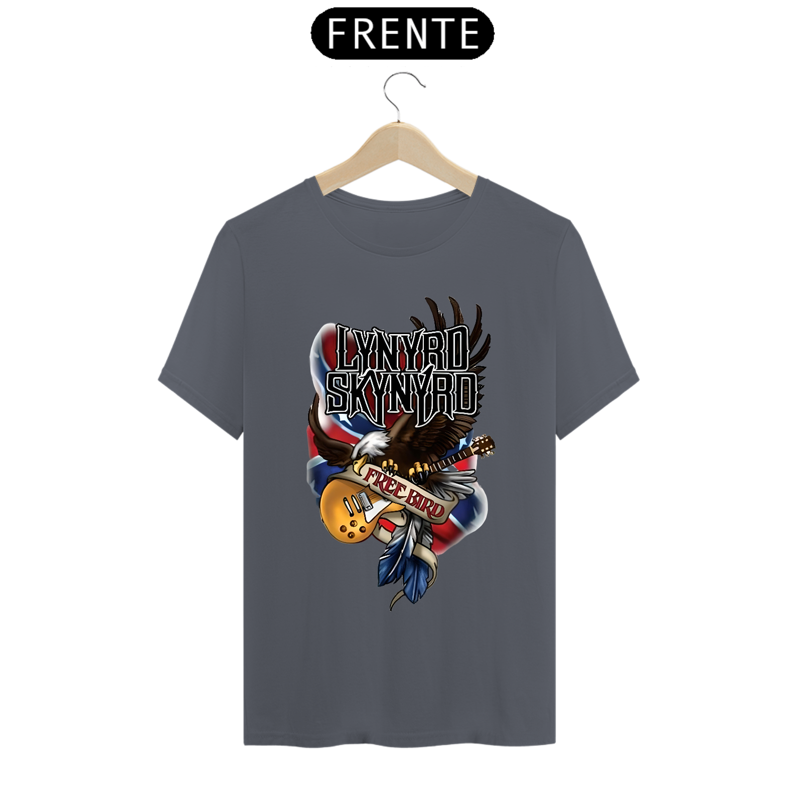 Camiseta estampada com a alma sulista do Lynyrd Skynyrd. Vista o espírito do rock sulista e a herança musical desta banda lendária com esta camiseta cheia de autenticidade.