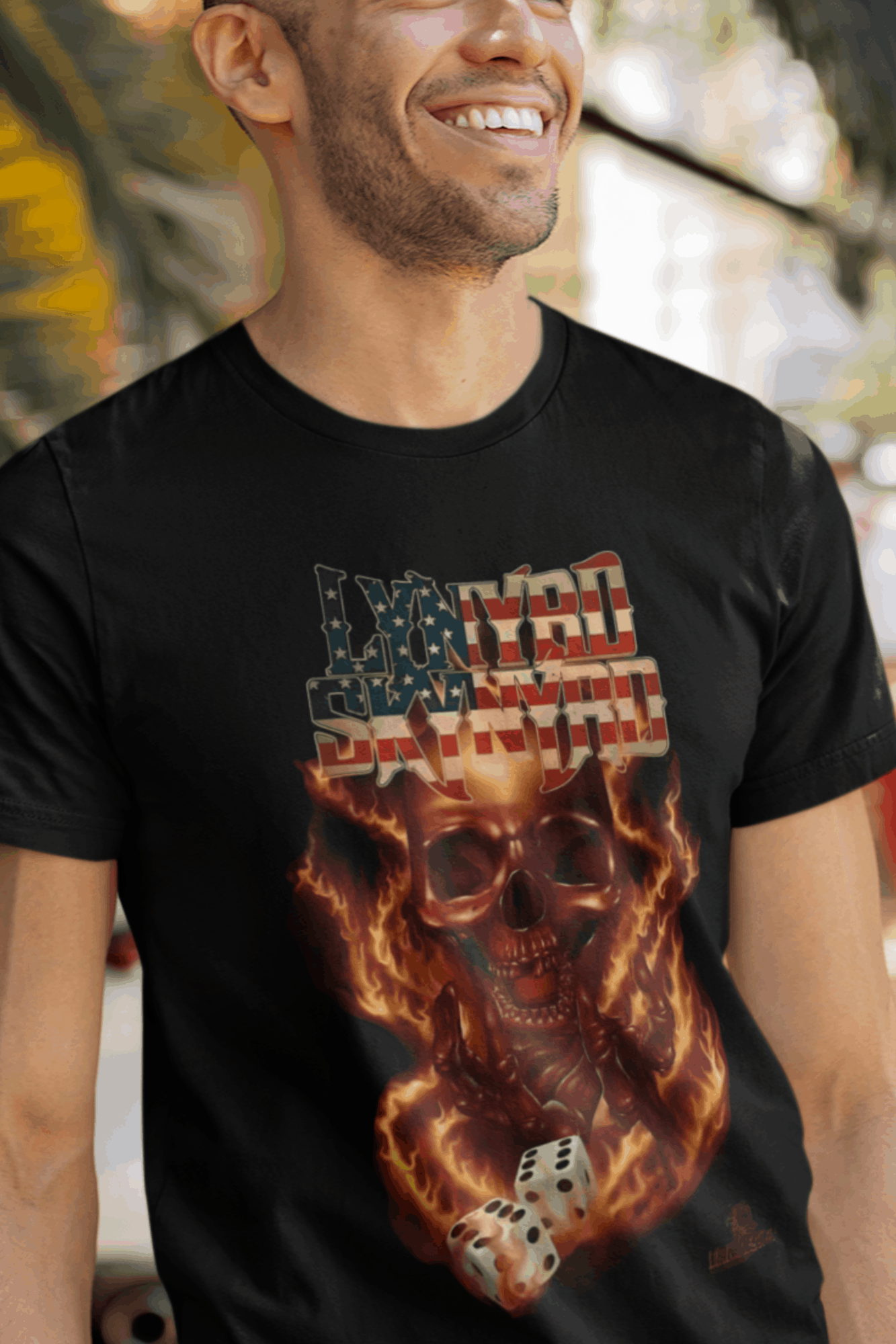 Camiseta estampada com a alma sulista do Lynyrd Skynyrd. Vista o espírito do rock sulista e a herança musical desta banda lendária com esta camiseta cheia de autenticidade.