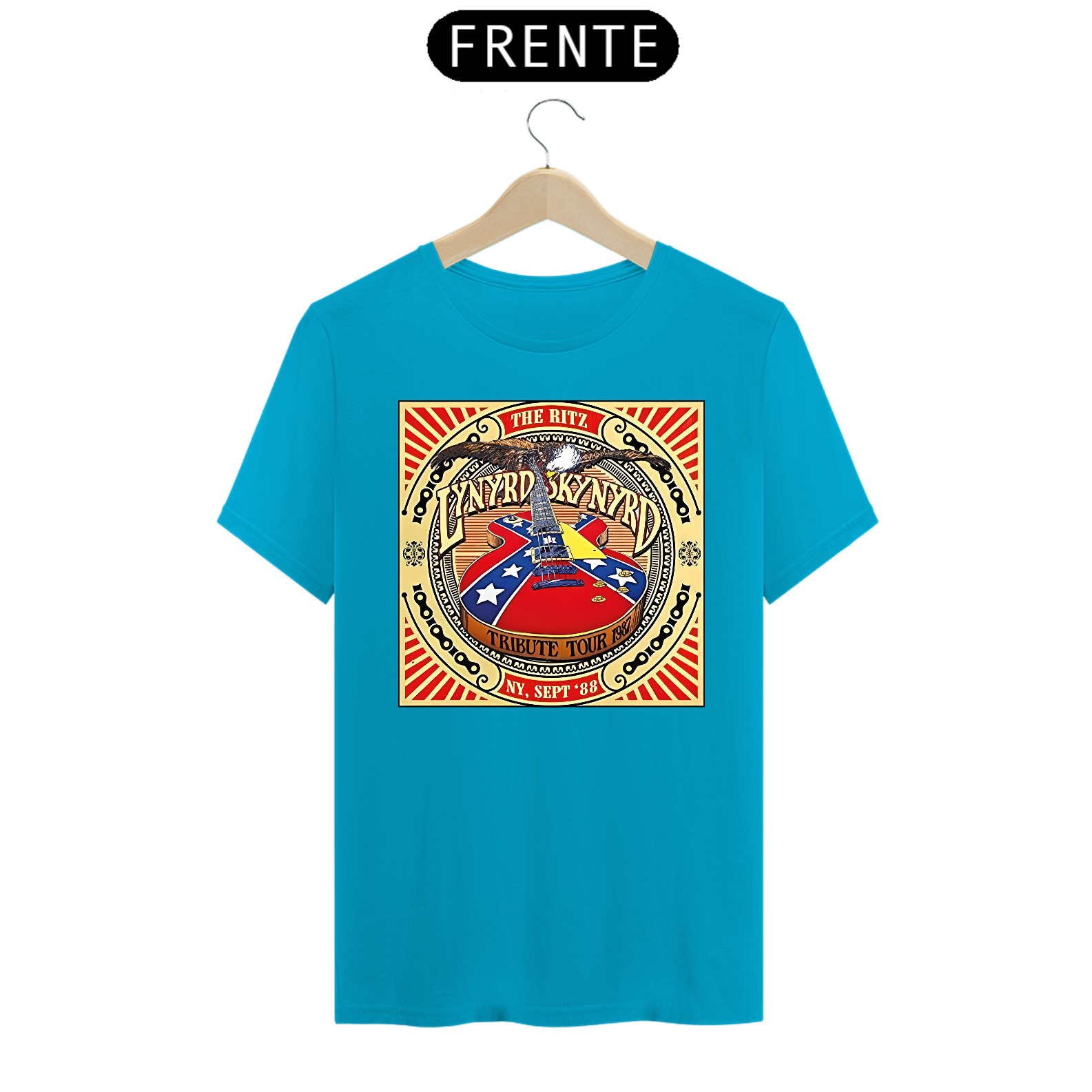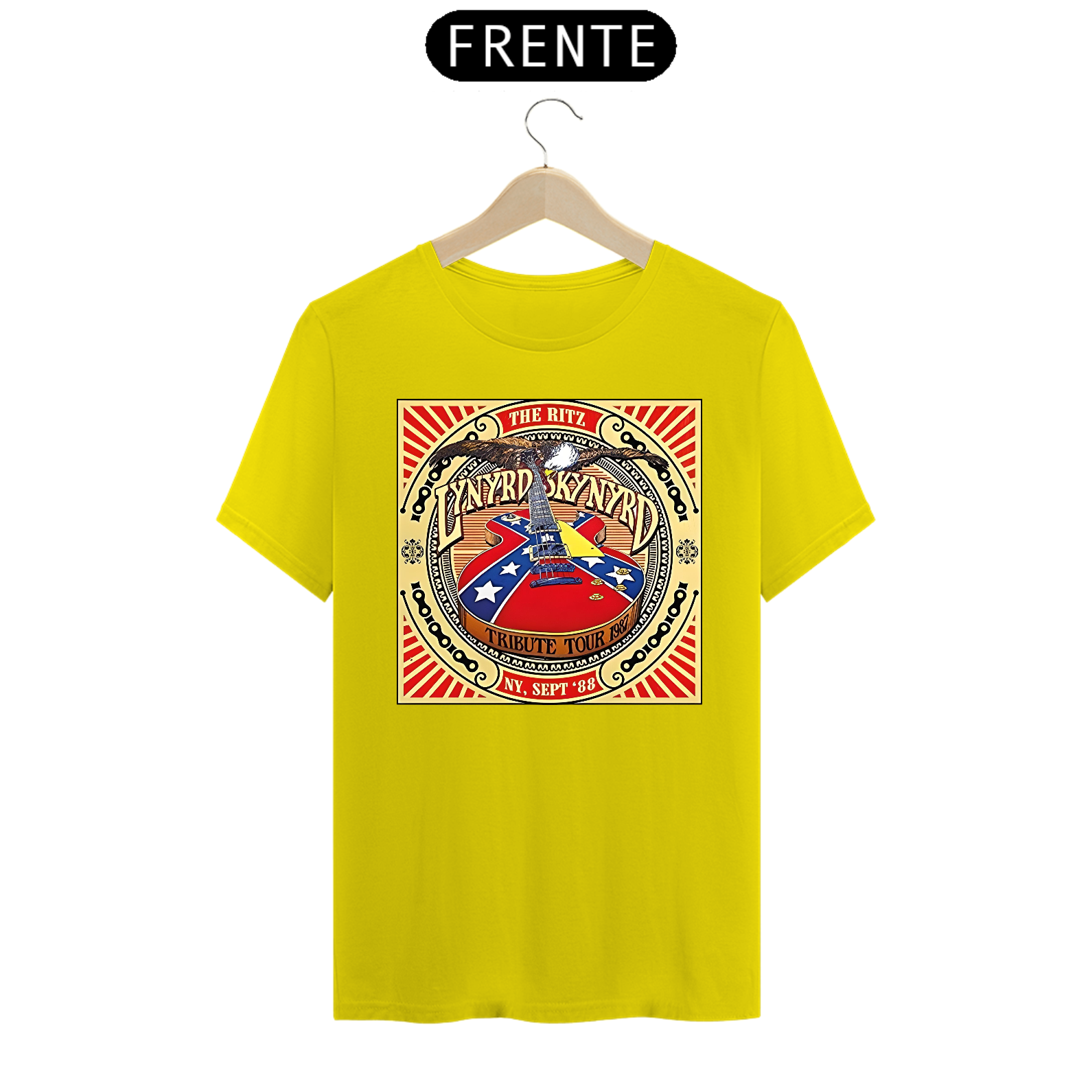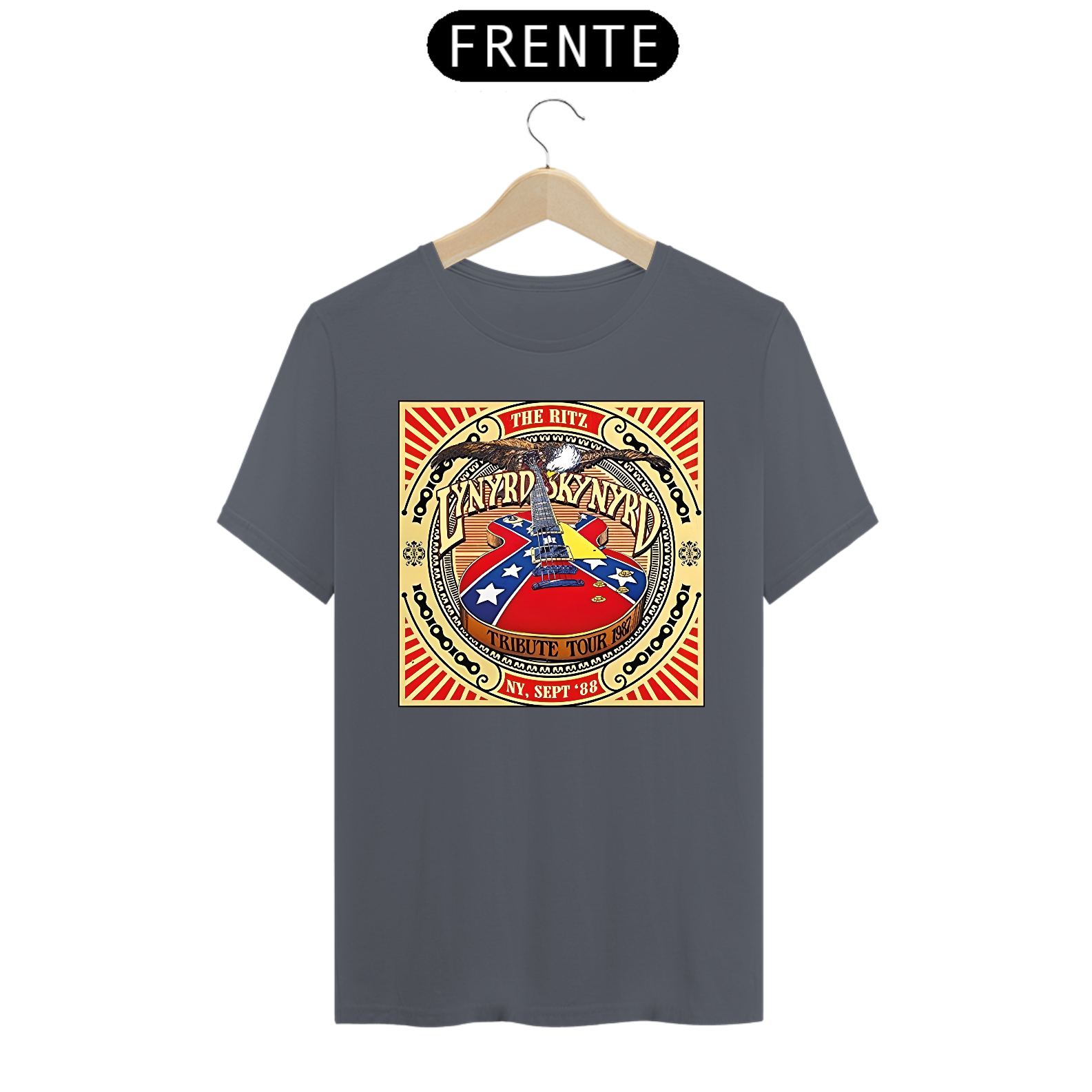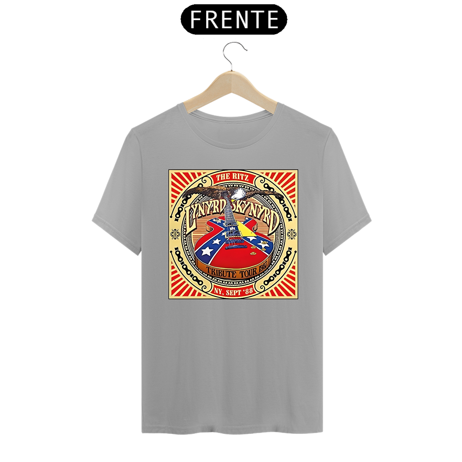 Camiseta estampada com a alma sulista do Lynyrd Skynyrd. Vista o espírito do rock sulista e a herança musical desta banda lendária com esta camiseta cheia de autenticidade.