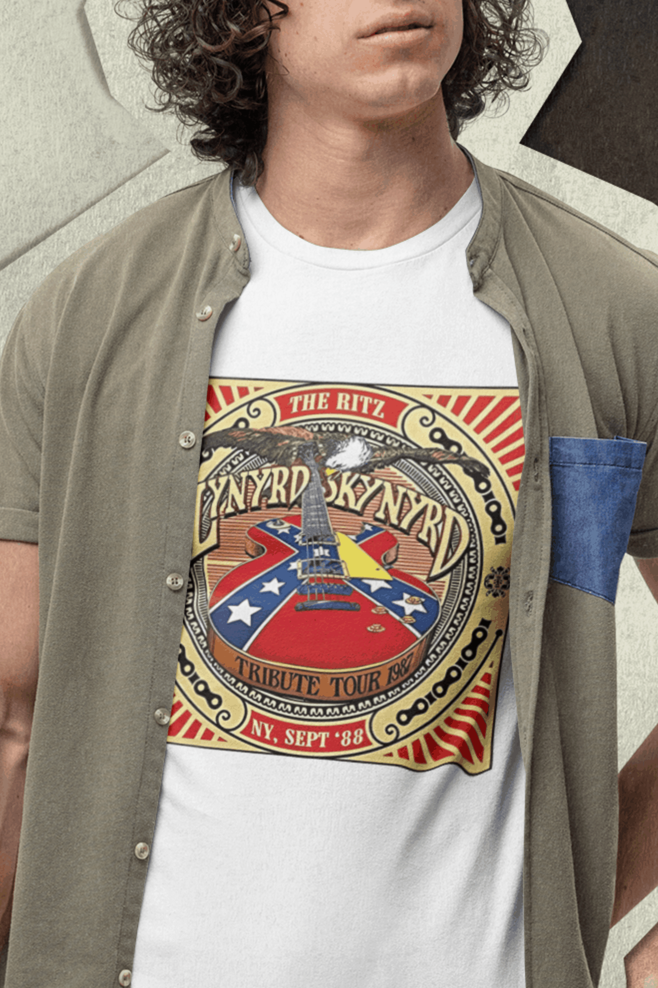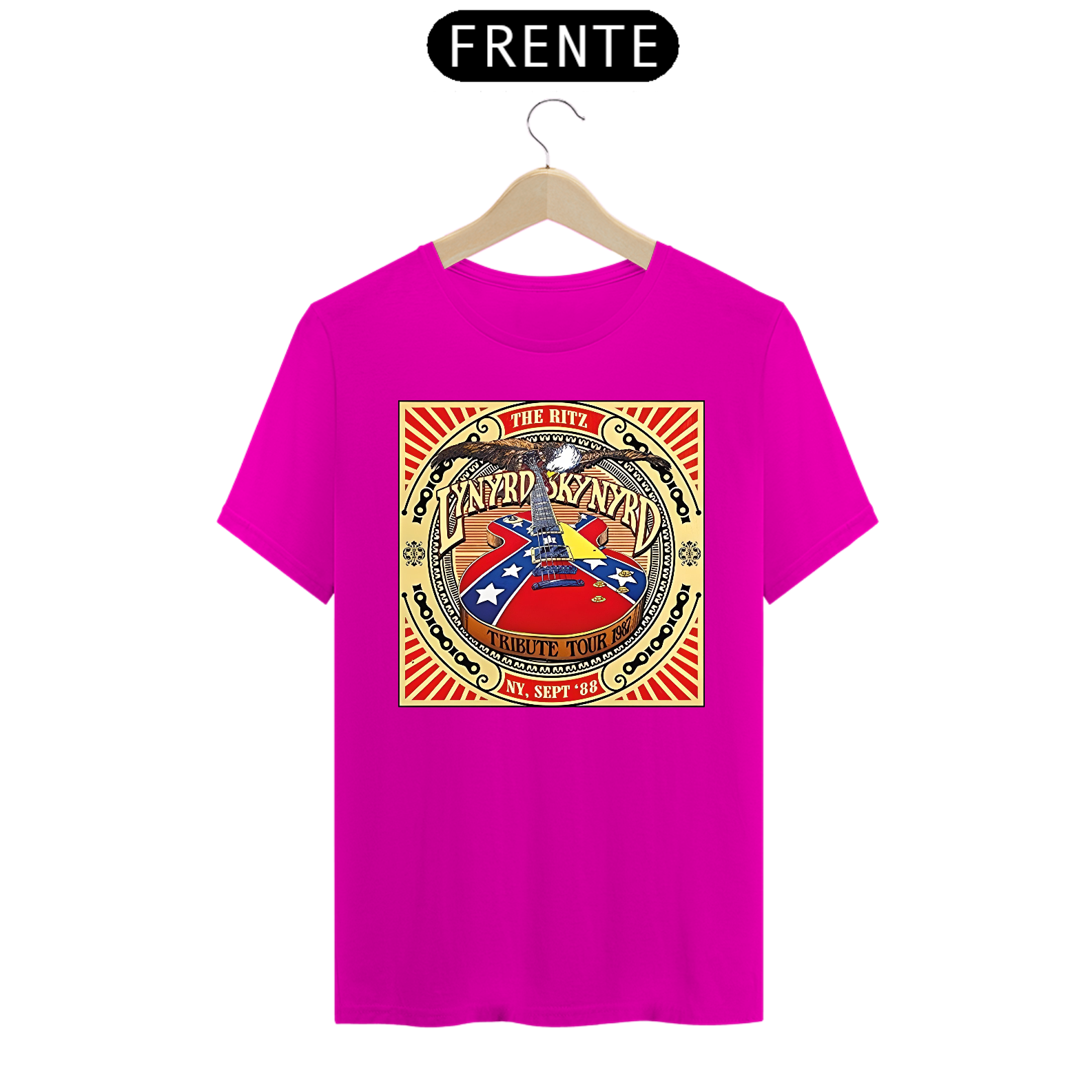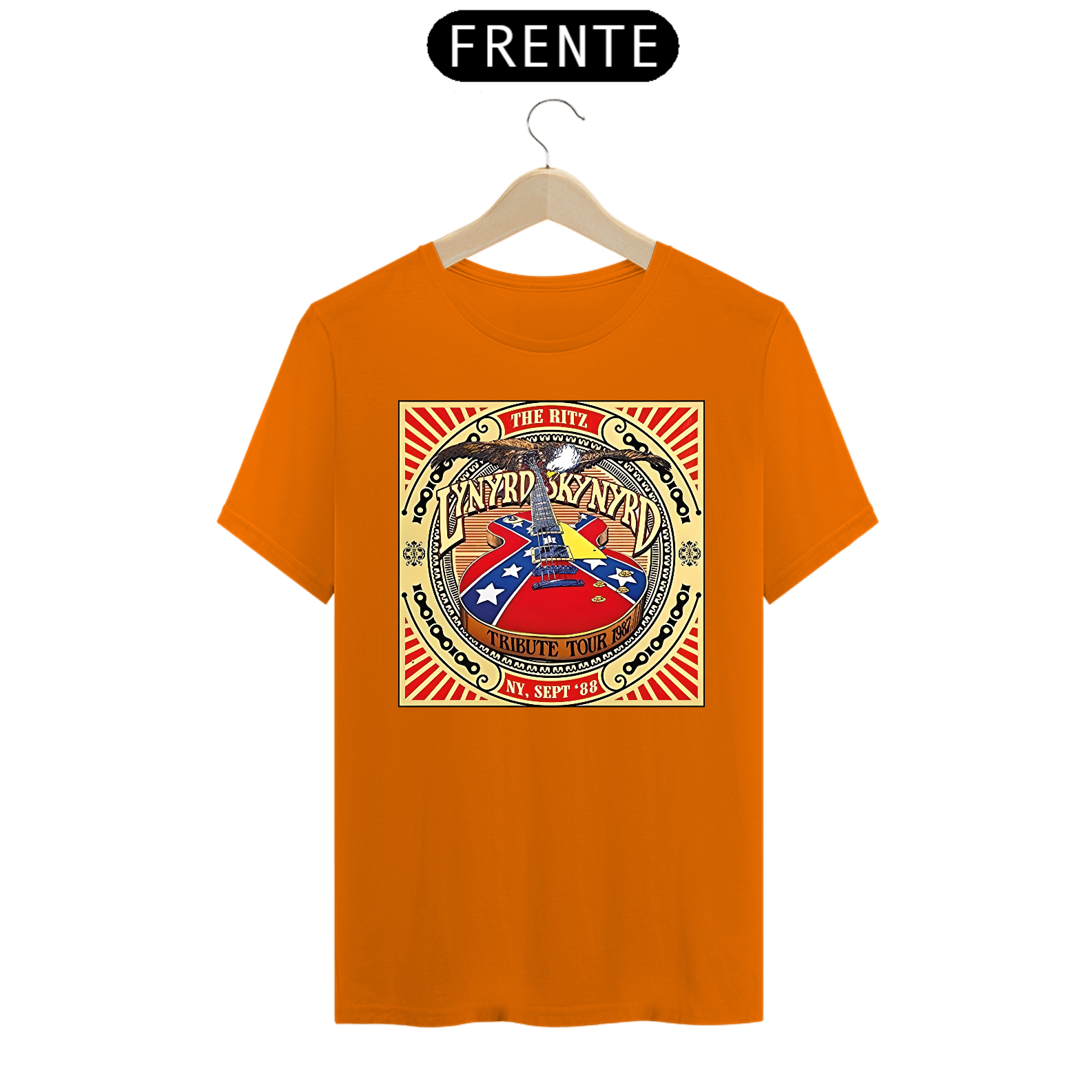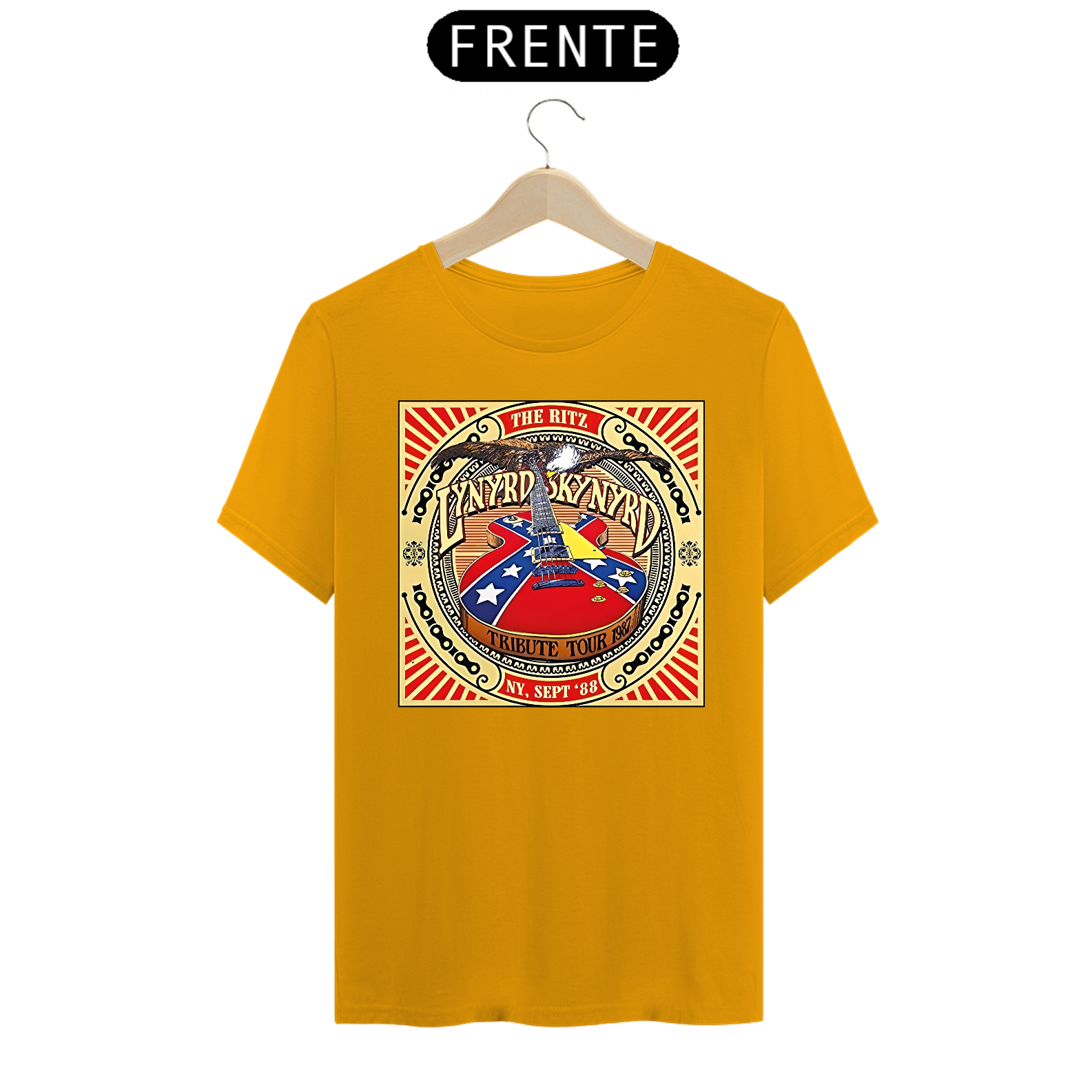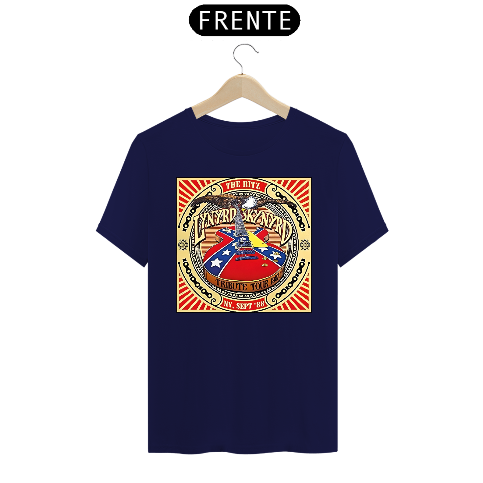 Camiseta estampada com a alma sulista do Lynyrd Skynyrd. Vista o espírito do rock sulista e a herança musical desta banda lendária com esta camiseta cheia de autenticidade.