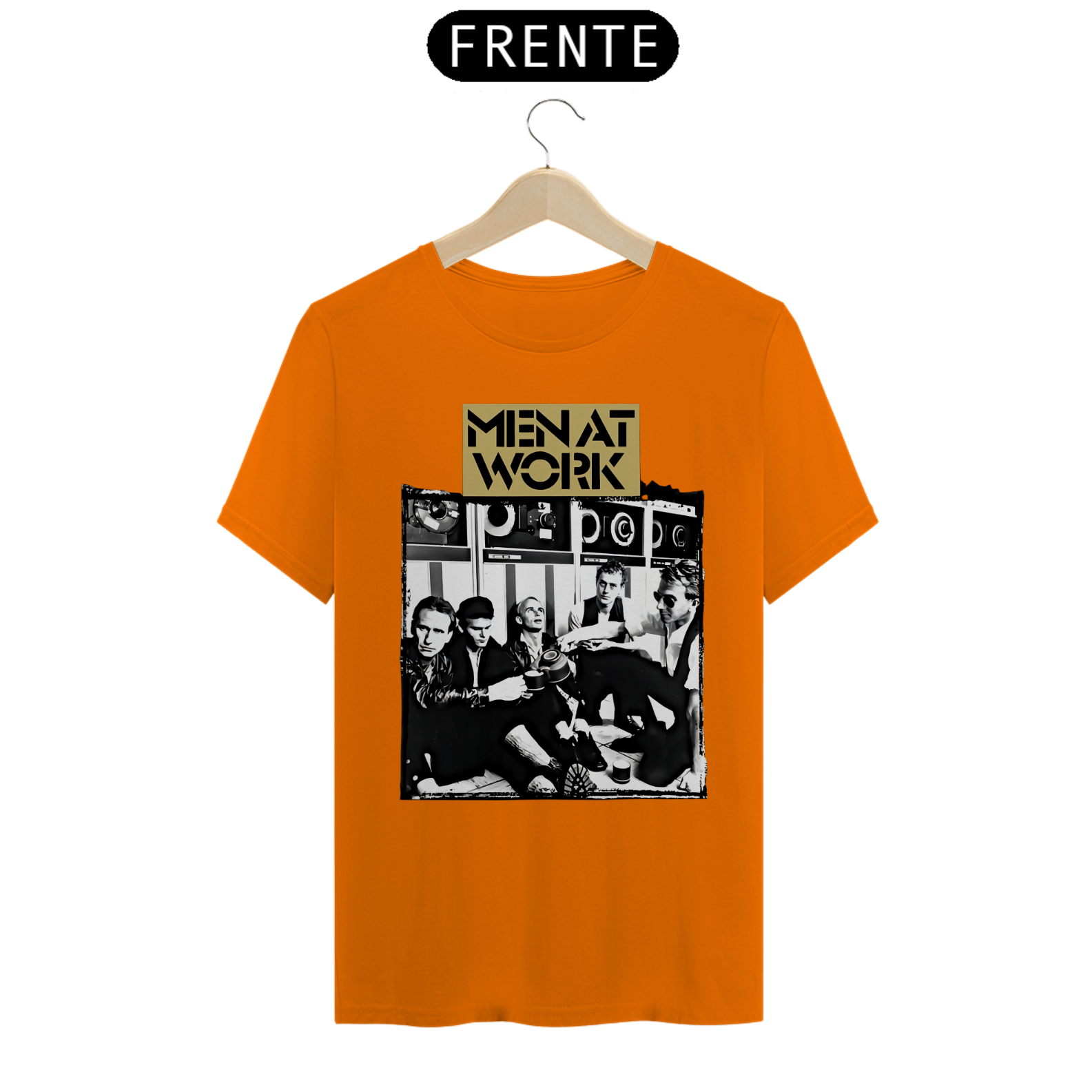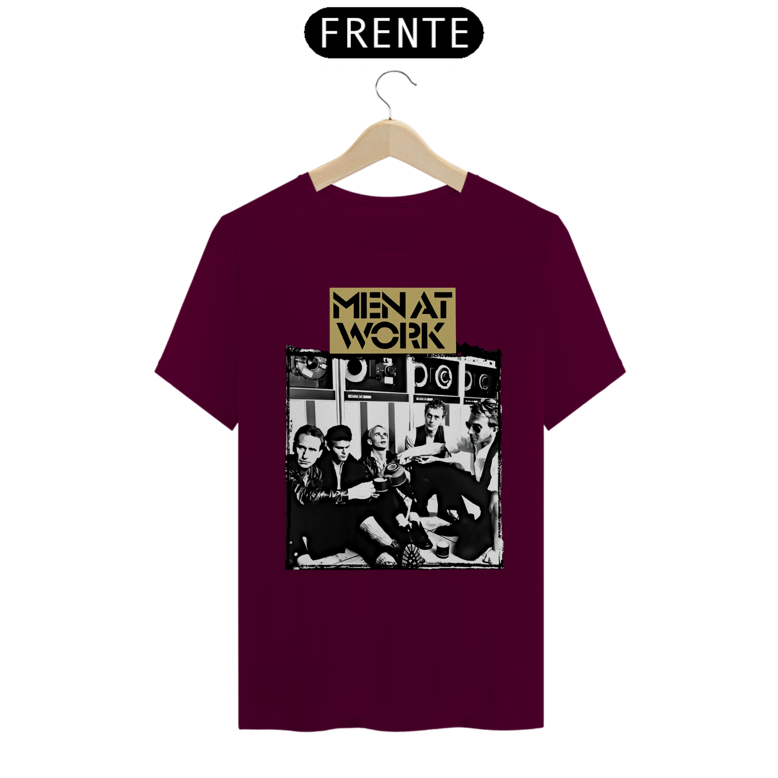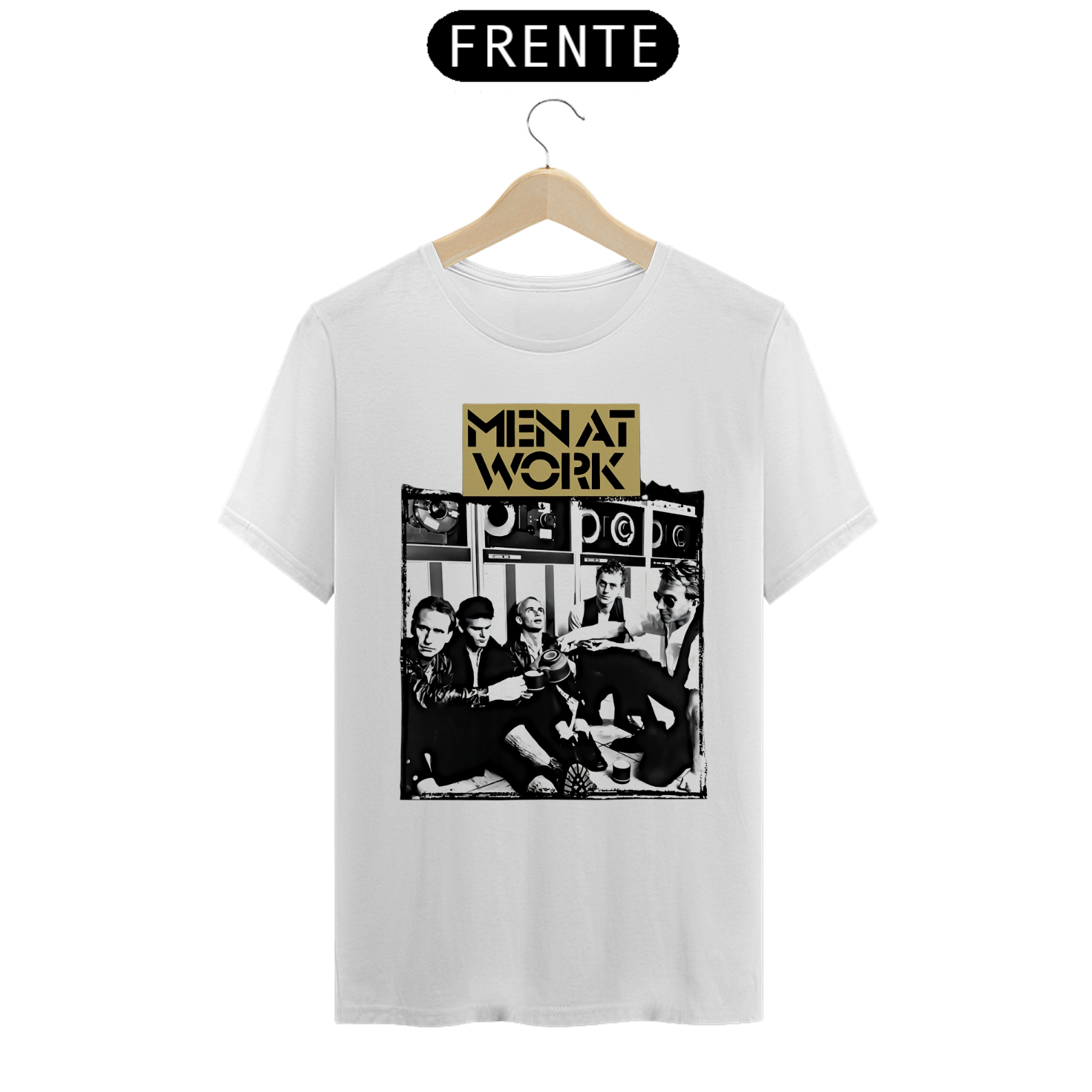 Esta camiseta é uma homenagem visual ao legado duradouro do Men at Work na história da música pop-rock.