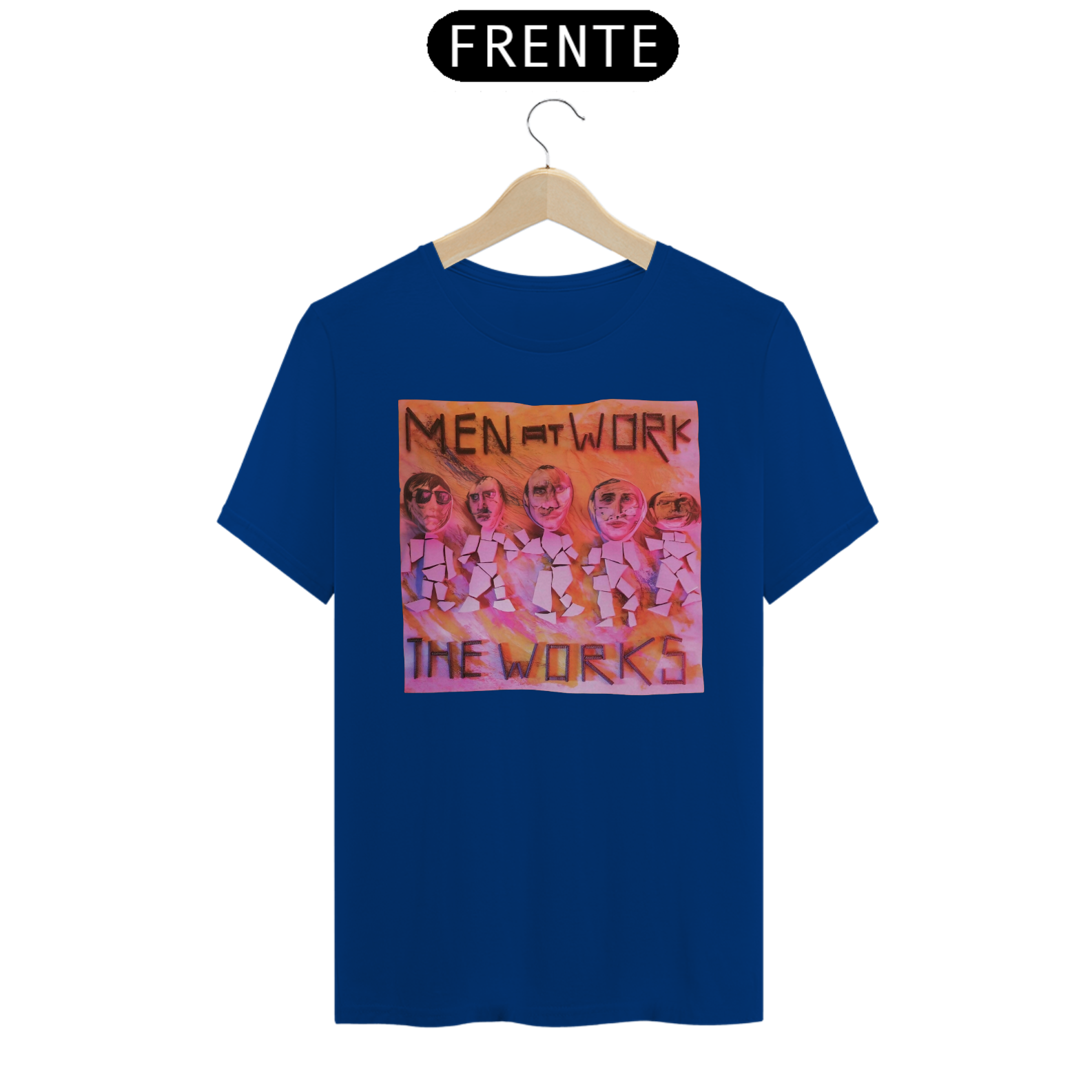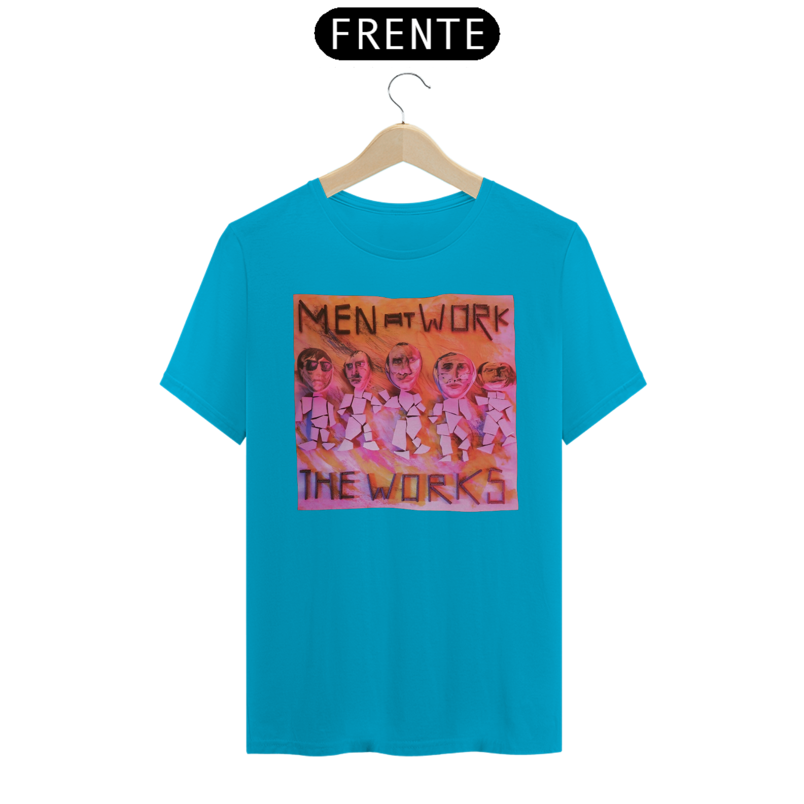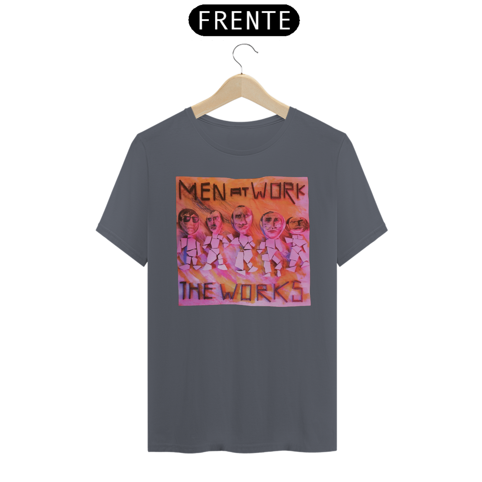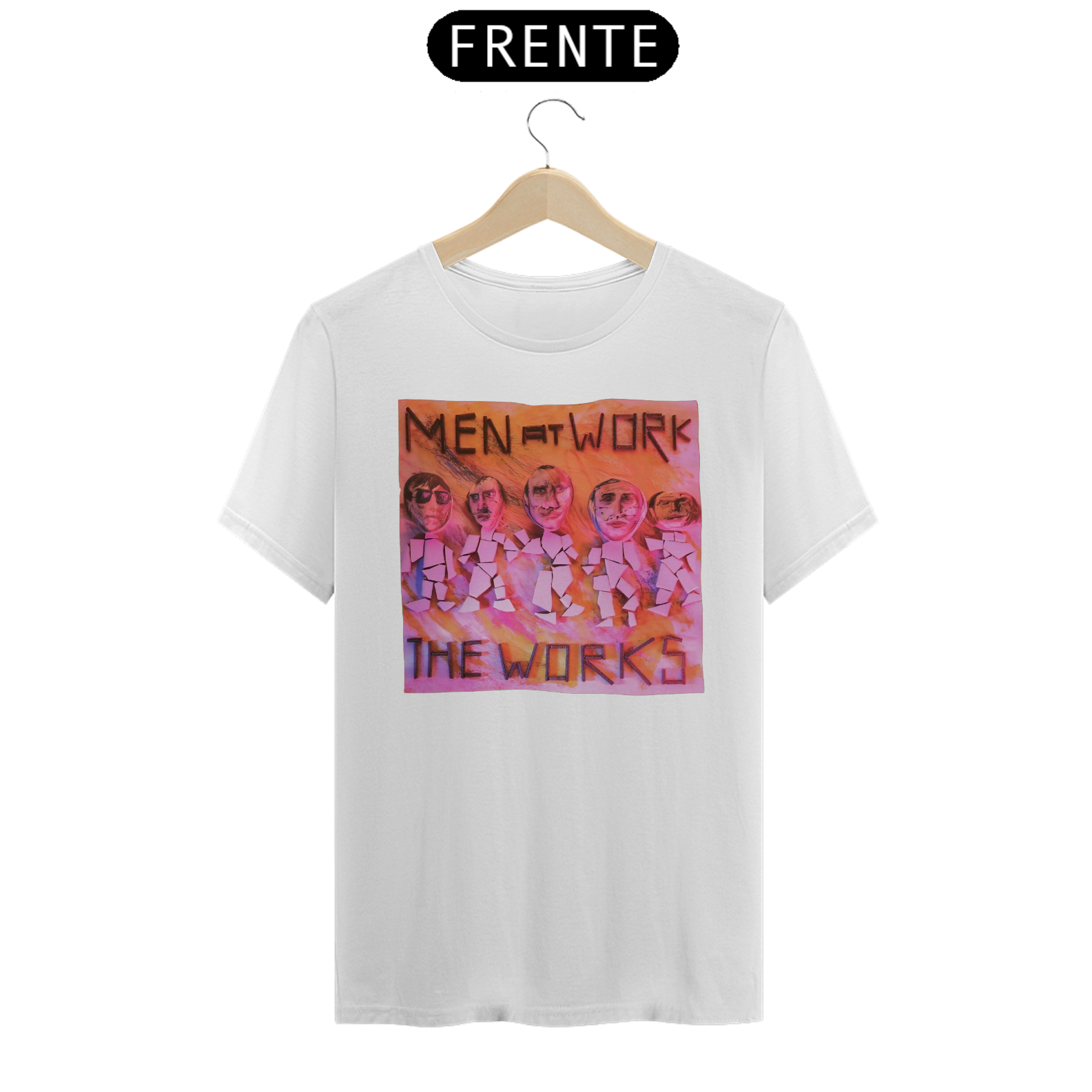 Esta camiseta é uma homenagem visual ao legado duradouro do Men at Work na história da música pop-rock.