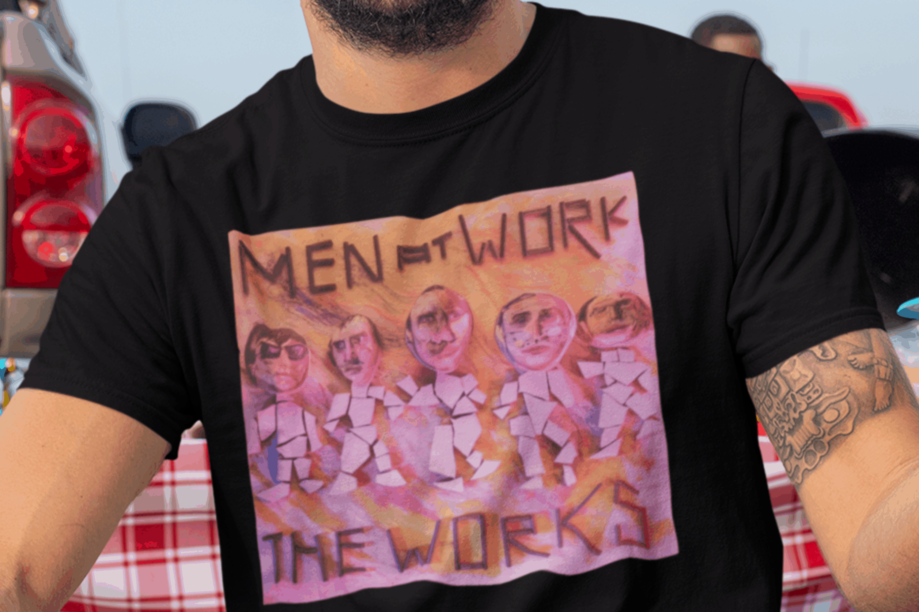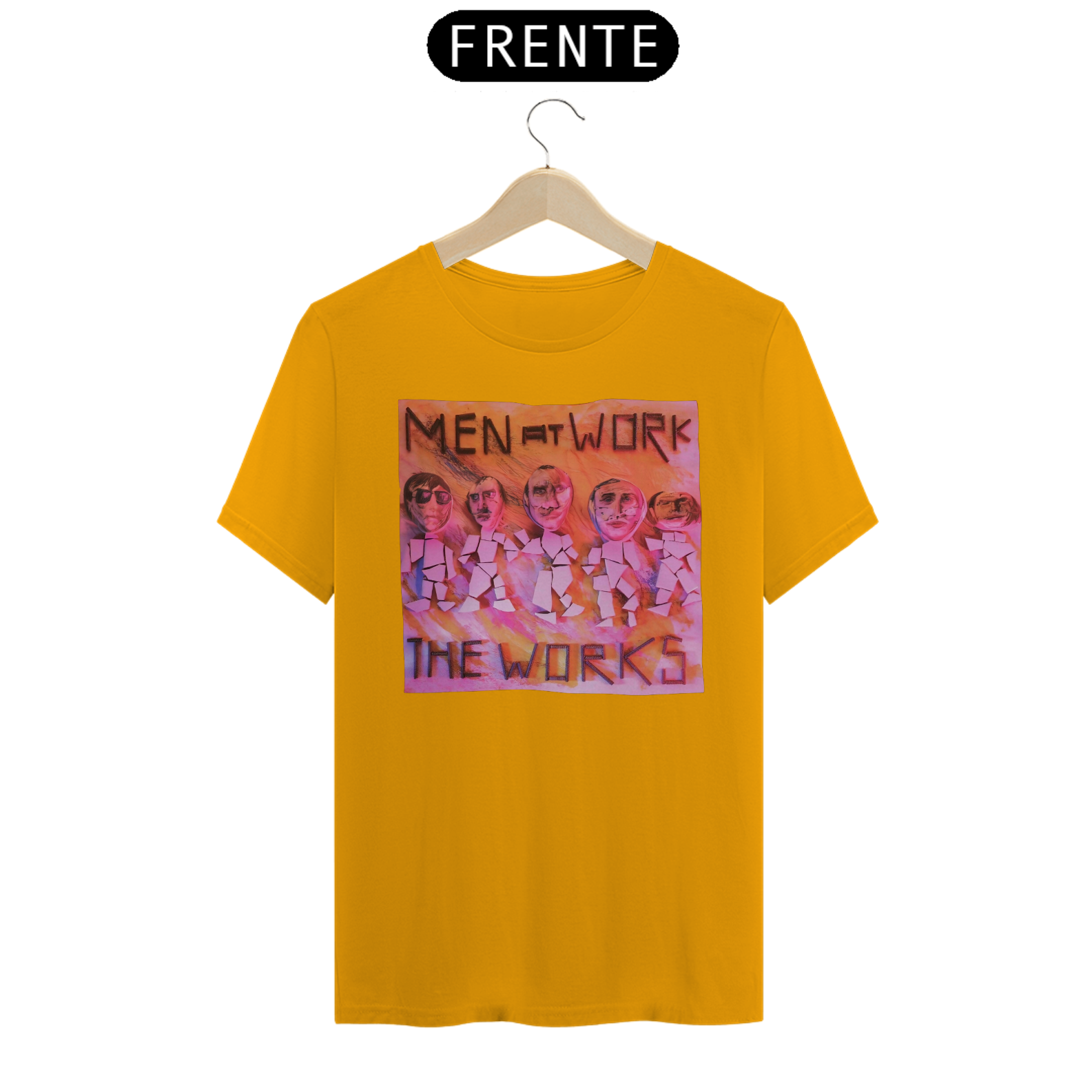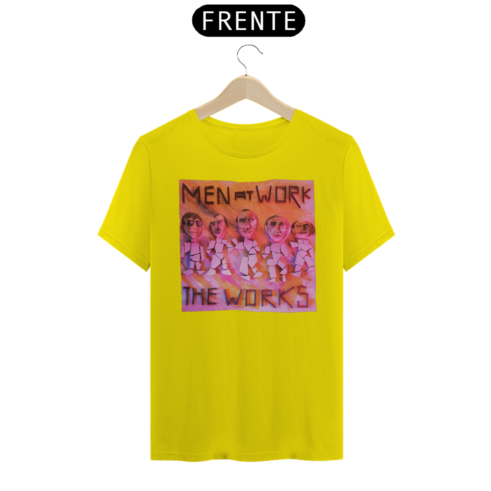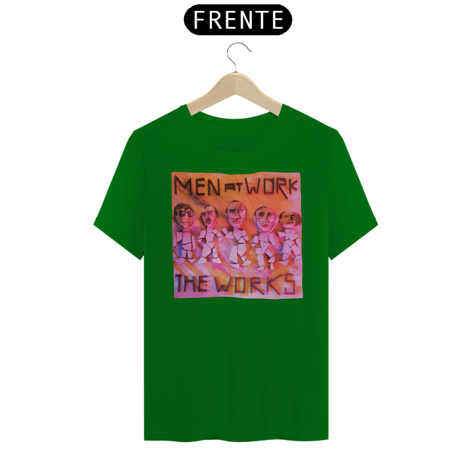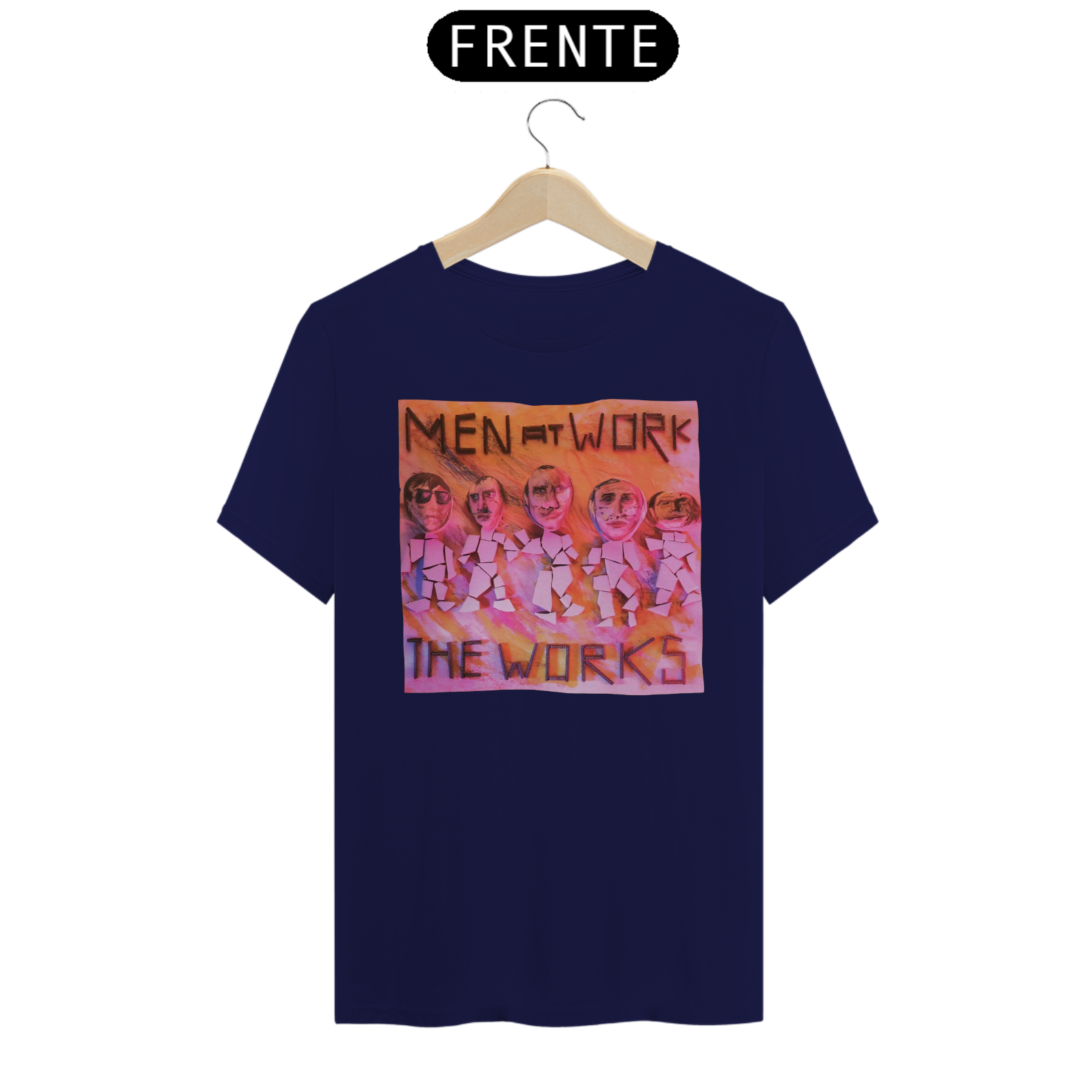 Esta camiseta é uma homenagem visual ao legado duradouro do Men at Work na história da música pop-rock.