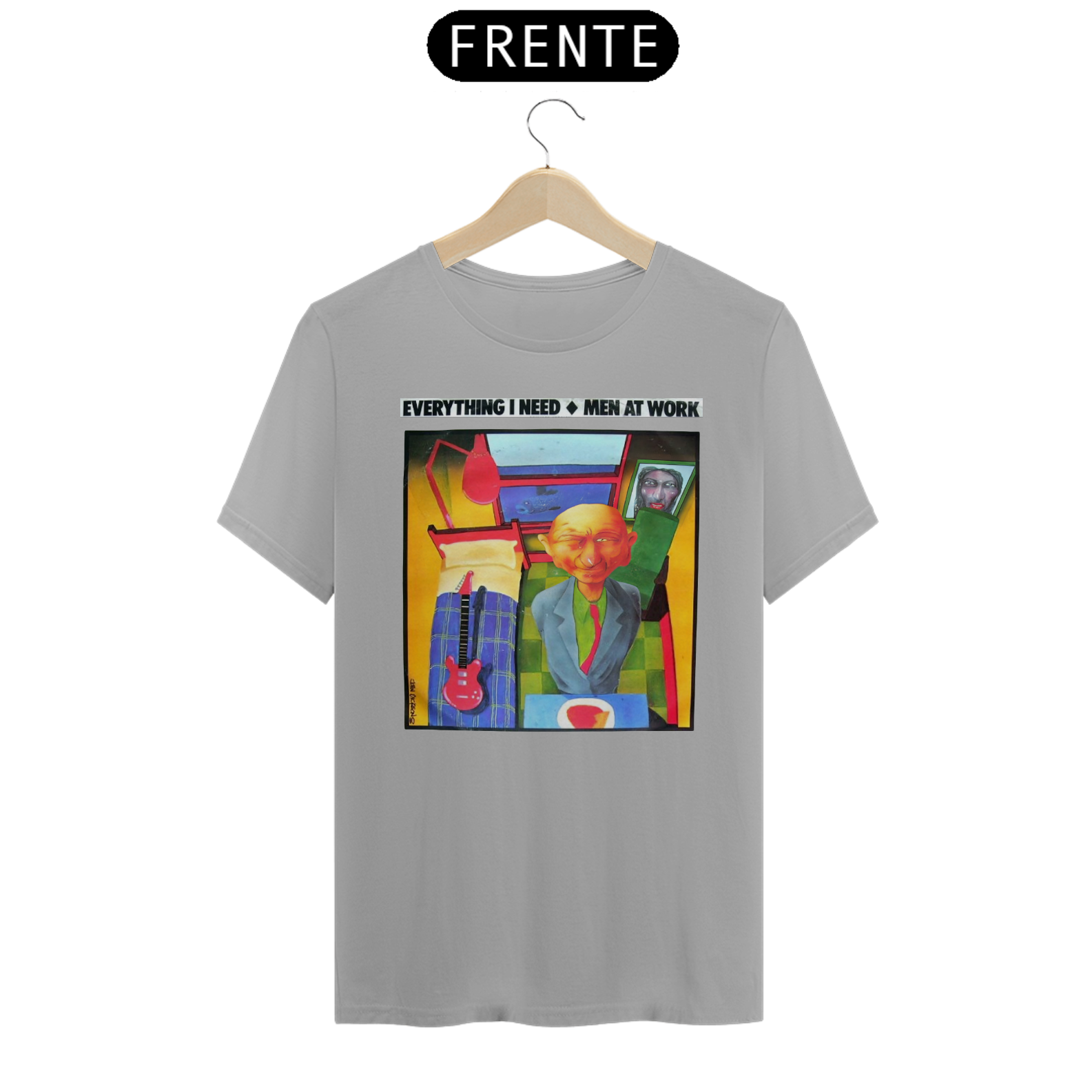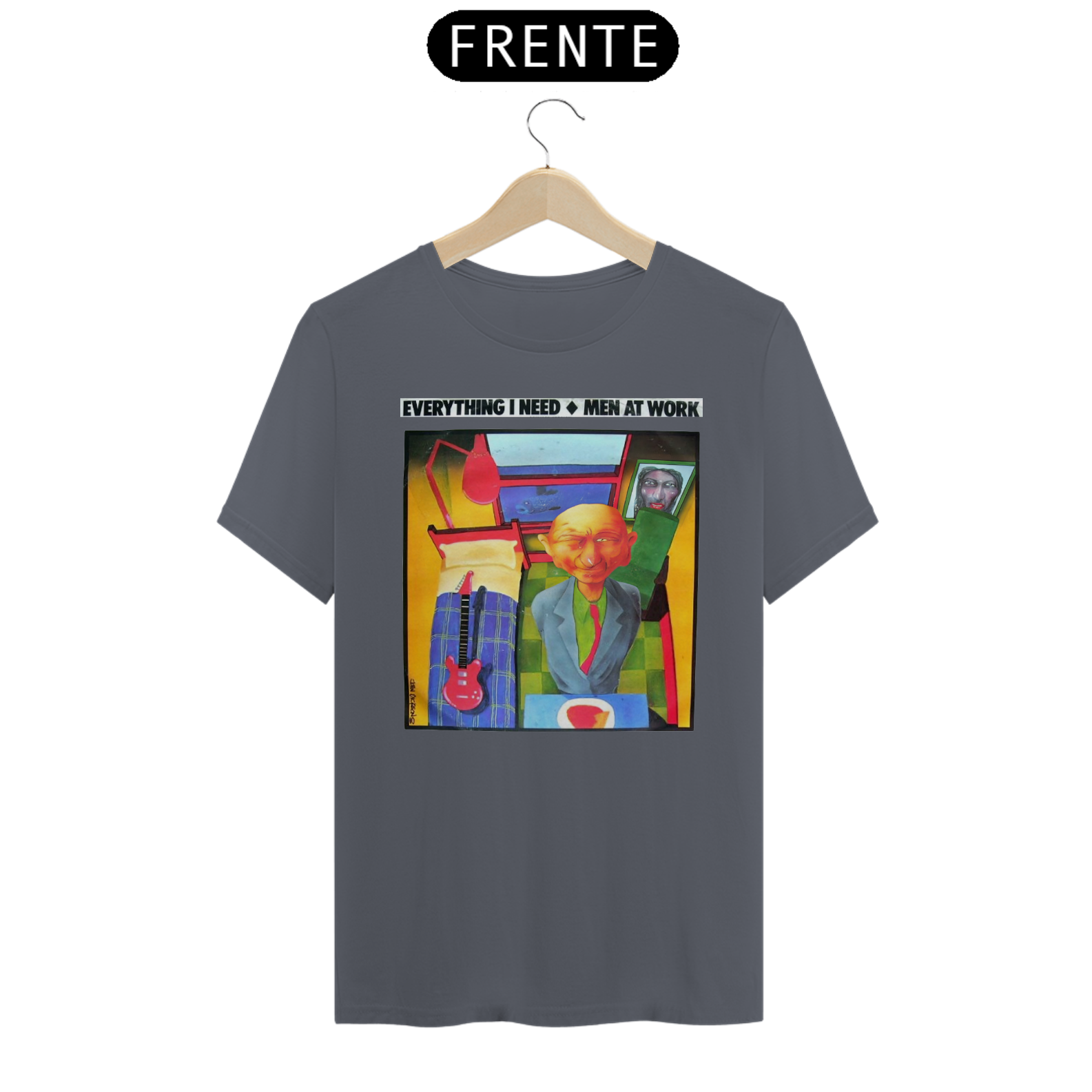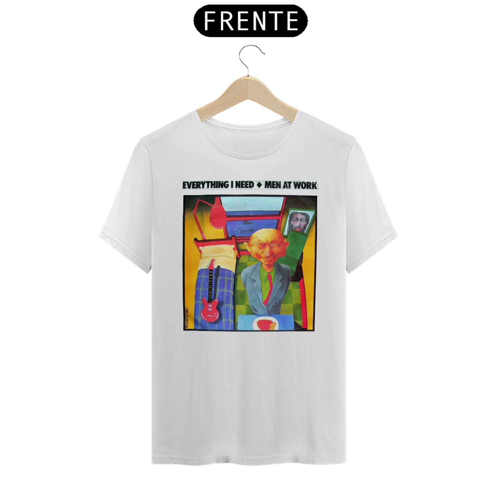 Esta camiseta é uma homenagem visual ao legado duradouro do Men at Work na história da música pop-rock.