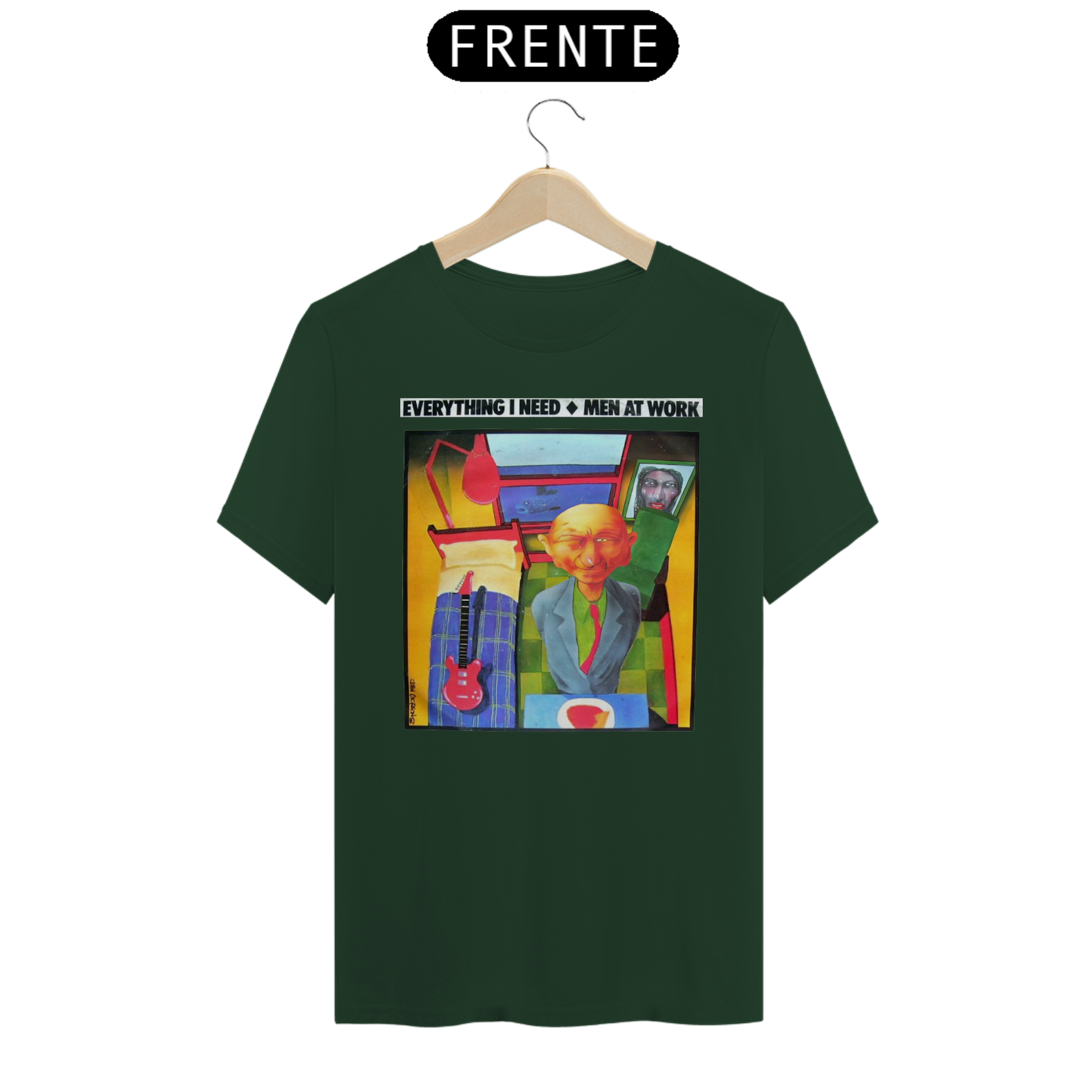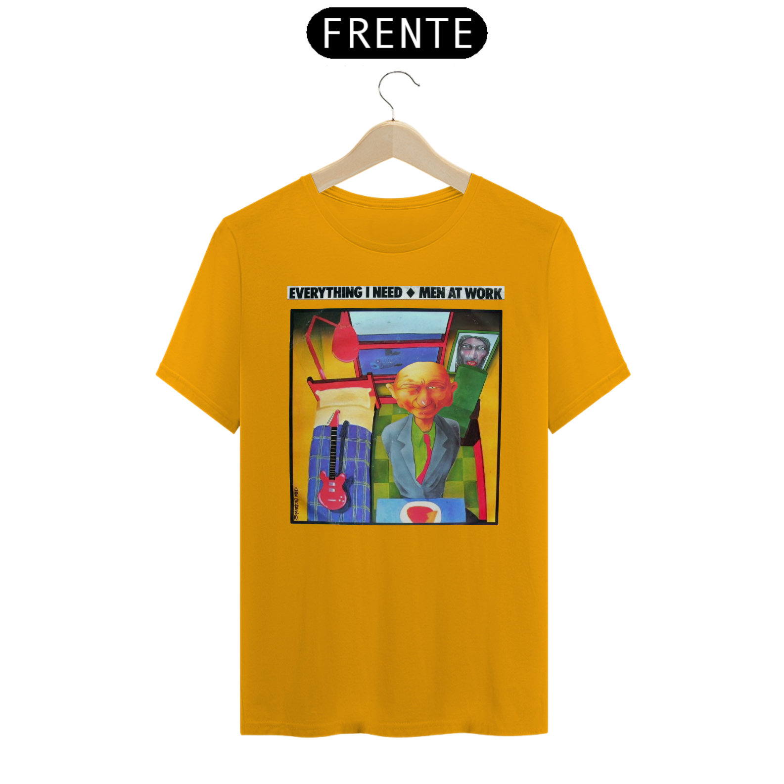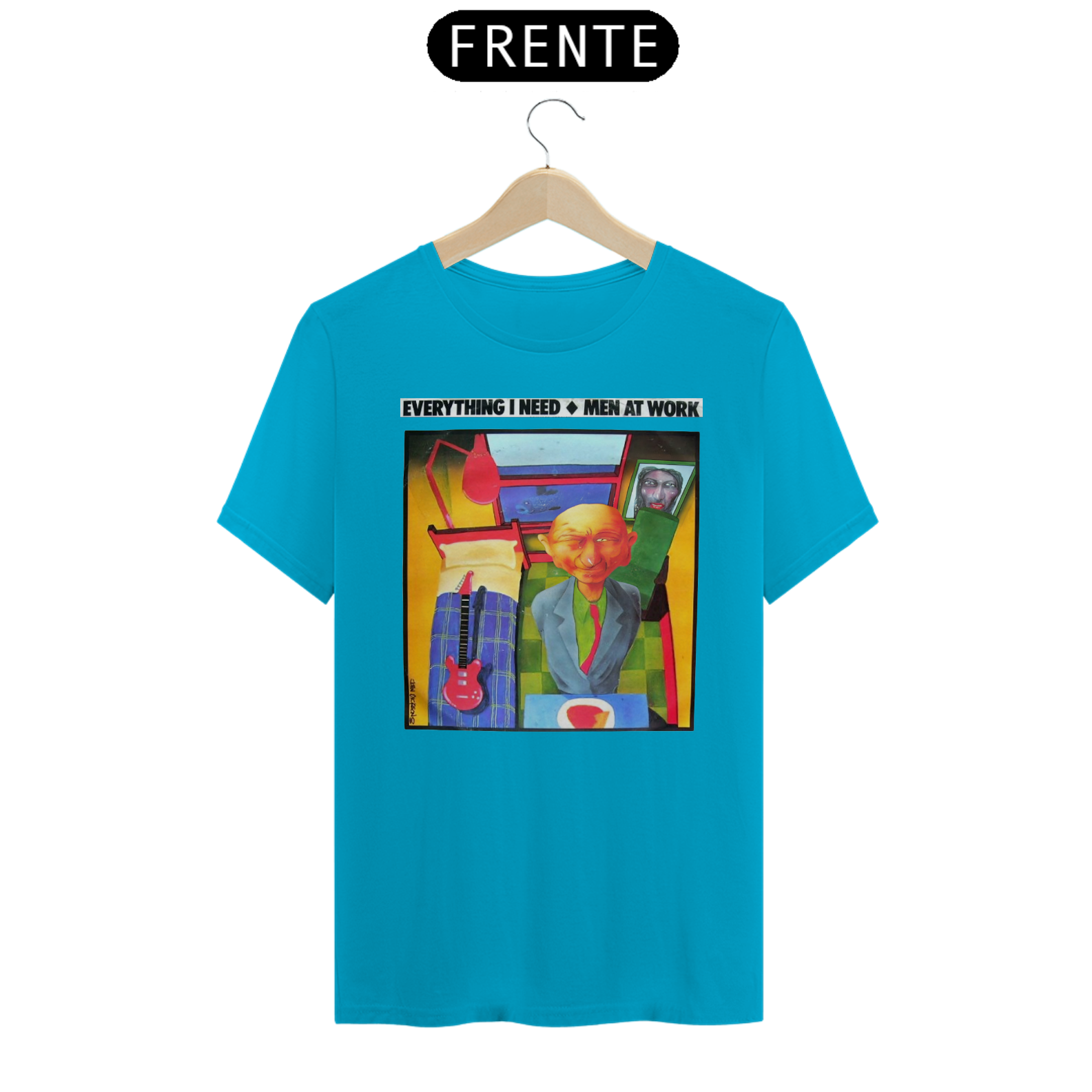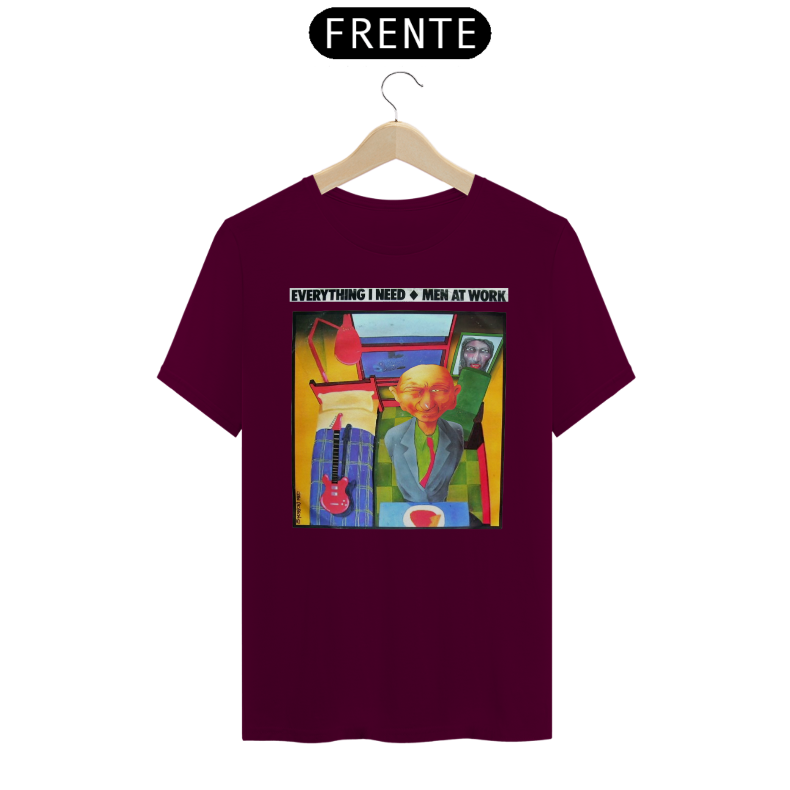 Esta camiseta é uma homenagem visual ao legado duradouro do Men at Work na história da música pop-rock.