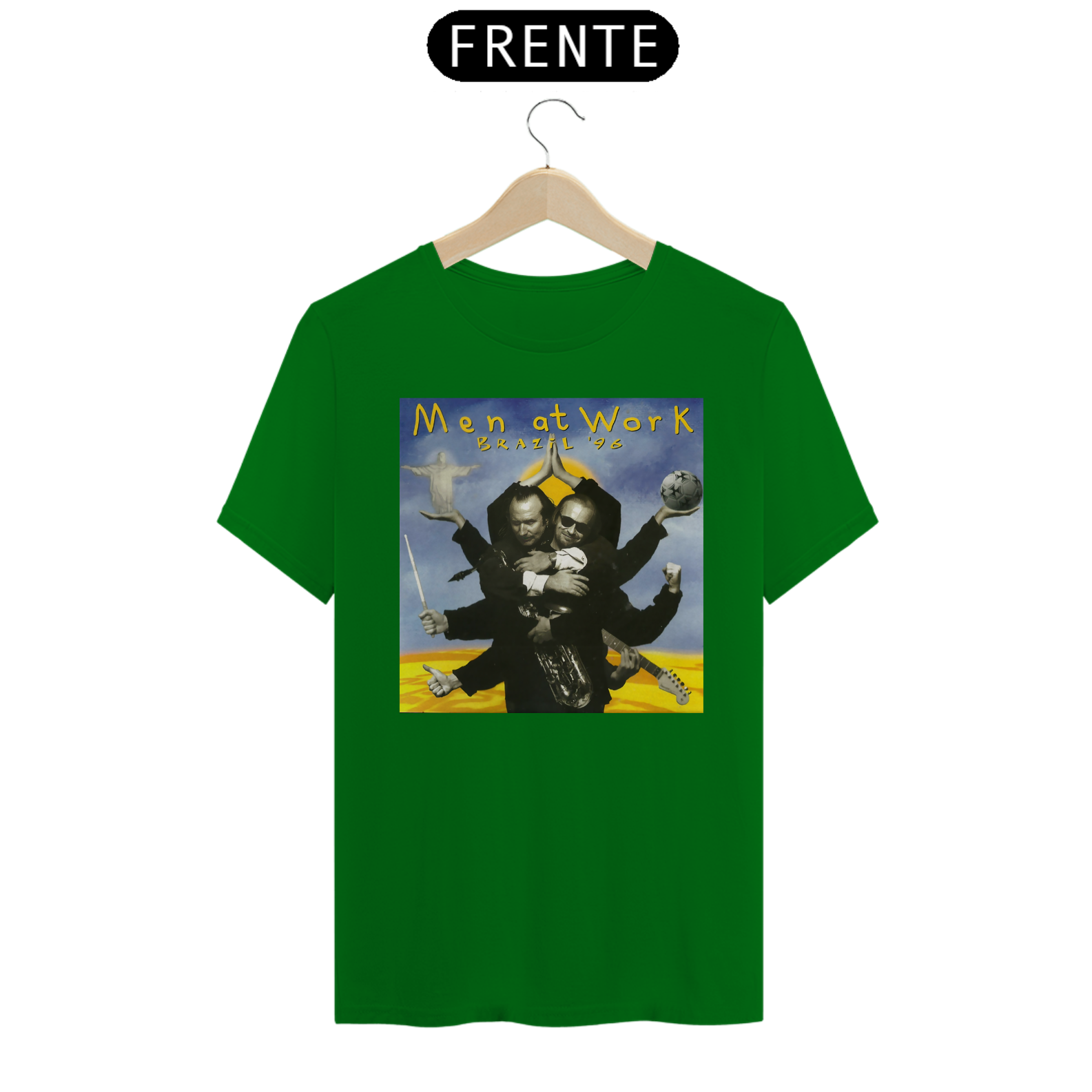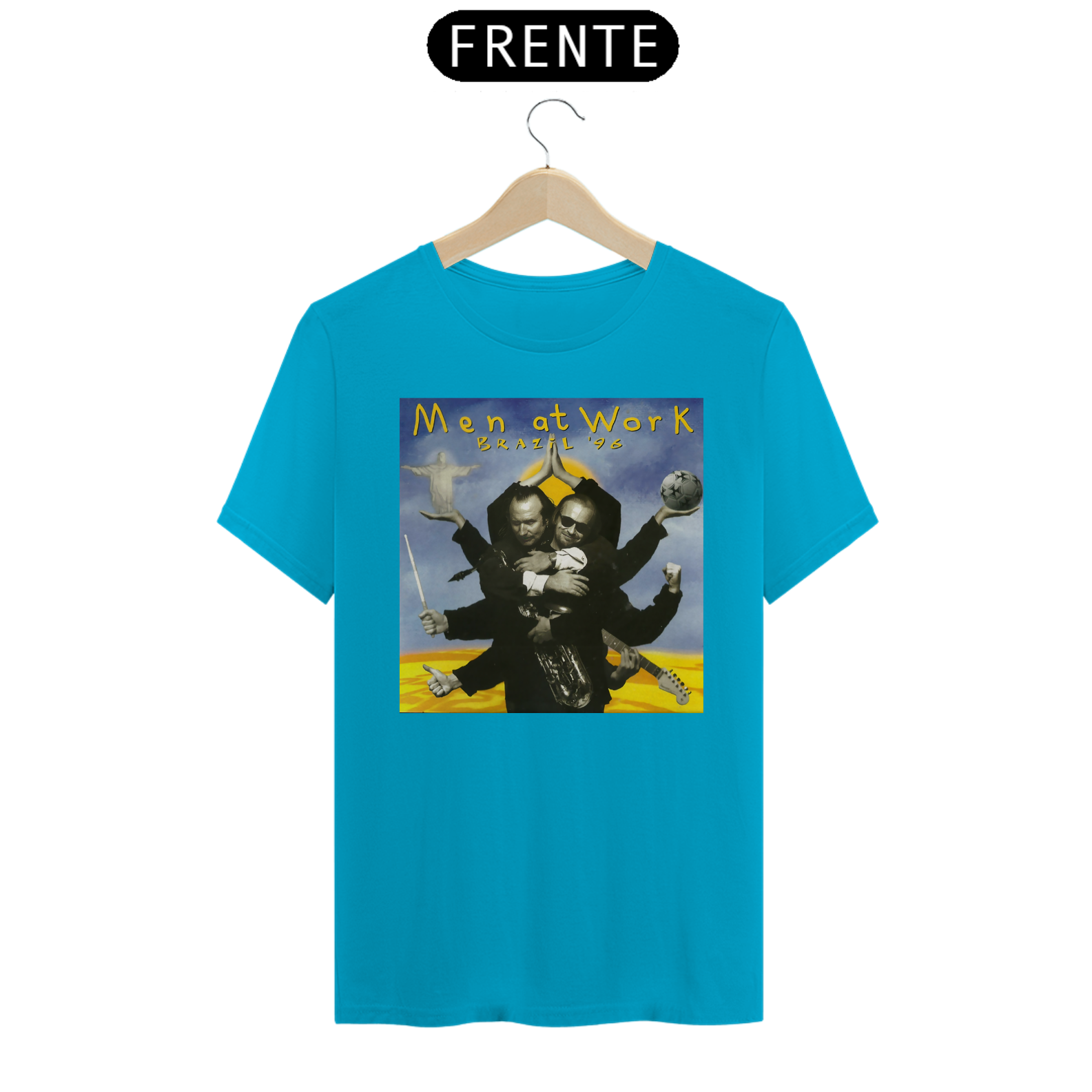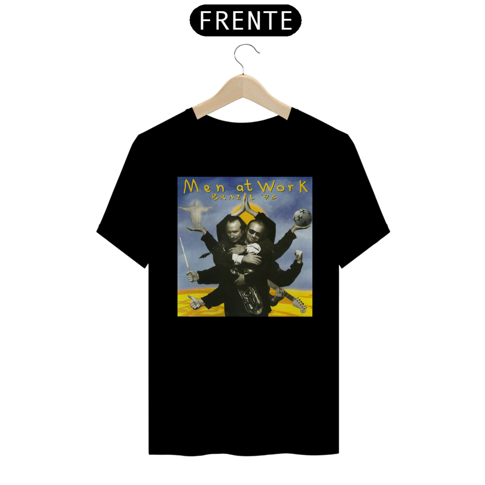 Esta camiseta é uma homenagem visual ao legado duradouro do Men at Work na história da música pop-rock.