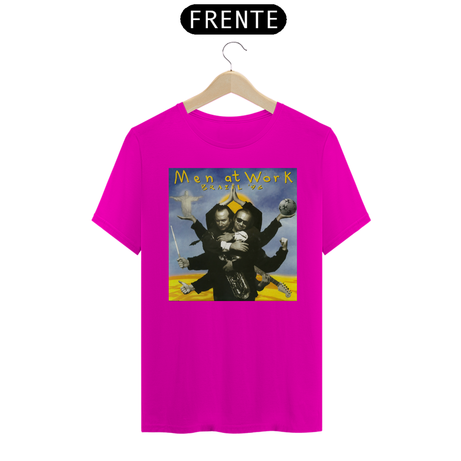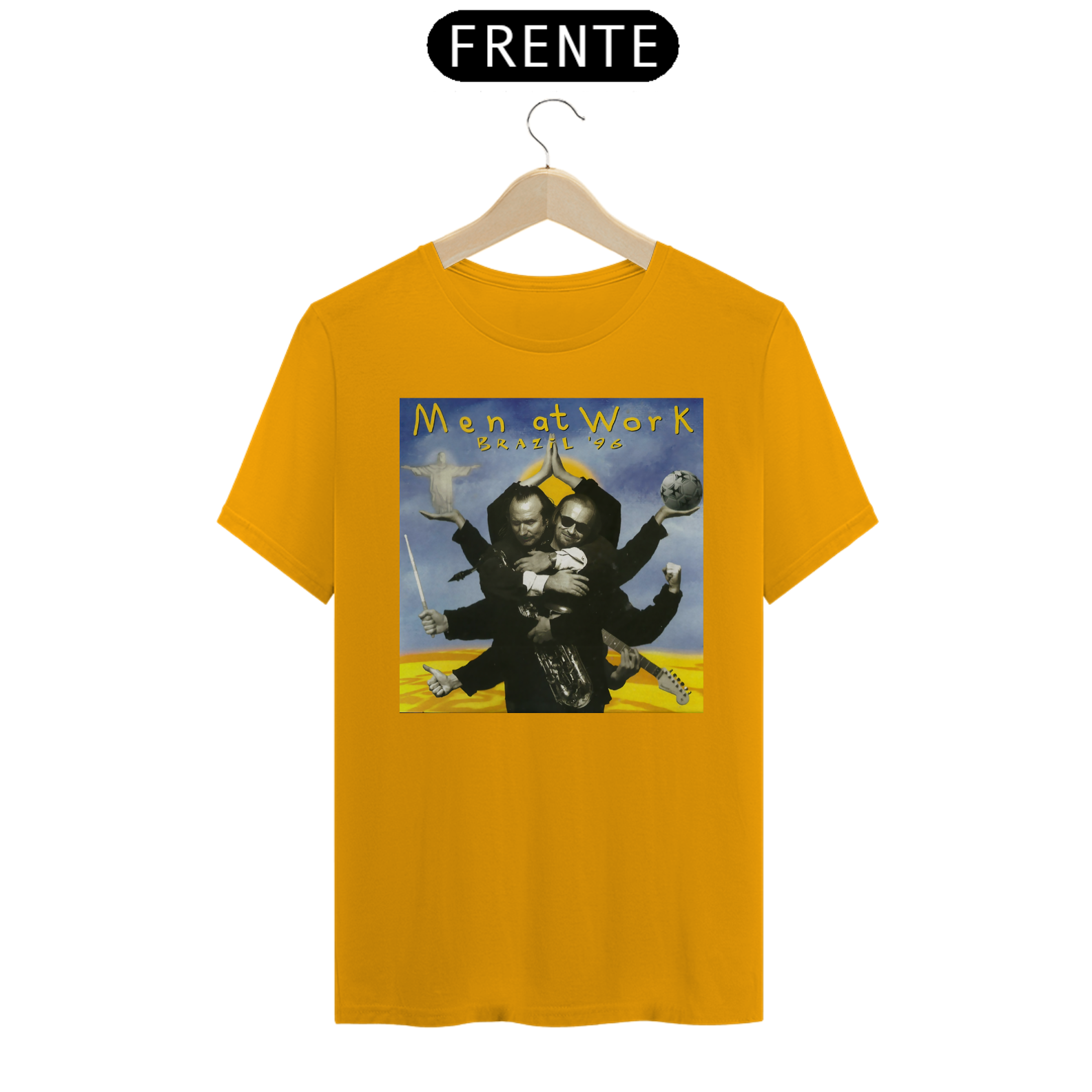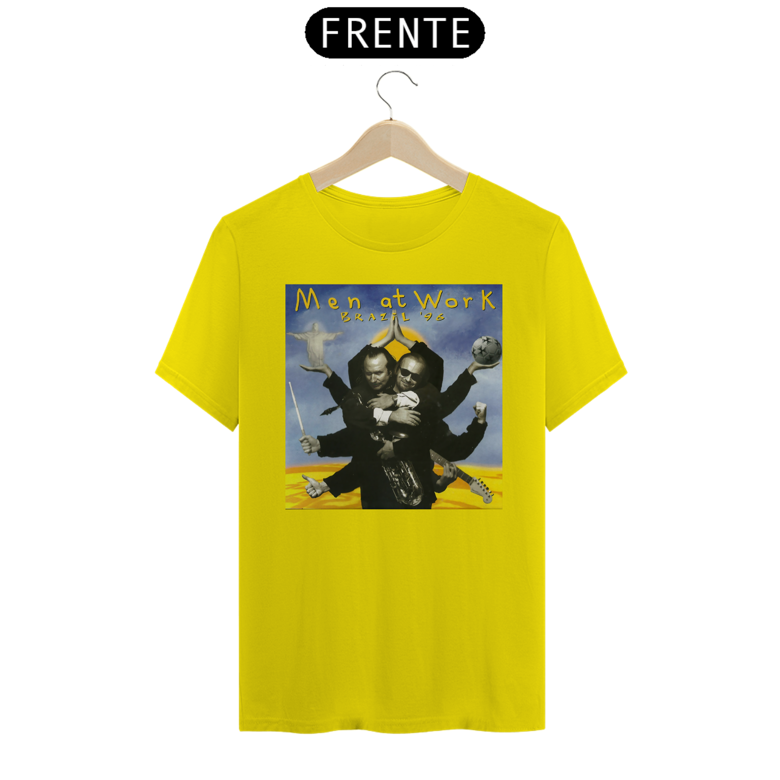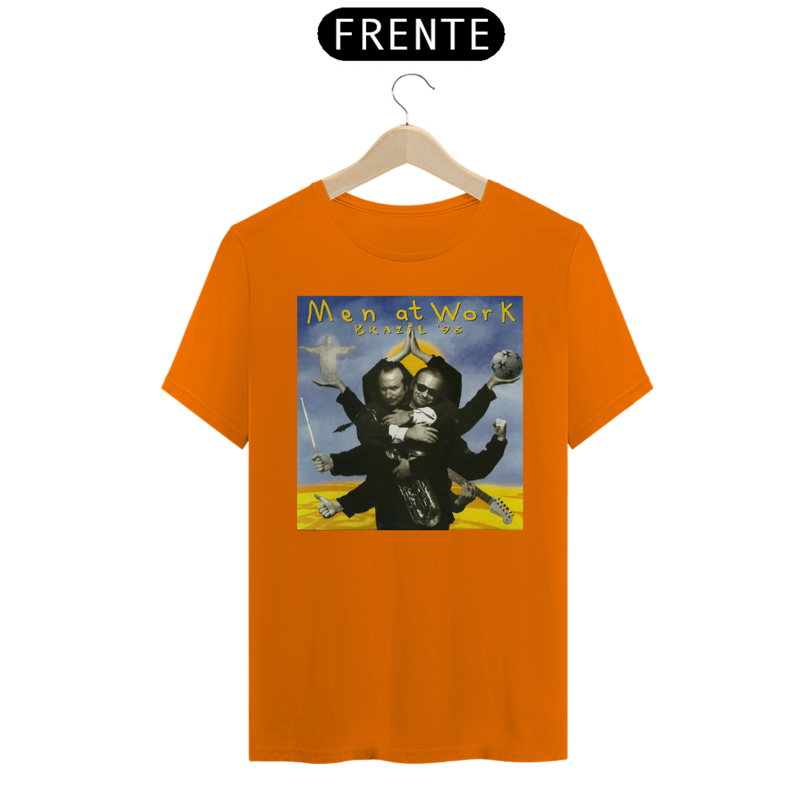Esta camiseta é uma homenagem visual ao legado duradouro do Men at Work na história da música pop-rock.