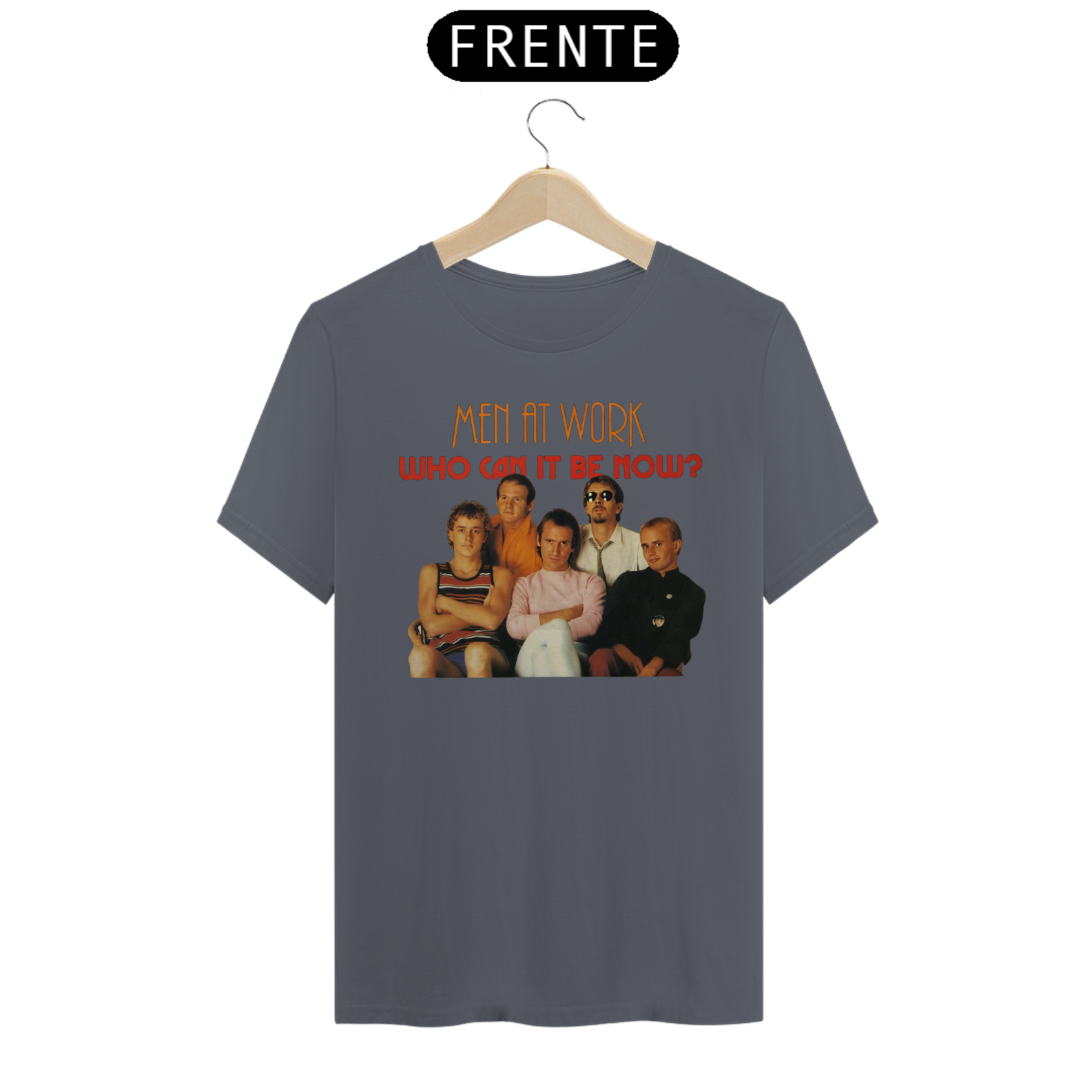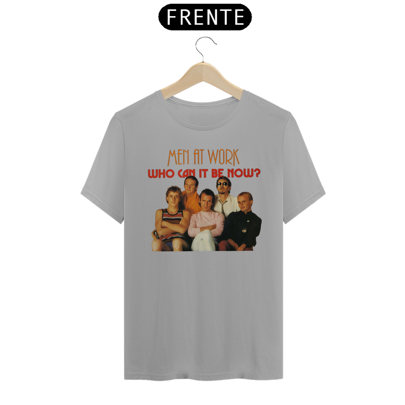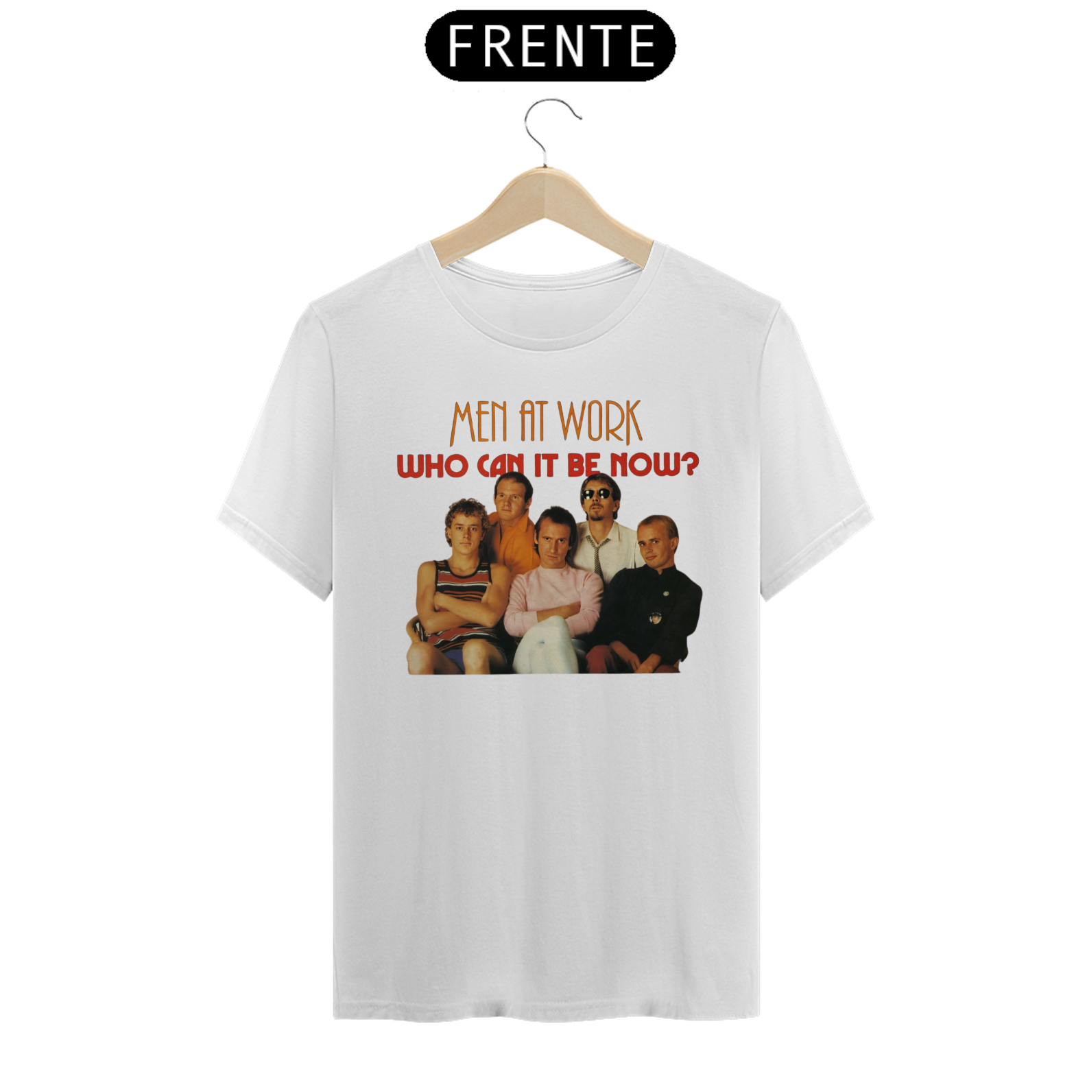 Esta camiseta é uma homenagem visual ao legado duradouro do Men at Work na história da música pop-rock.
