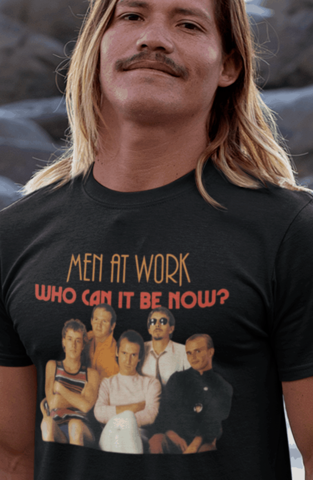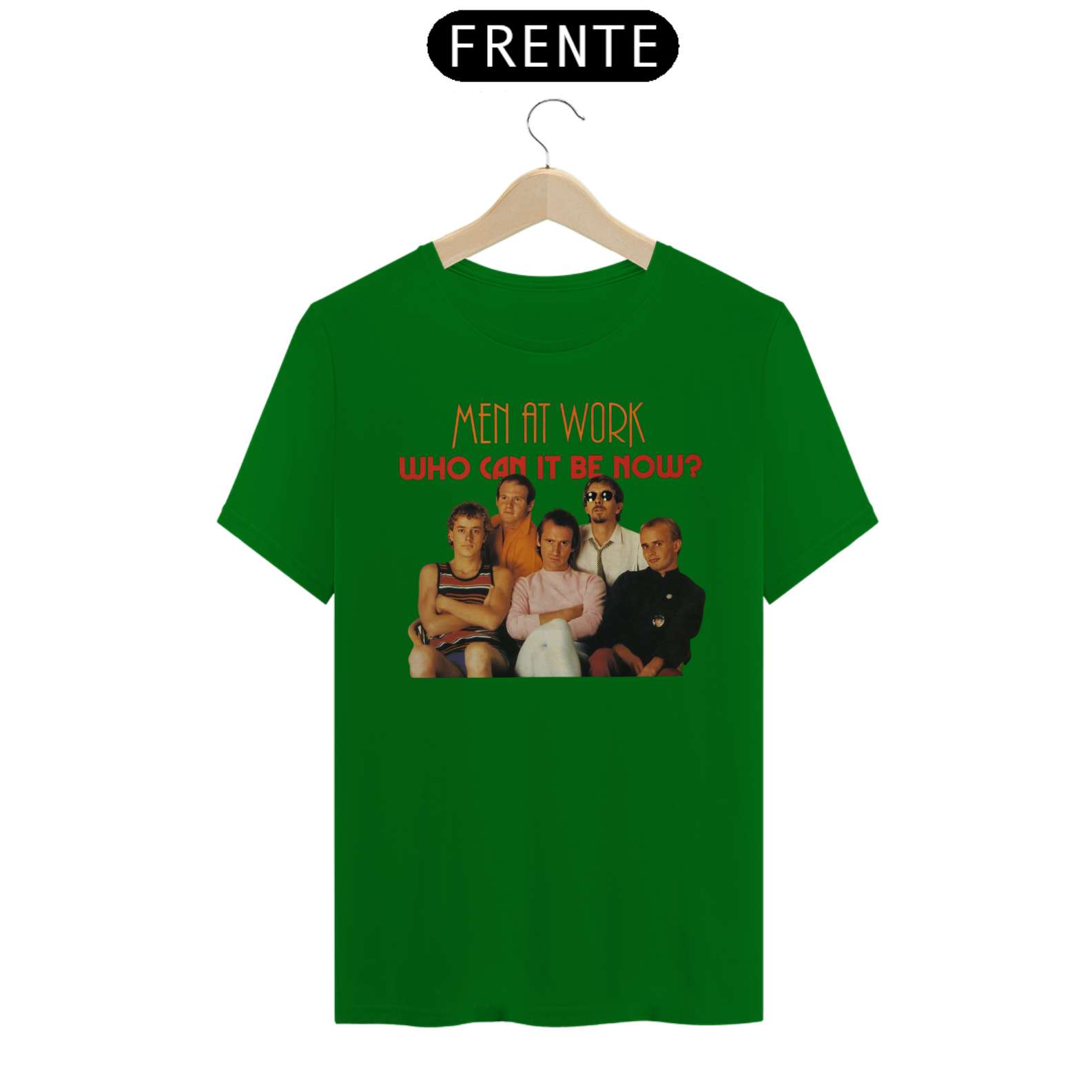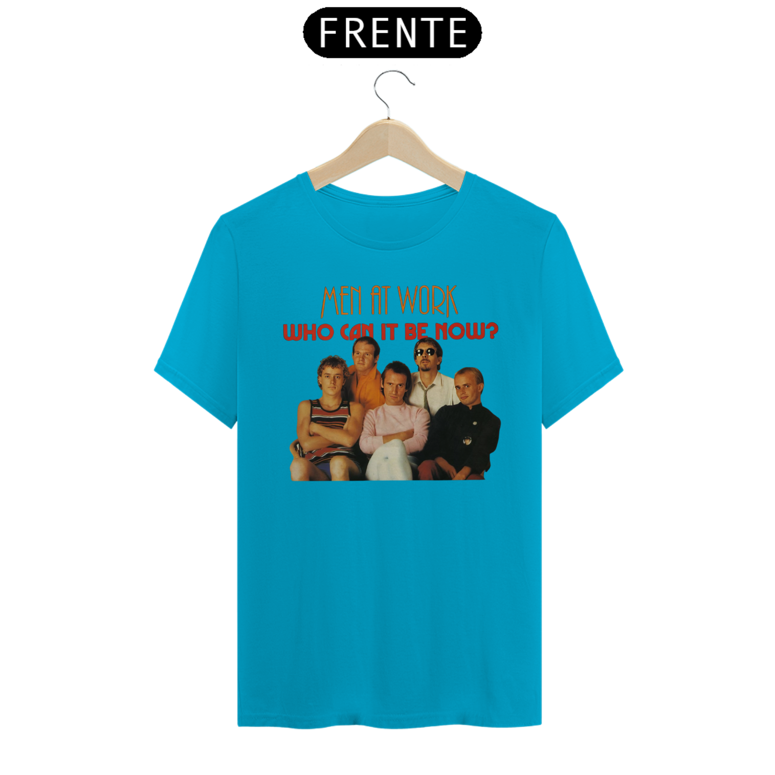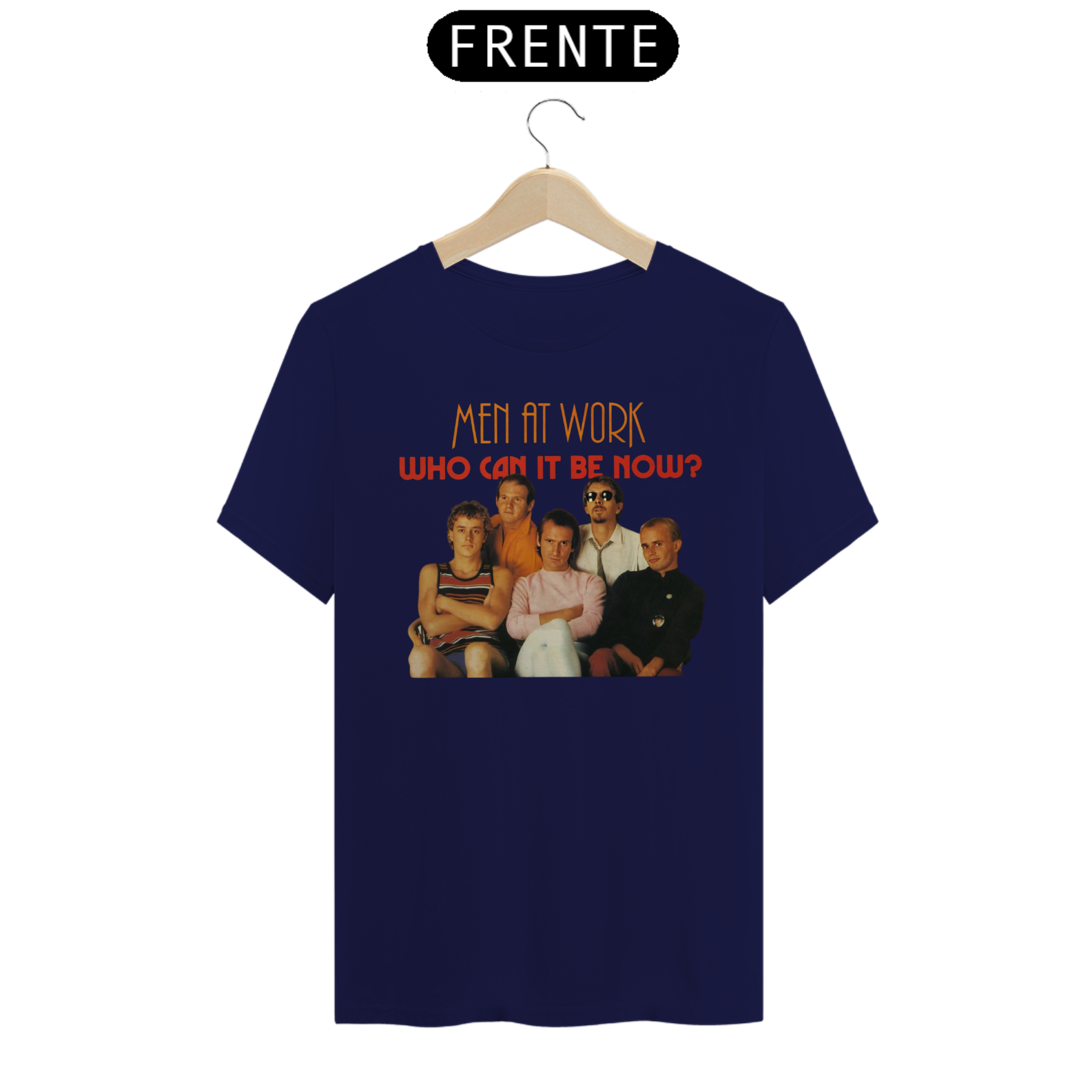 Esta camiseta é uma homenagem visual ao legado duradouro do Men at Work na história da música pop-rock.
