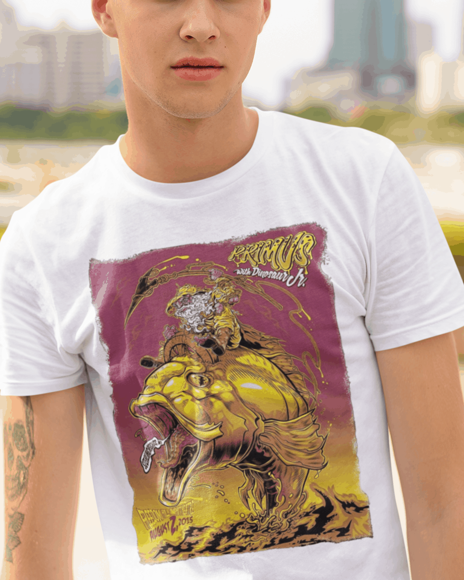 Camiseta estampada com a psicodelia e o virtuosismo da banda Primus. Vista-se com o som excêntrico e o espírito inovador da banda que desafia convenções musicais.
