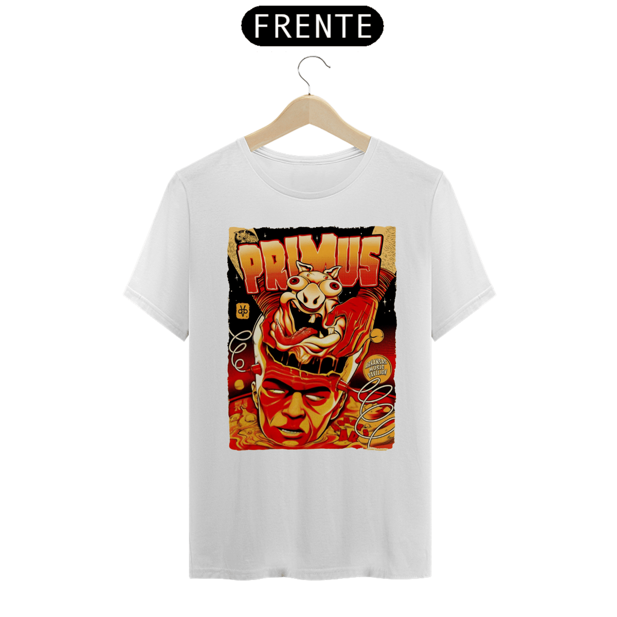 Camiseta estampada com a psicodelia e o virtuosismo da banda Primus. Vista-se com o som excêntrico e o espírito inovador da banda que desafia convenções musicais.