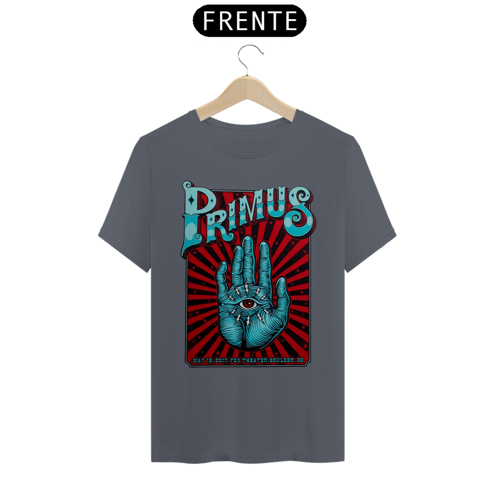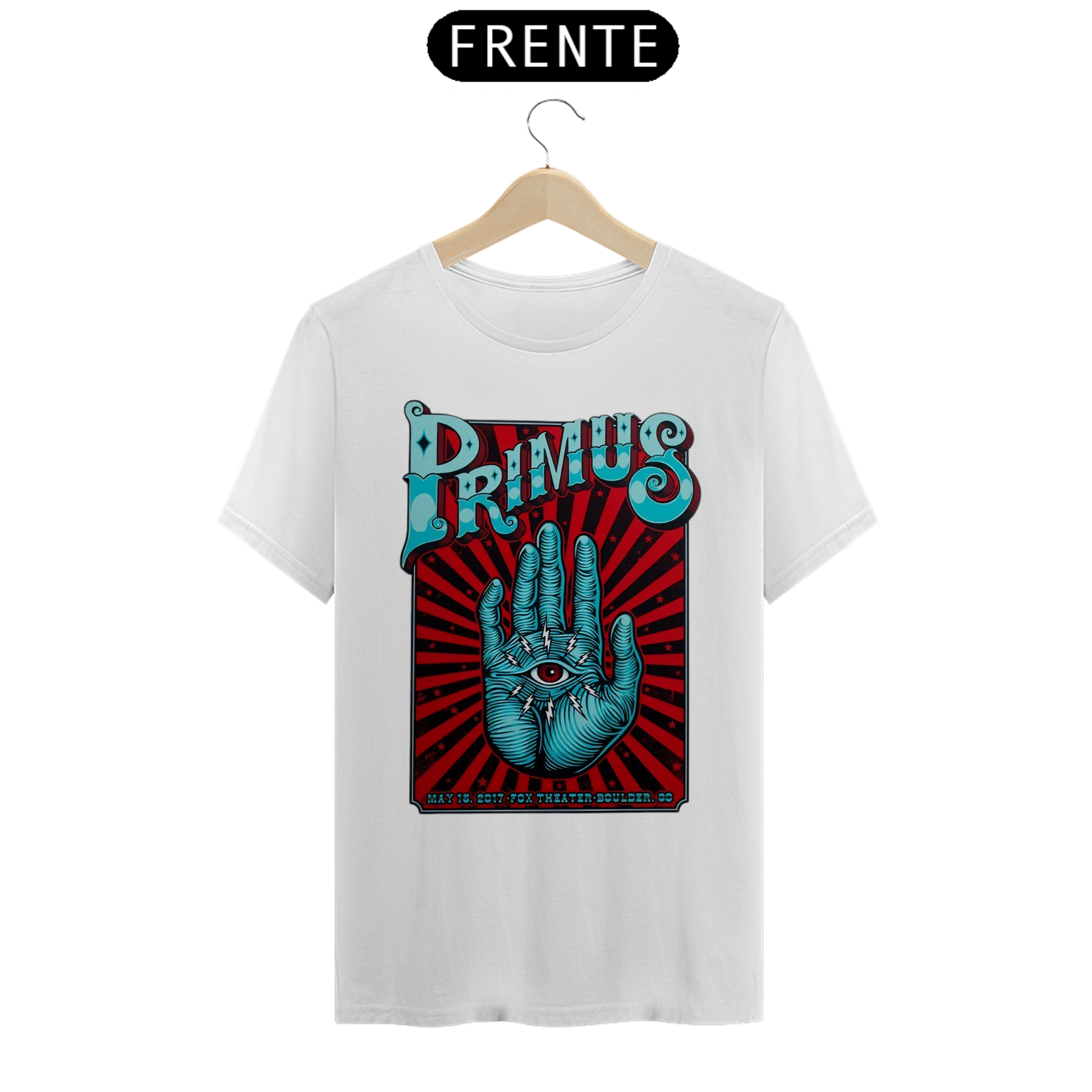 Camiseta estampada com a psicodelia e o virtuosismo da banda Primus. Vista-se com o som excêntrico e o espírito inovador da banda que desafia convenções musicais.