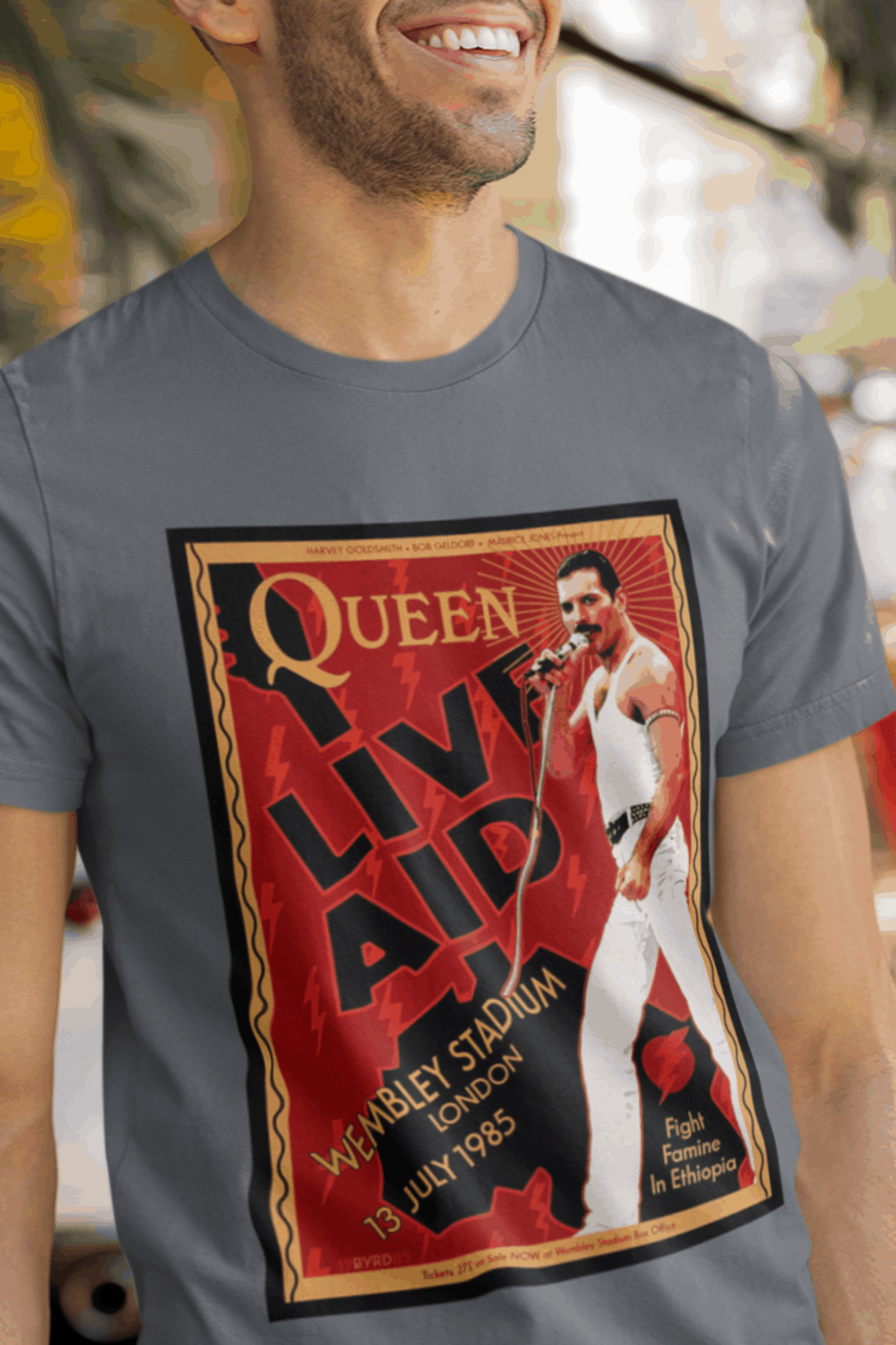 Camiseta estampada com a majestade musical do Queen. Vista-se com o legado lendário da banda e faça sua própria declaração de rock 'n' roll.