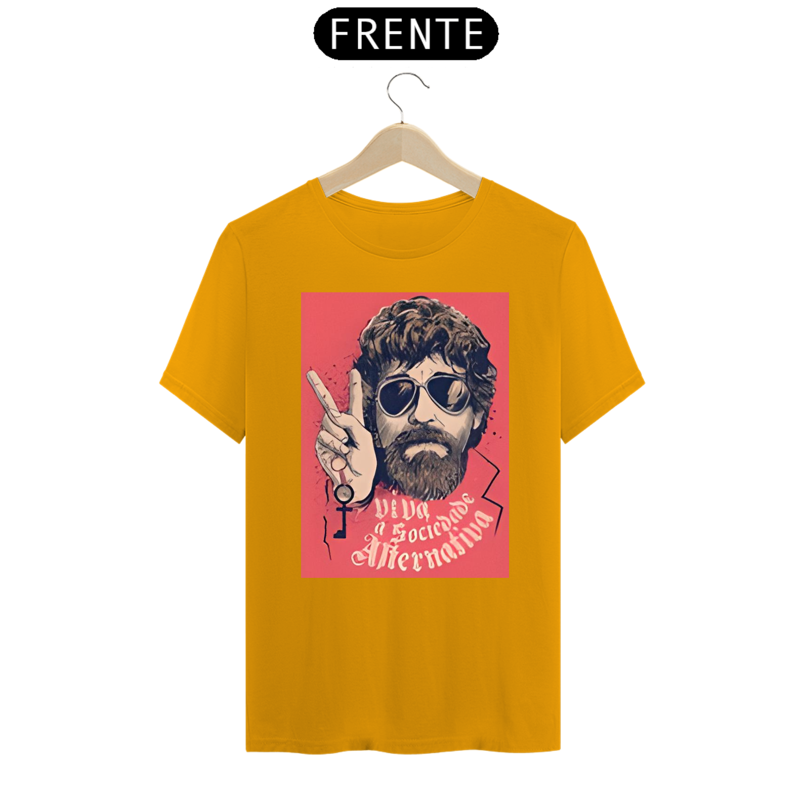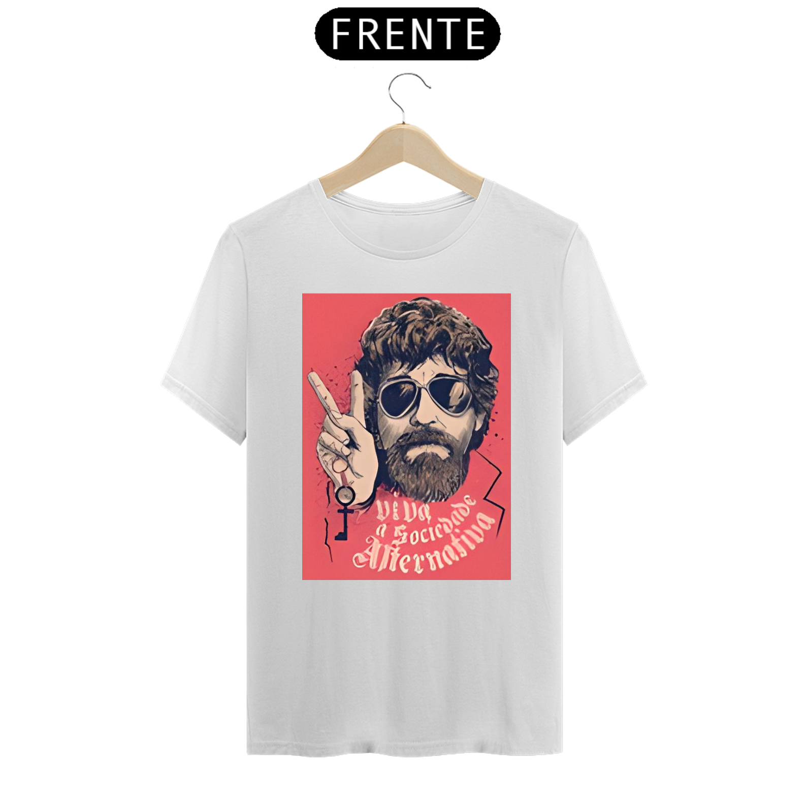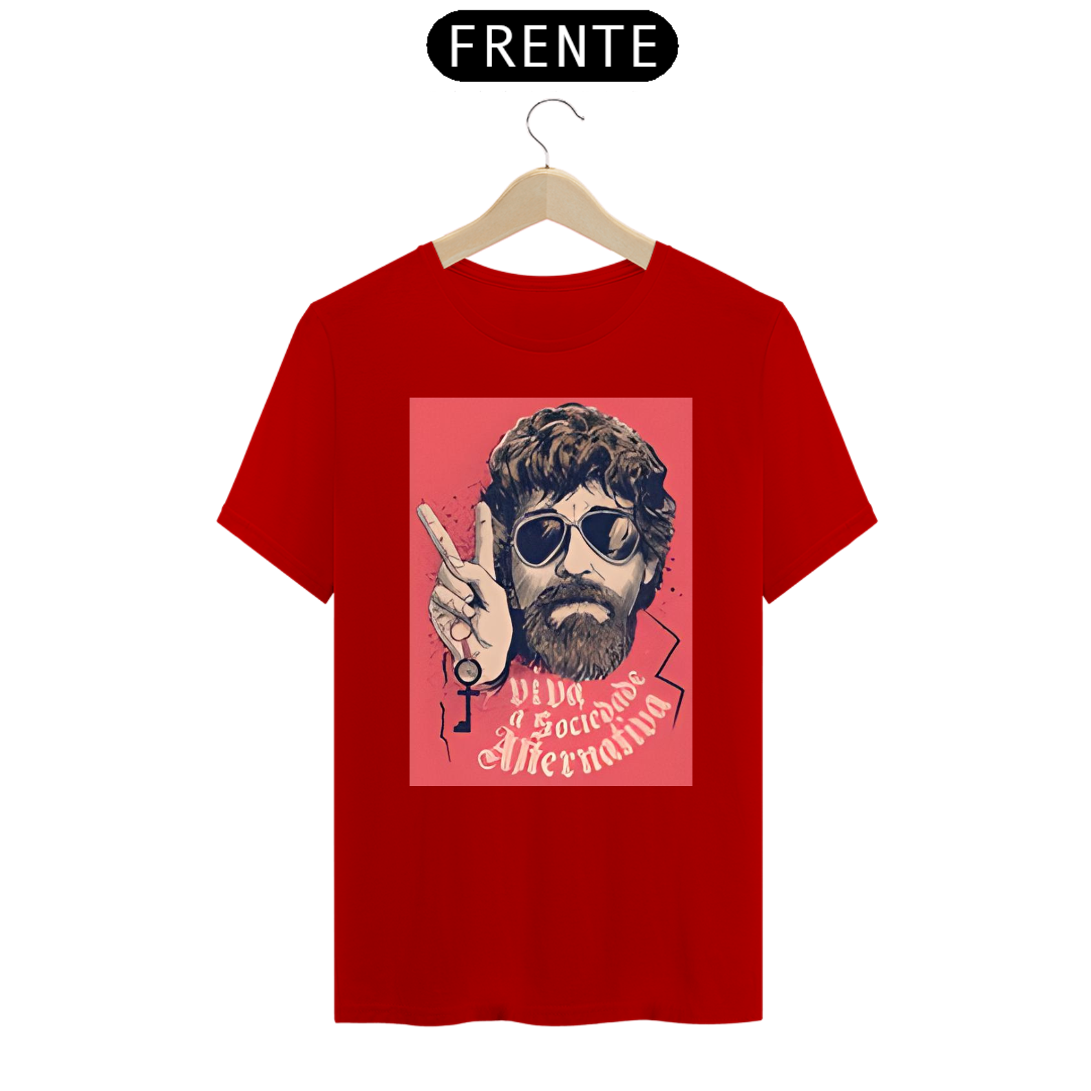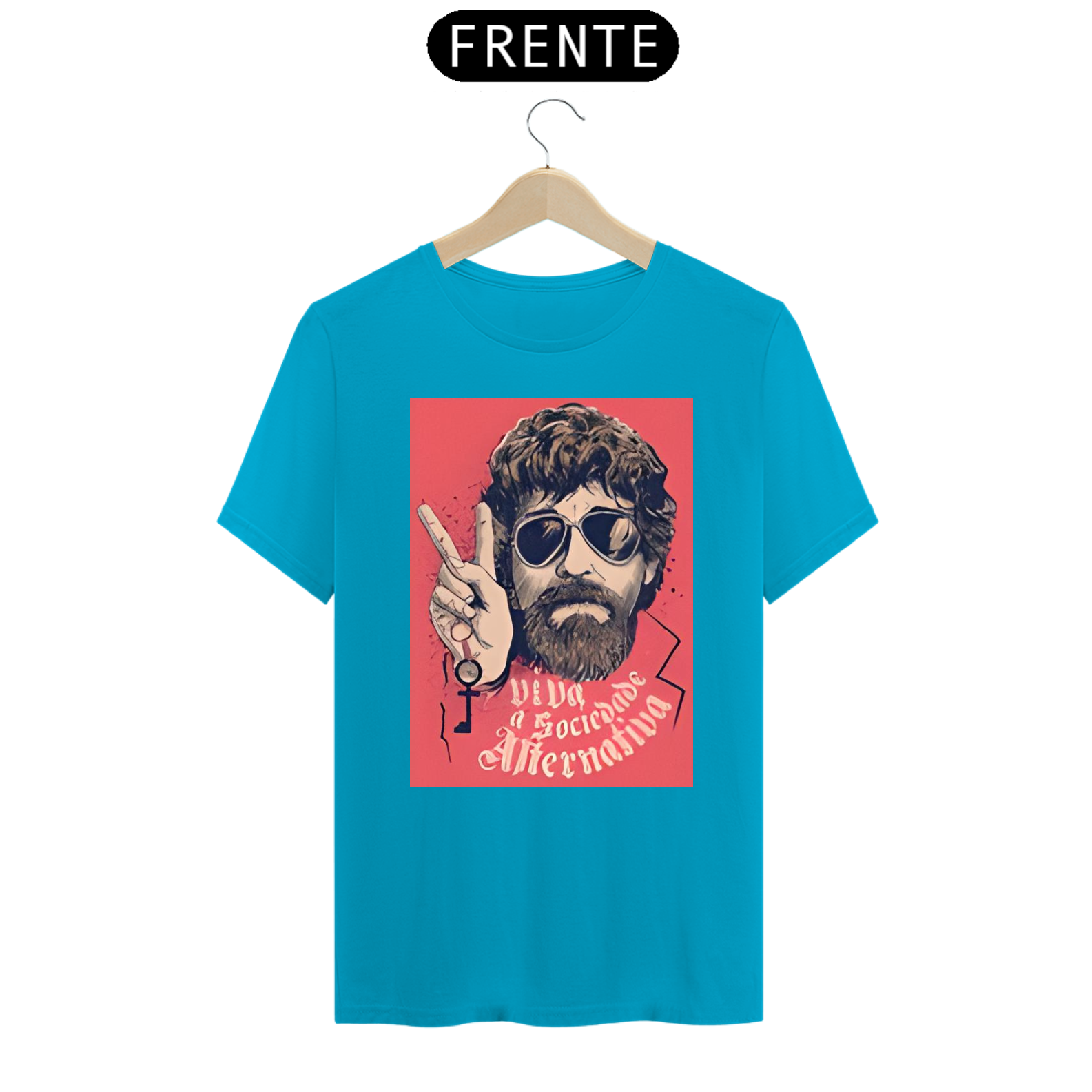 Esta camiseta estampada é uma homenagem ao icônico cantor e compositor brasileiro Raul Seixas. A estampa traz uma imagem marcante de Raul Seixas, juntamente com elementos que representam sua personalidade e sua contribuição para a música brasileira.
