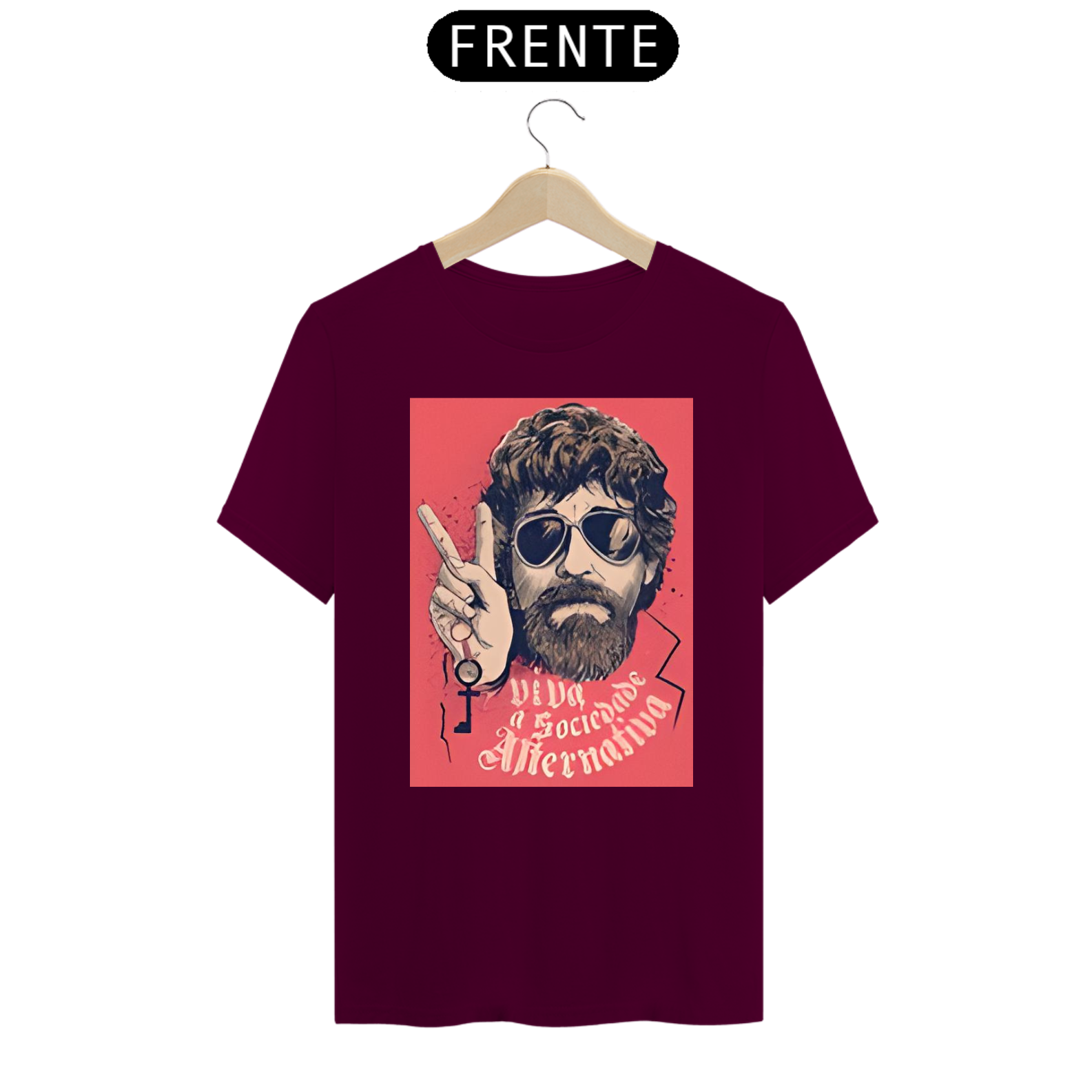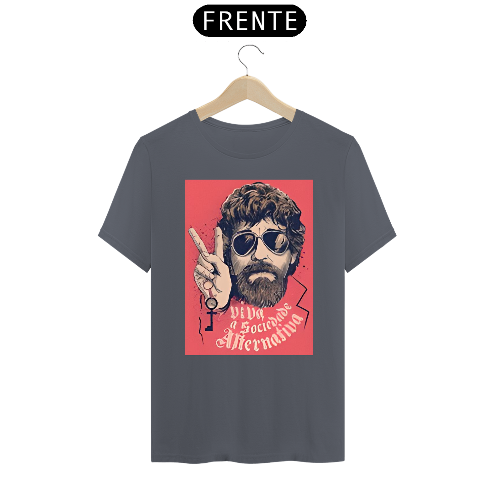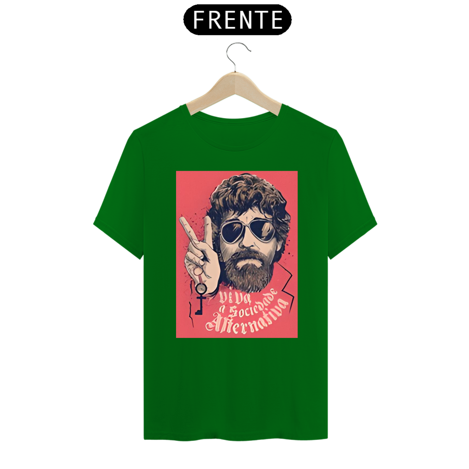 Esta camiseta estampada é uma homenagem ao icônico cantor e compositor brasileiro Raul Seixas. A estampa traz uma imagem marcante de Raul Seixas, juntamente com elementos que representam sua personalidade e sua contribuição para a música brasileira.
