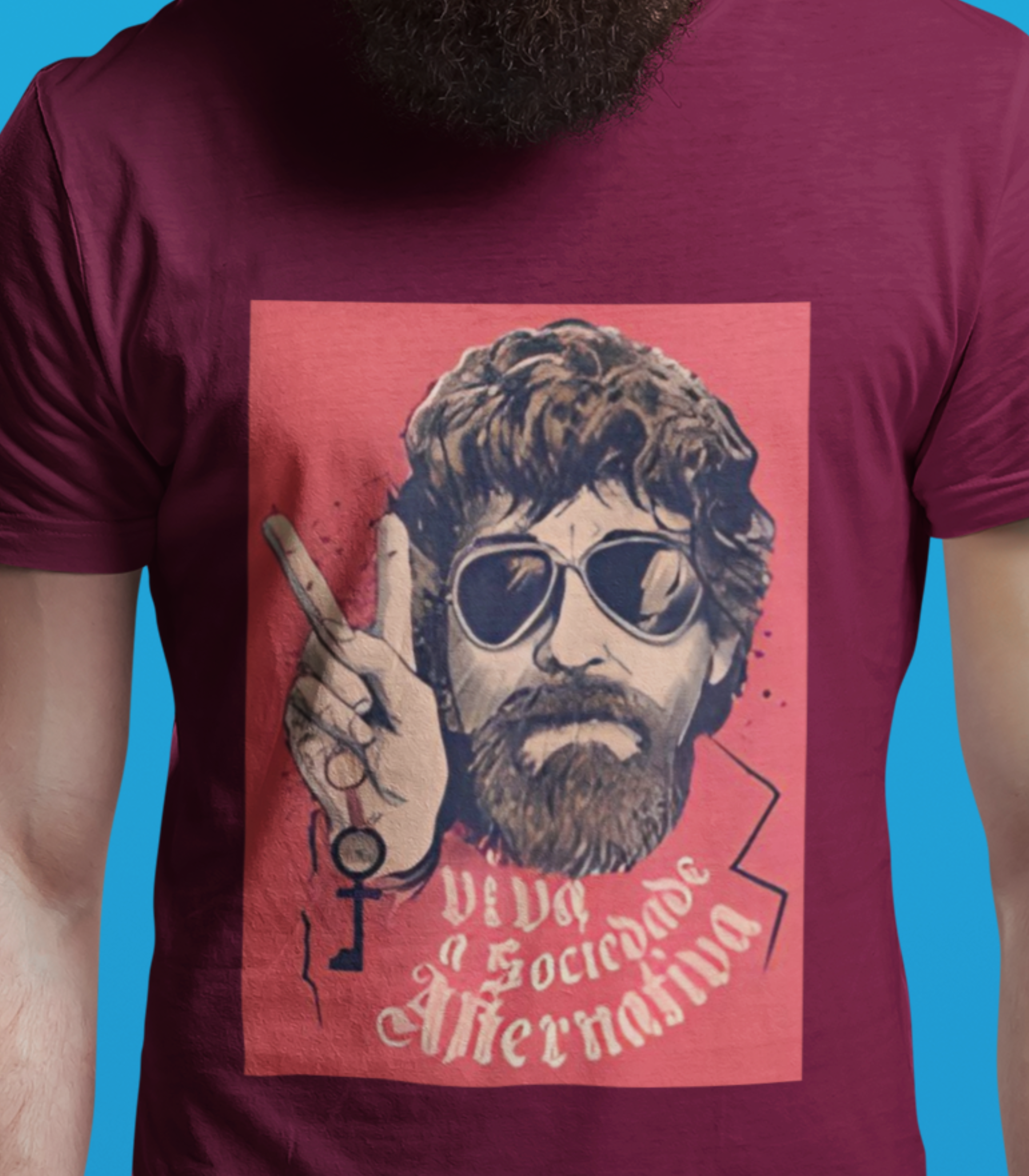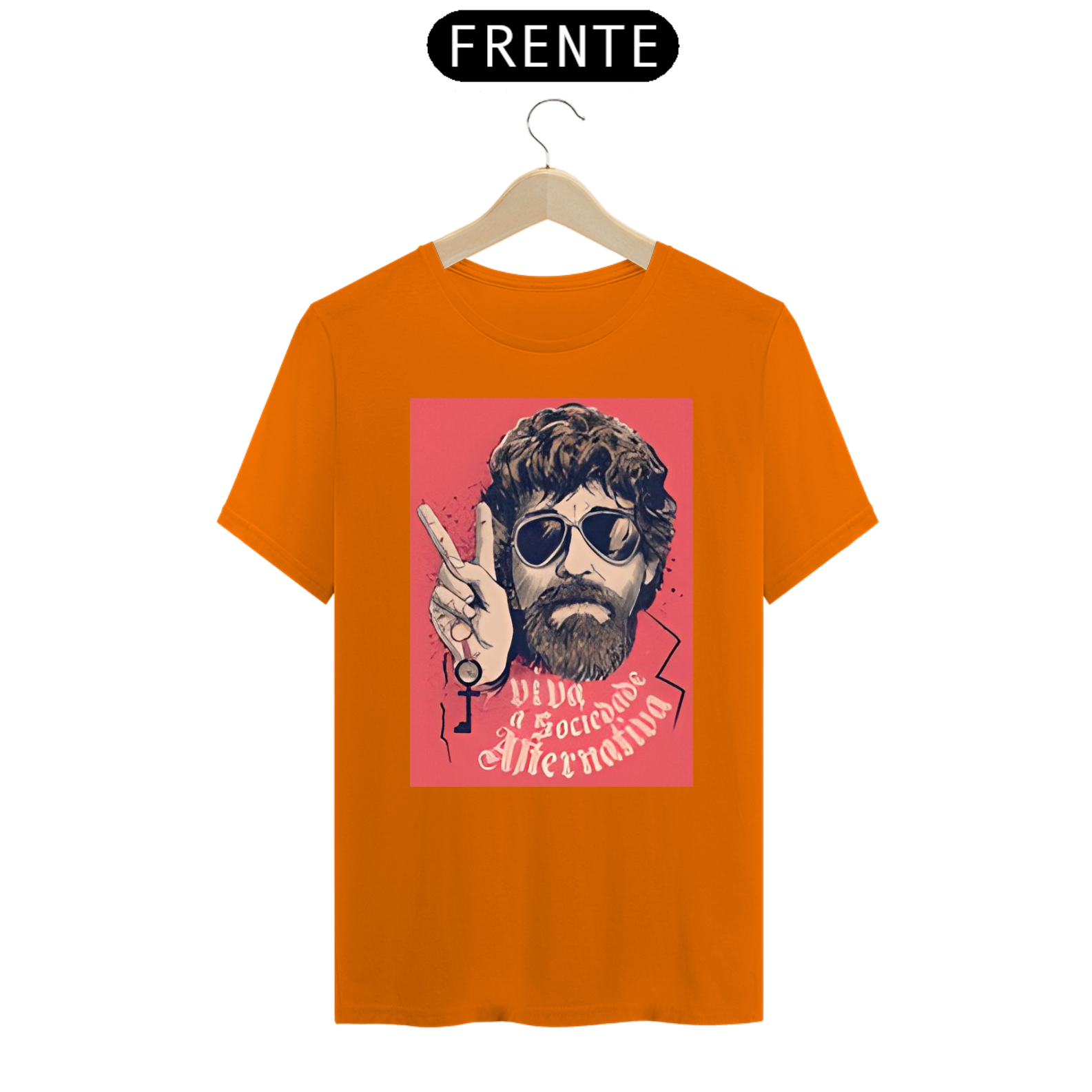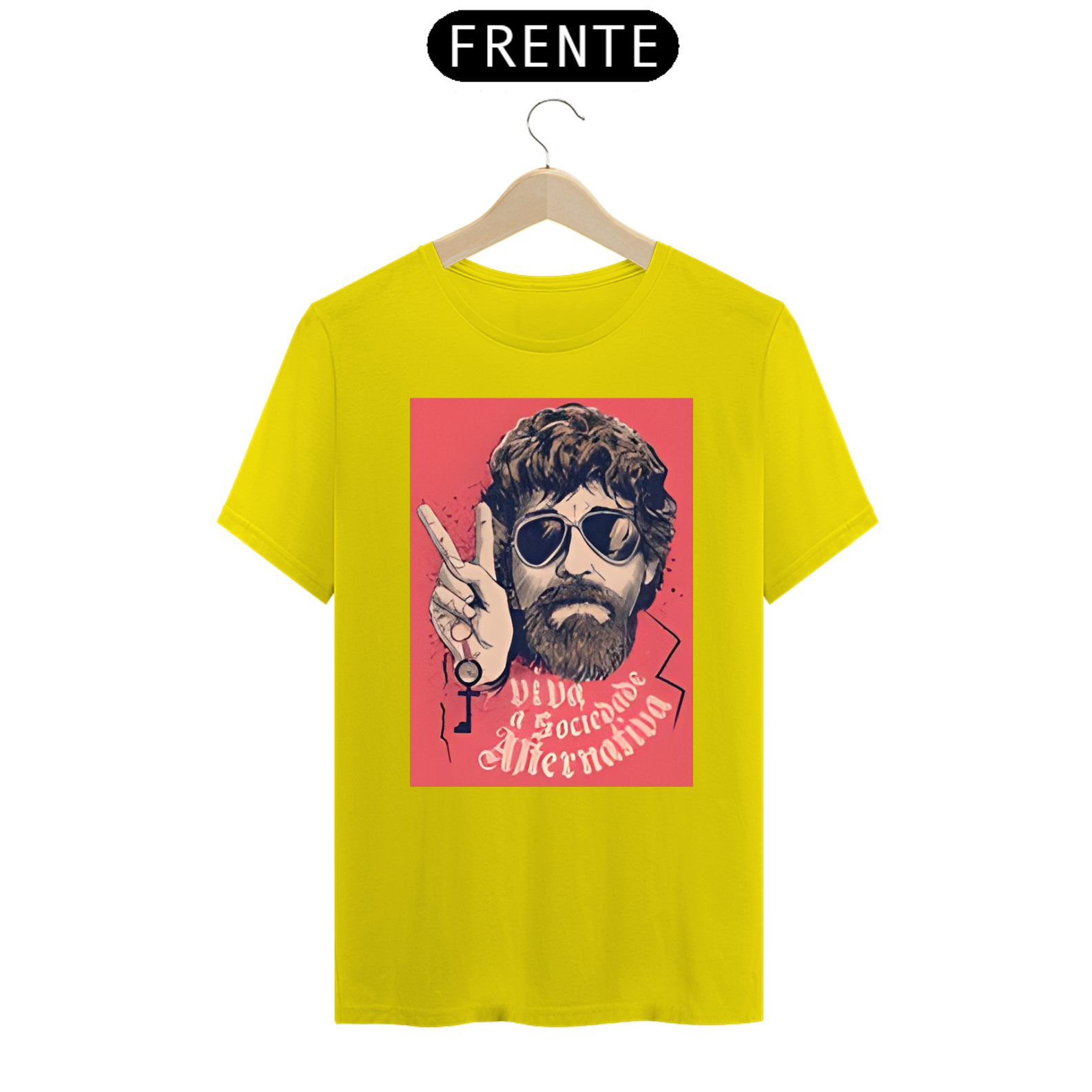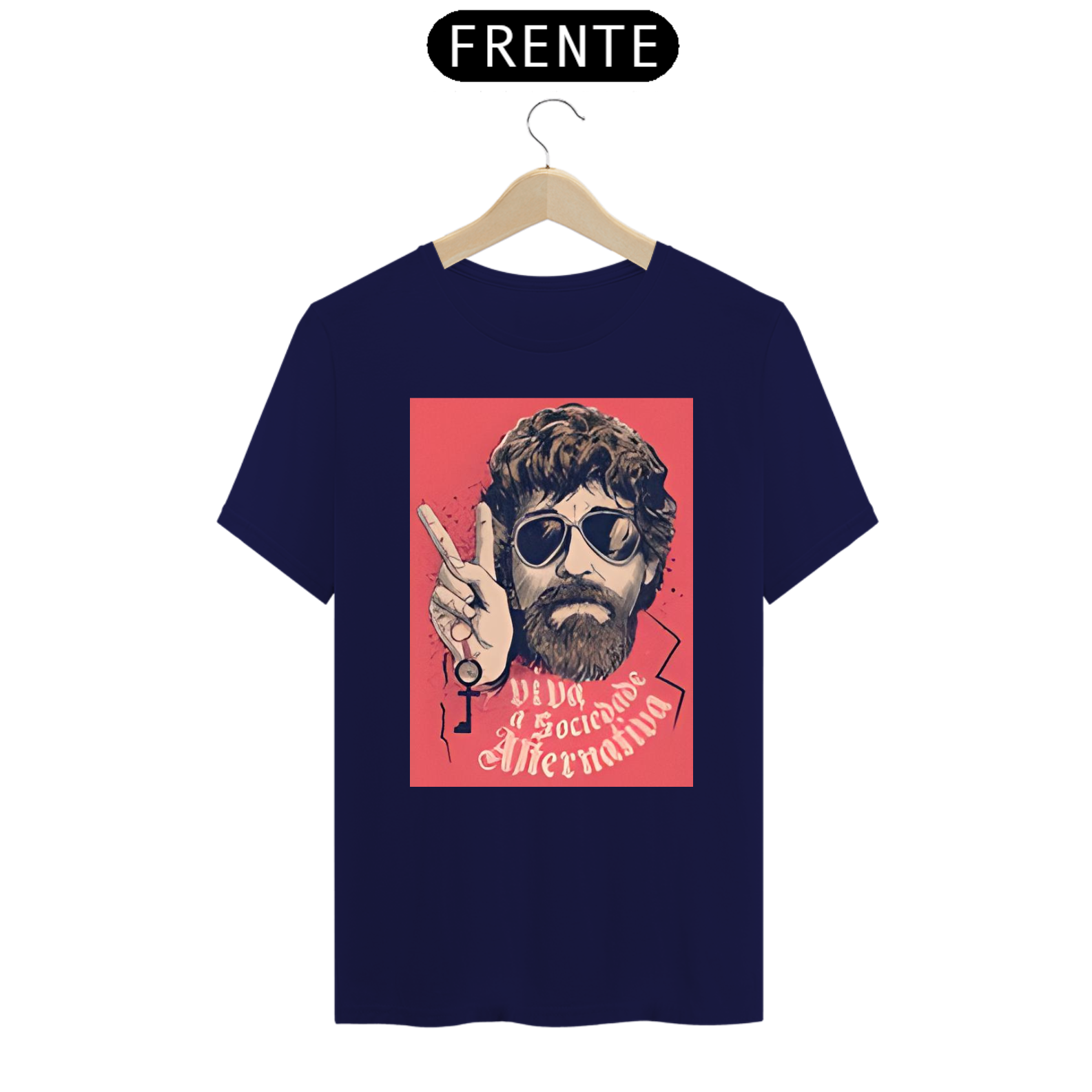 Esta camiseta estampada é uma homenagem ao icônico cantor e compositor brasileiro Raul Seixas. A estampa traz uma imagem marcante de Raul Seixas, juntamente com elementos que representam sua personalidade e sua contribuição para a música brasileira.