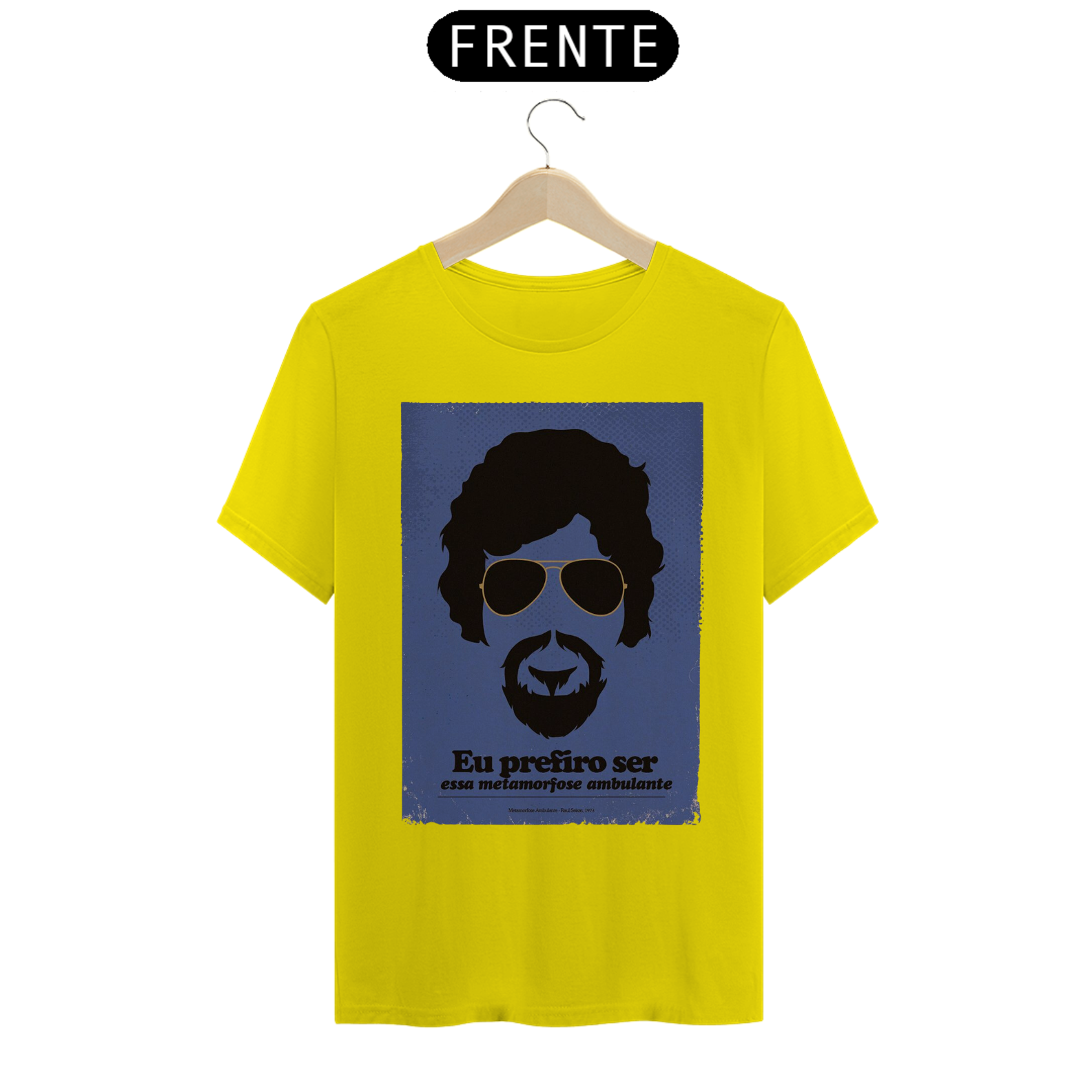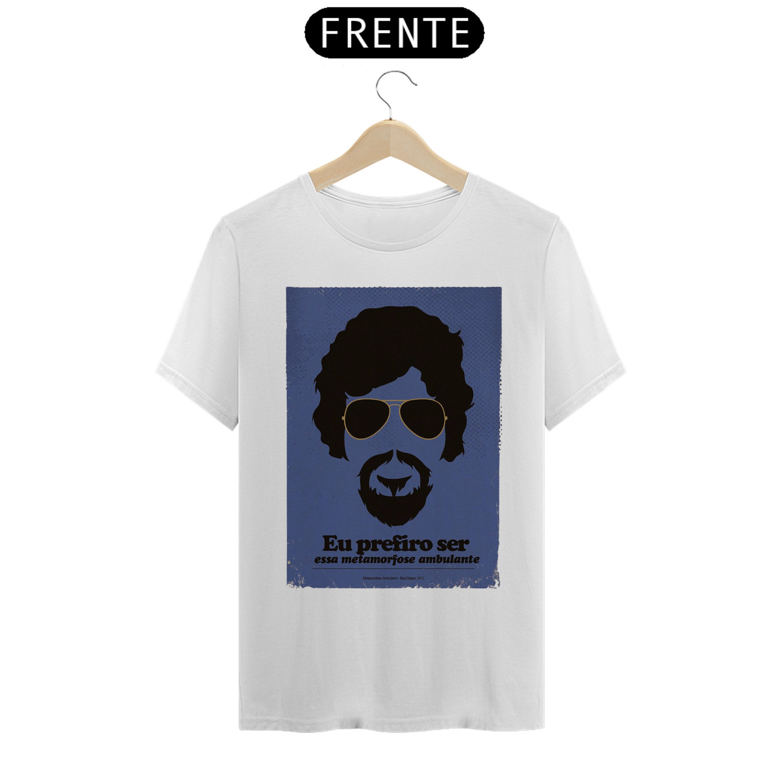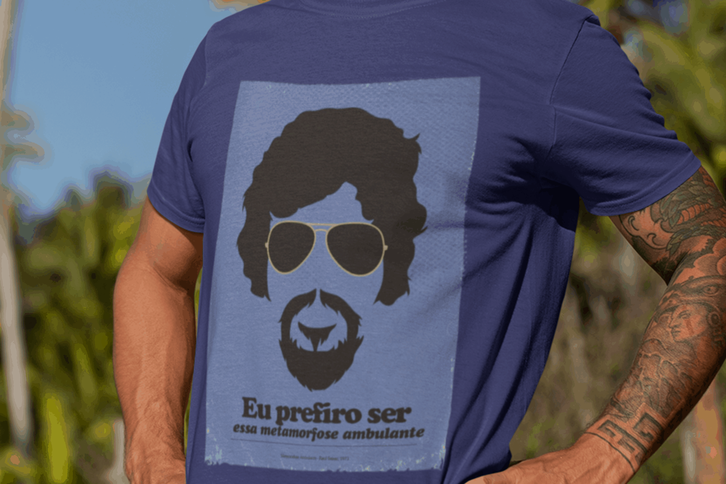 Camiseta estampada com a lenda do rock brasileiro, Raul Seixas. Celebre a rebeldia e a poesia deste ícone da música nacional com estilo e atitude.