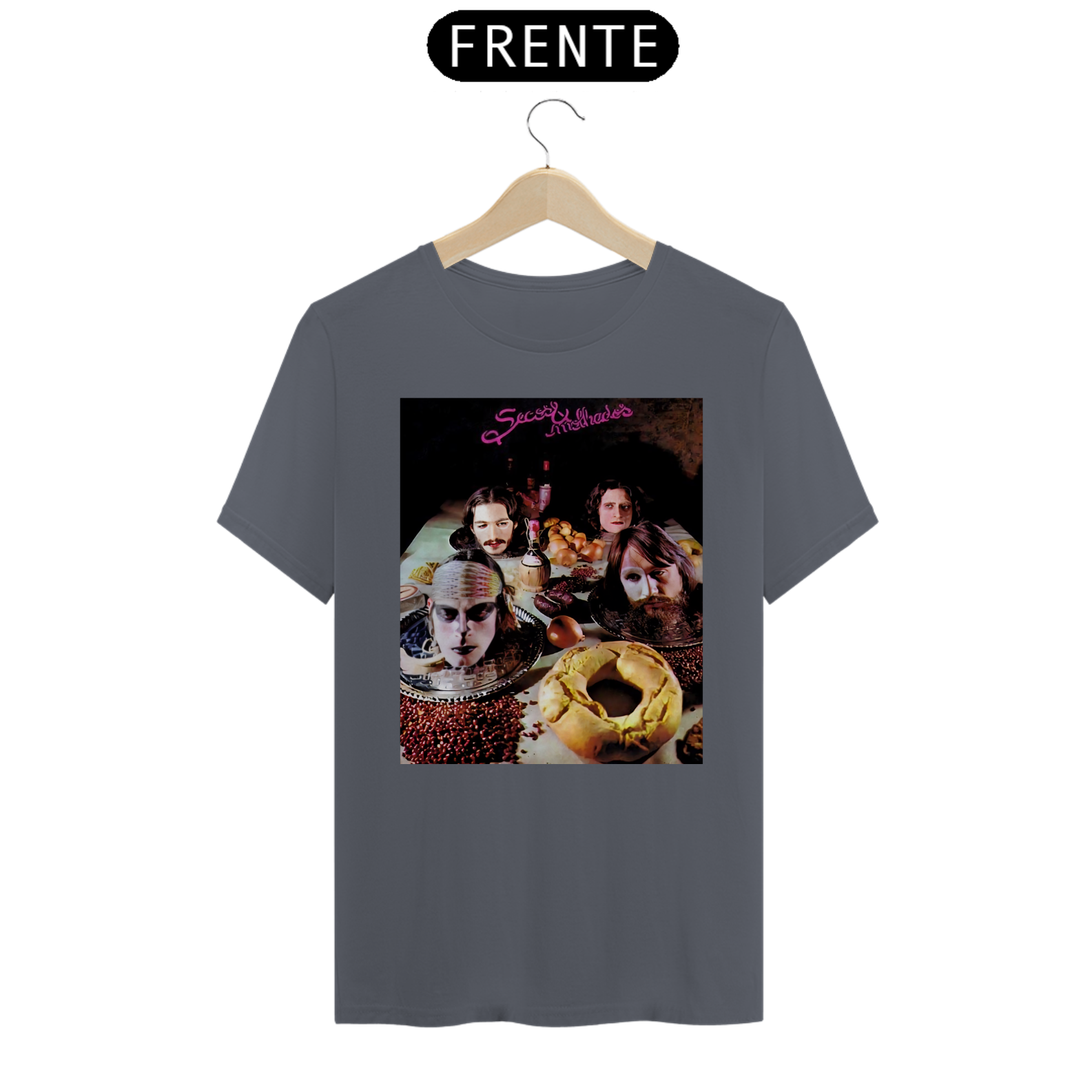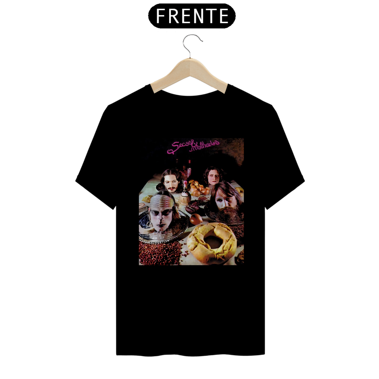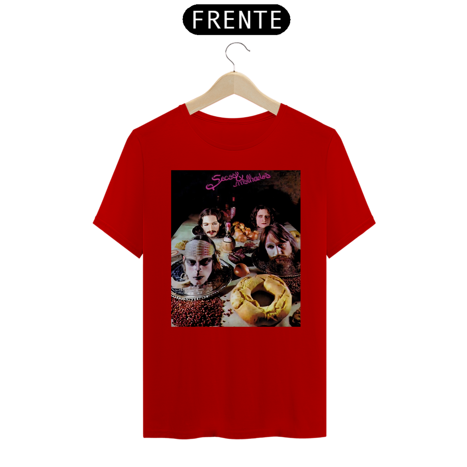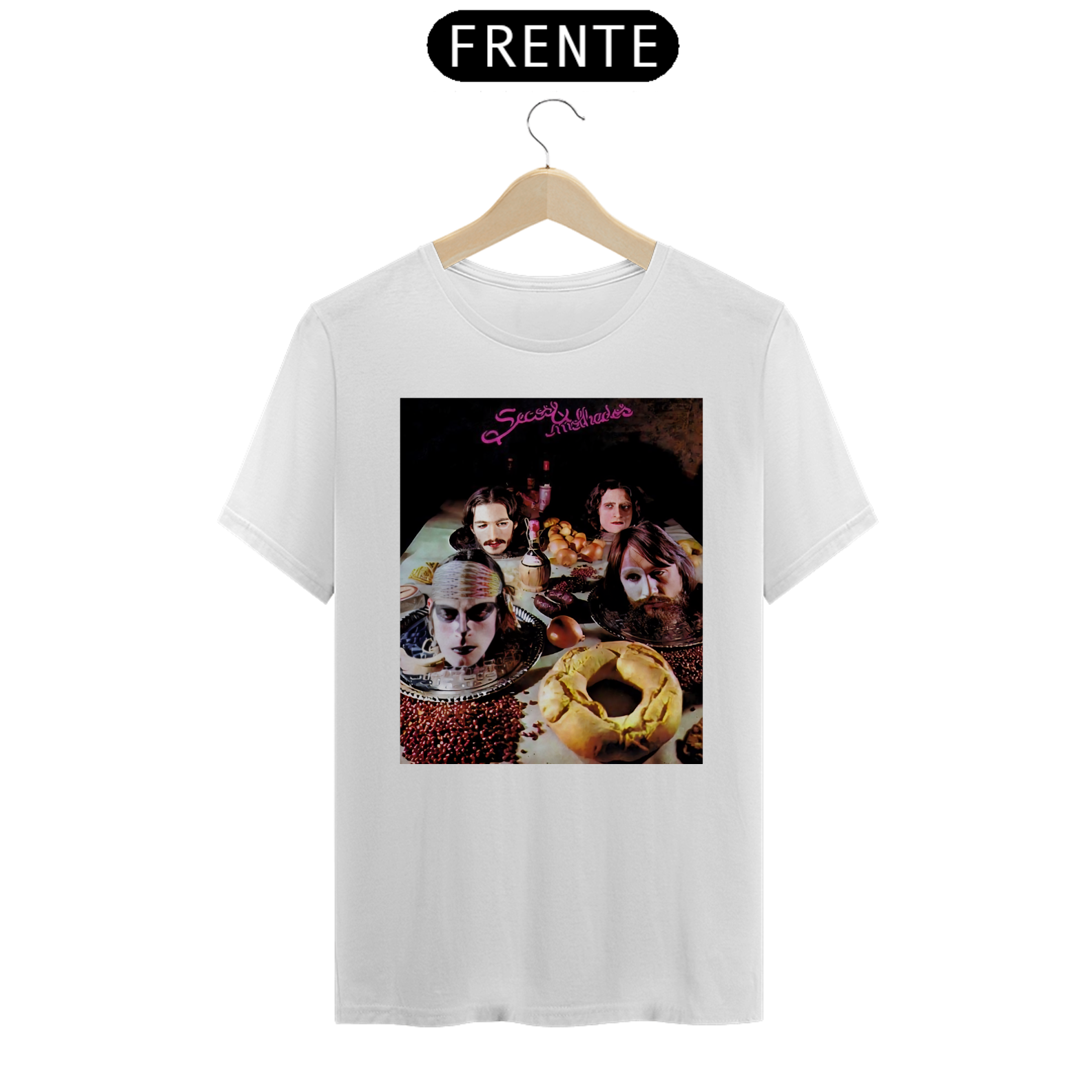 Embrace a estética marcante do rock brasileiro com esta camiseta estampada dos Secos e Molhados. A arte vibrante captura a ousadia e a poesia que definem a banda.