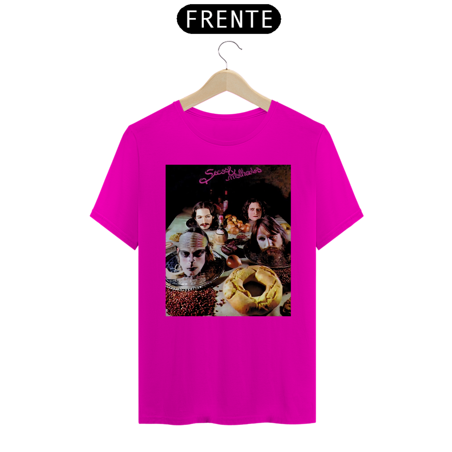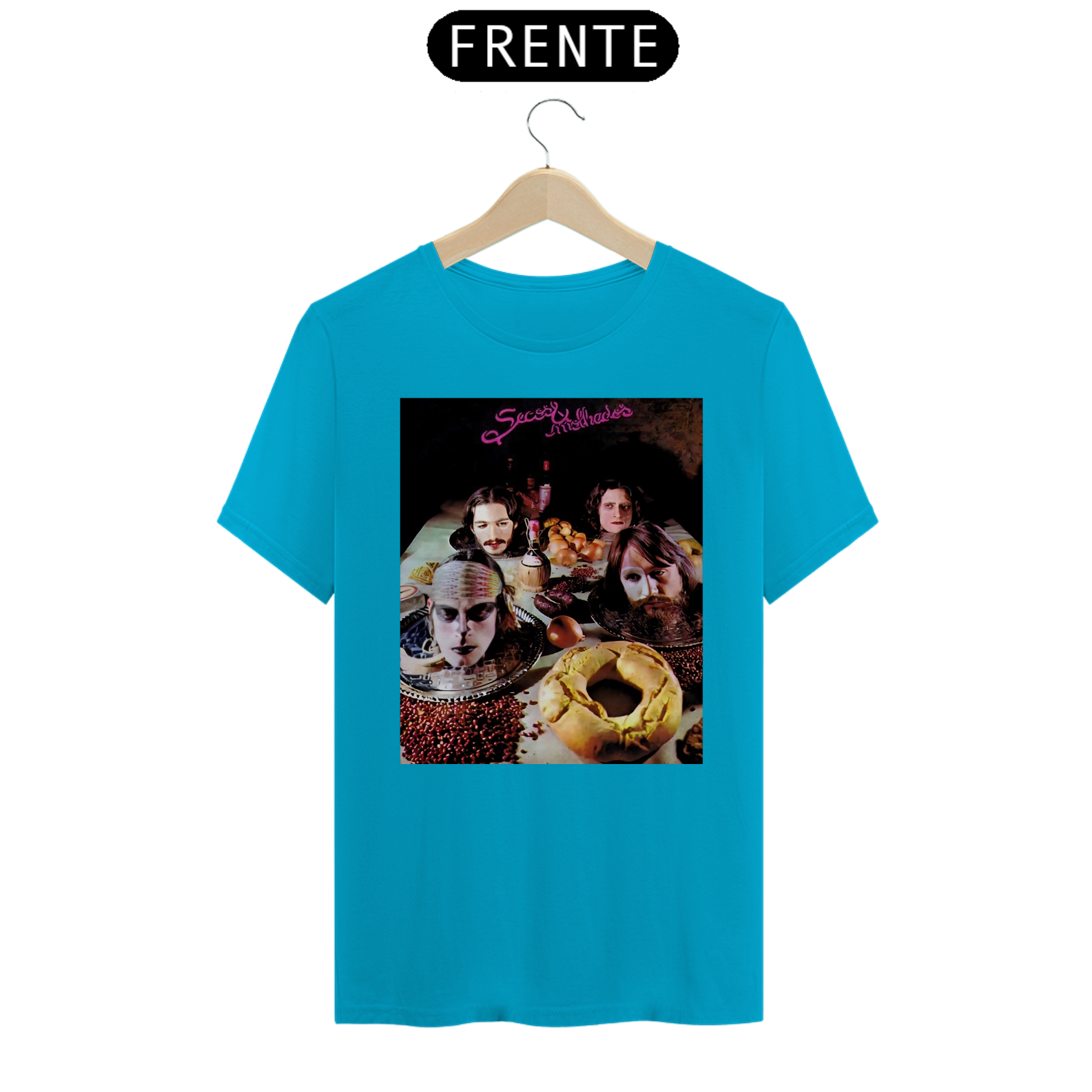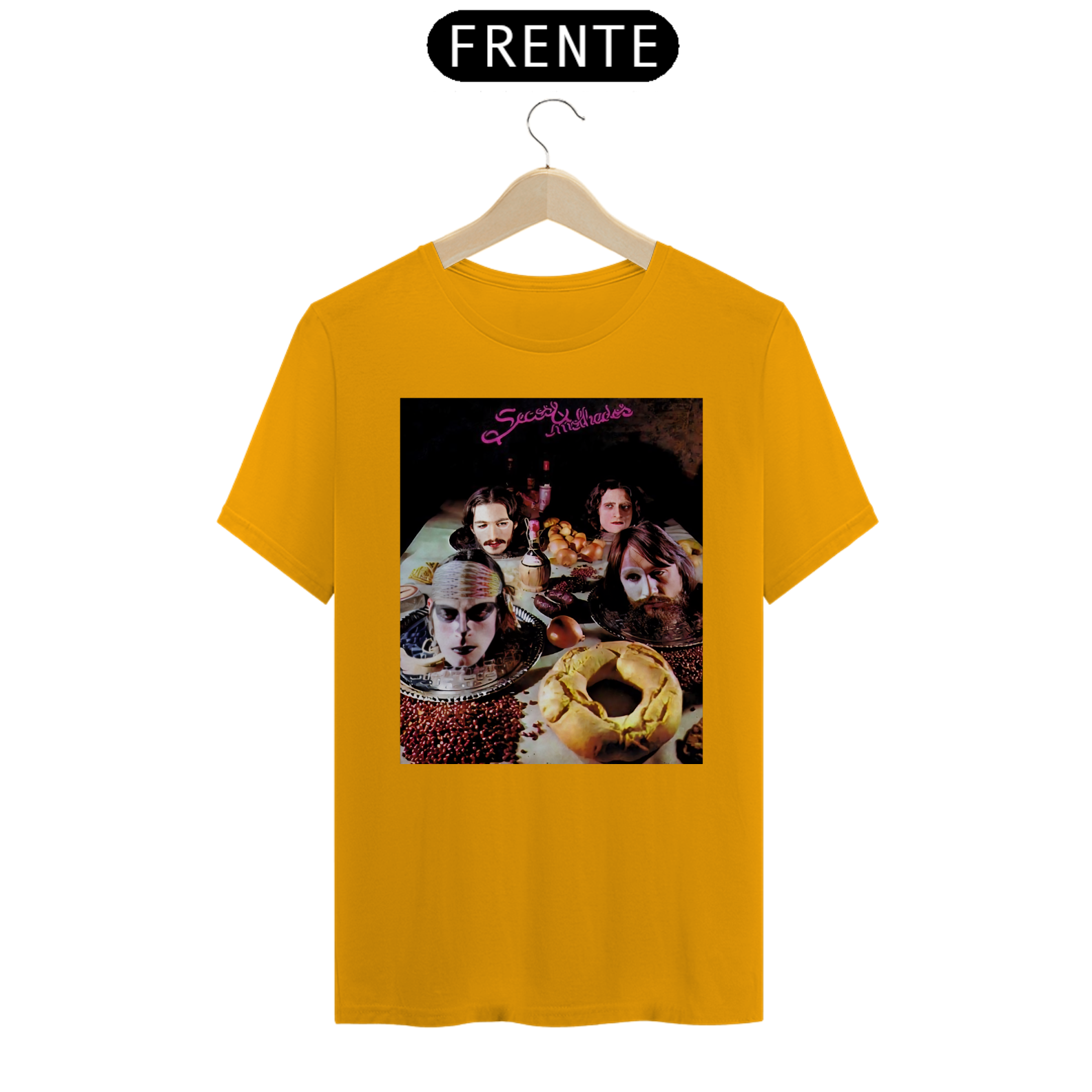 Embrace a estética marcante do rock brasileiro com esta camiseta estampada dos Secos e Molhados. A arte vibrante captura a ousadia e a poesia que definem a banda.
