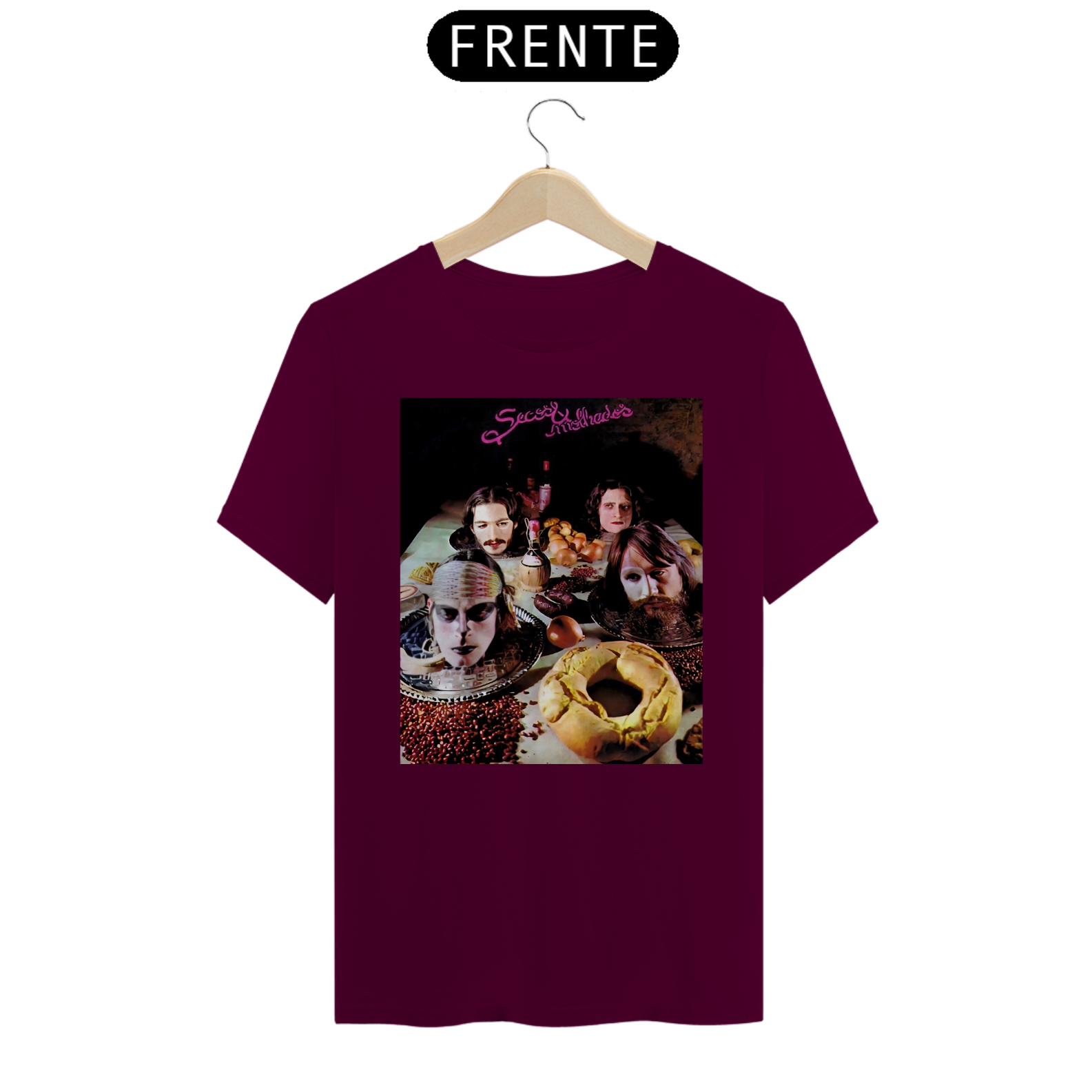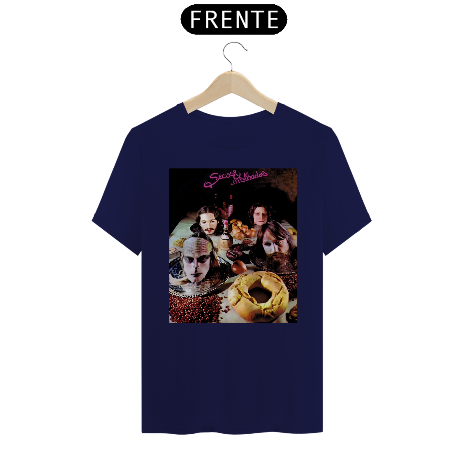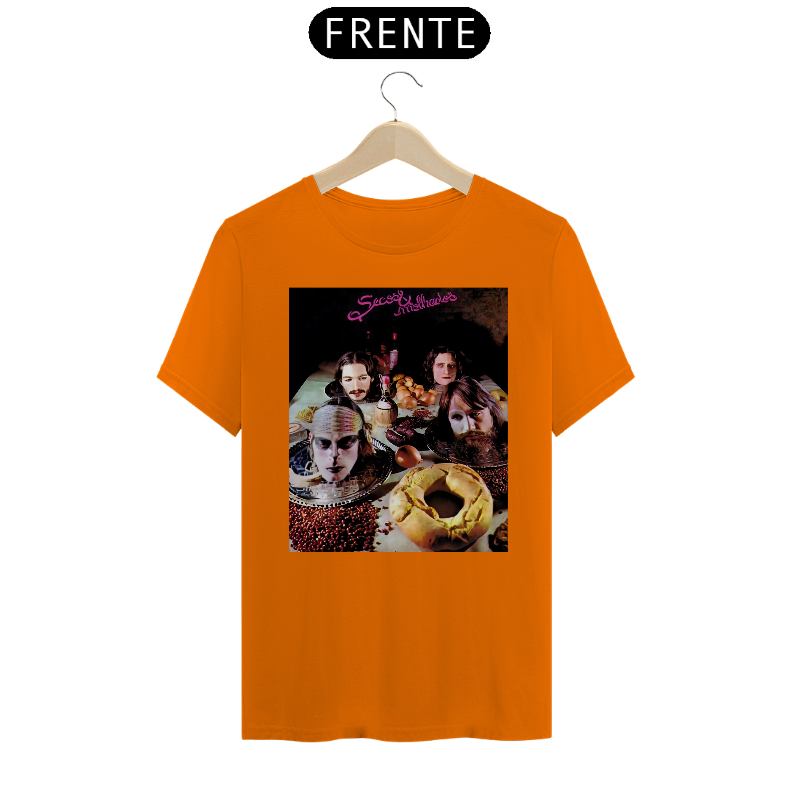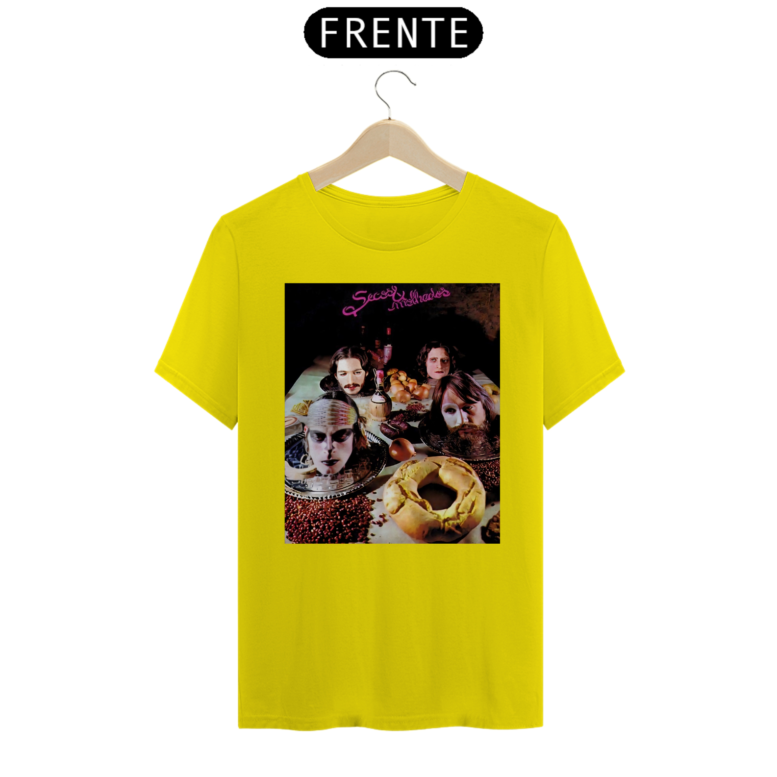 Embrace a estética marcante do rock brasileiro com esta camiseta estampada dos Secos e Molhados. A arte vibrante captura a ousadia e a poesia que definem a banda.