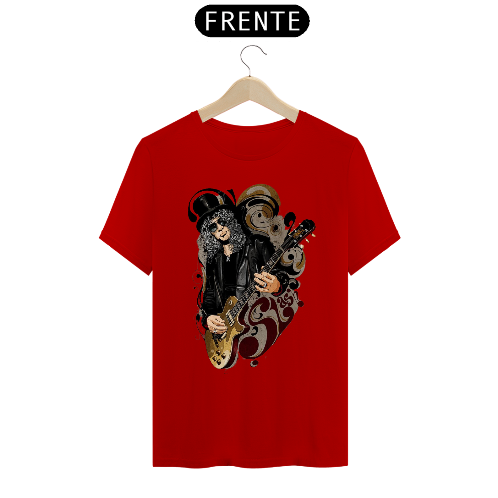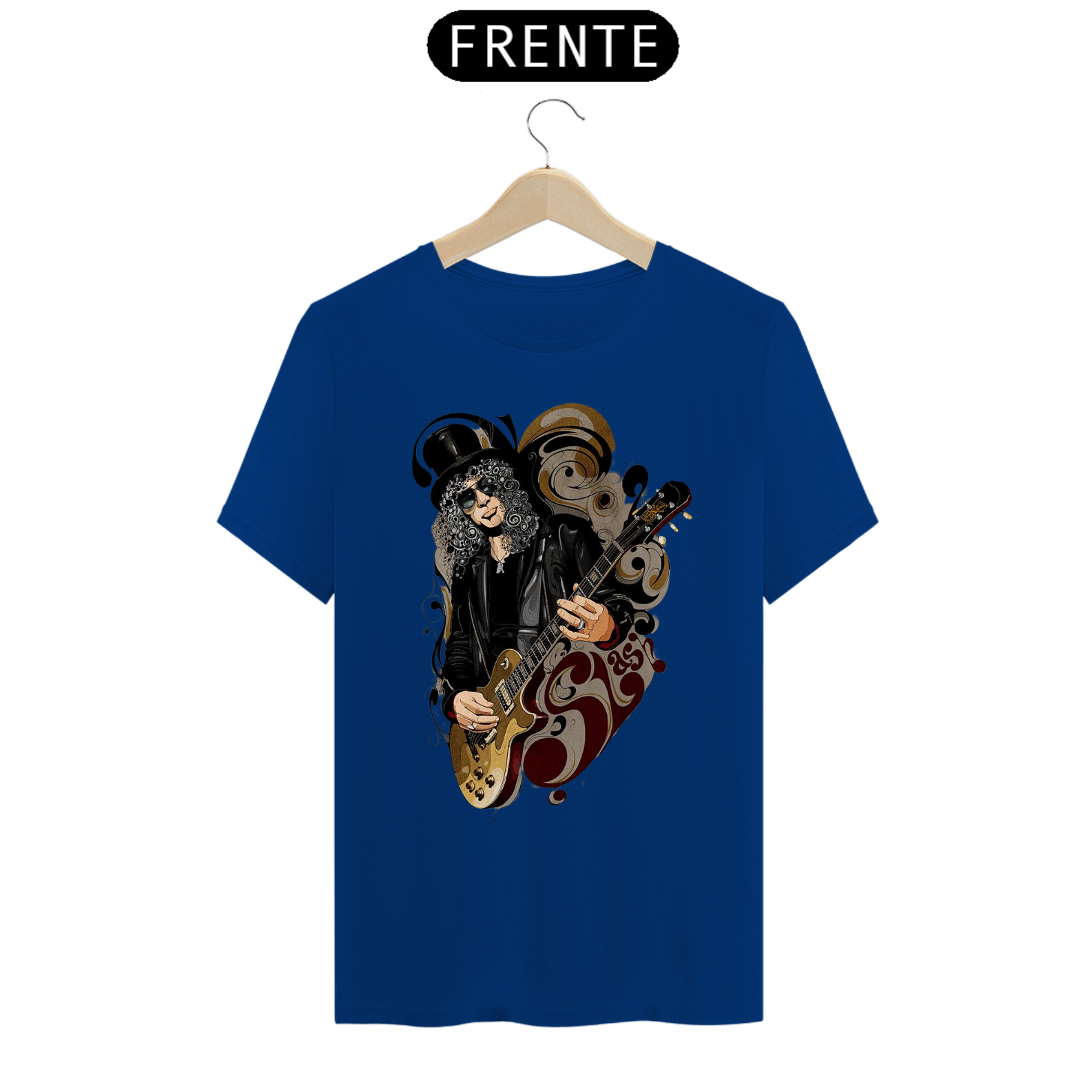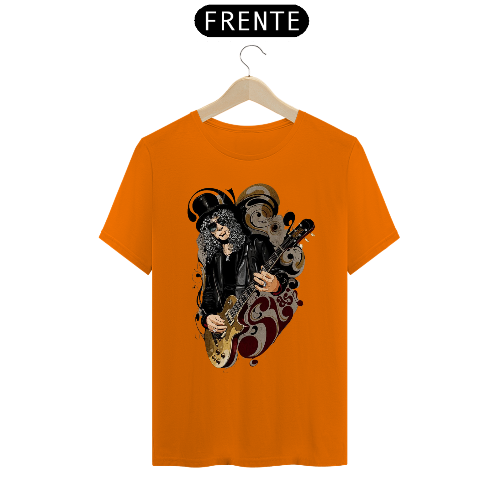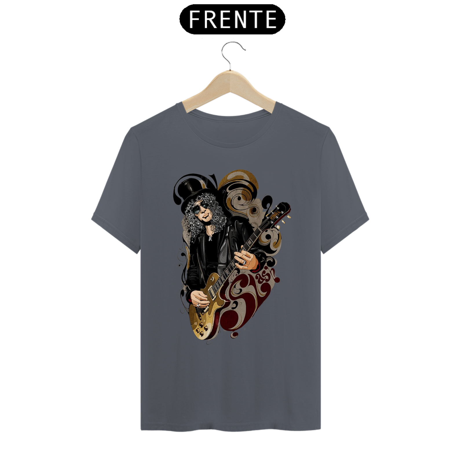Esta camiseta estampada é uma homenagem ao lendário guitarrista Slash. A estampa traz uma imagem icônica do músico, com seu chapéu característico e sua guitarra em mãos, transmitindo toda sua atitude e talento.