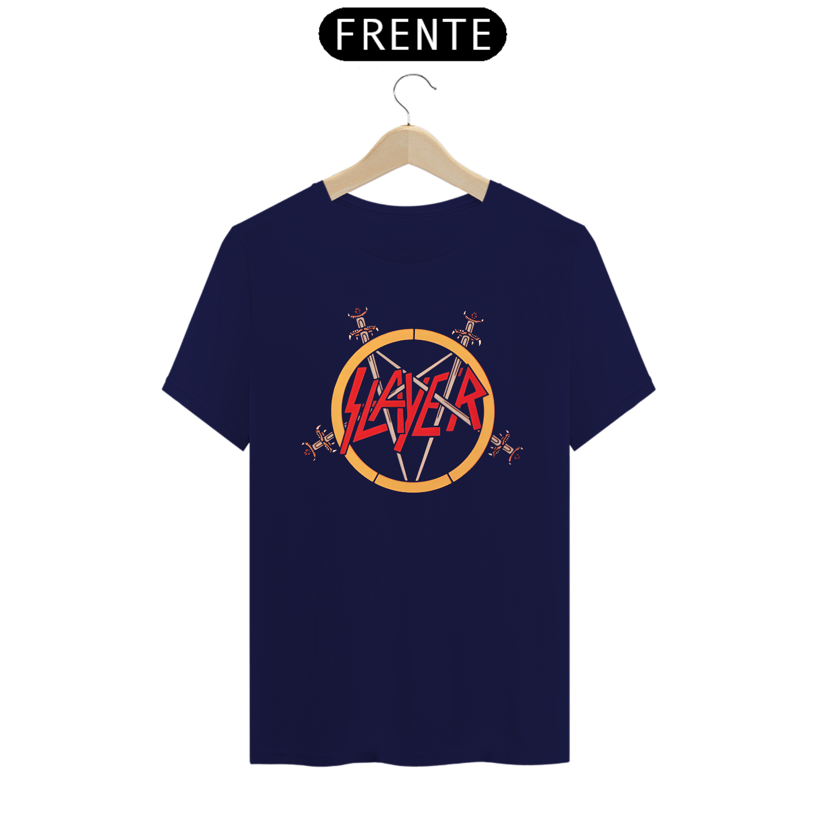 Esta camiseta estampada é perfeita para os fãs da lendária banda de thrash metal Slayer. A estampa traz o logotipo característico da banda.