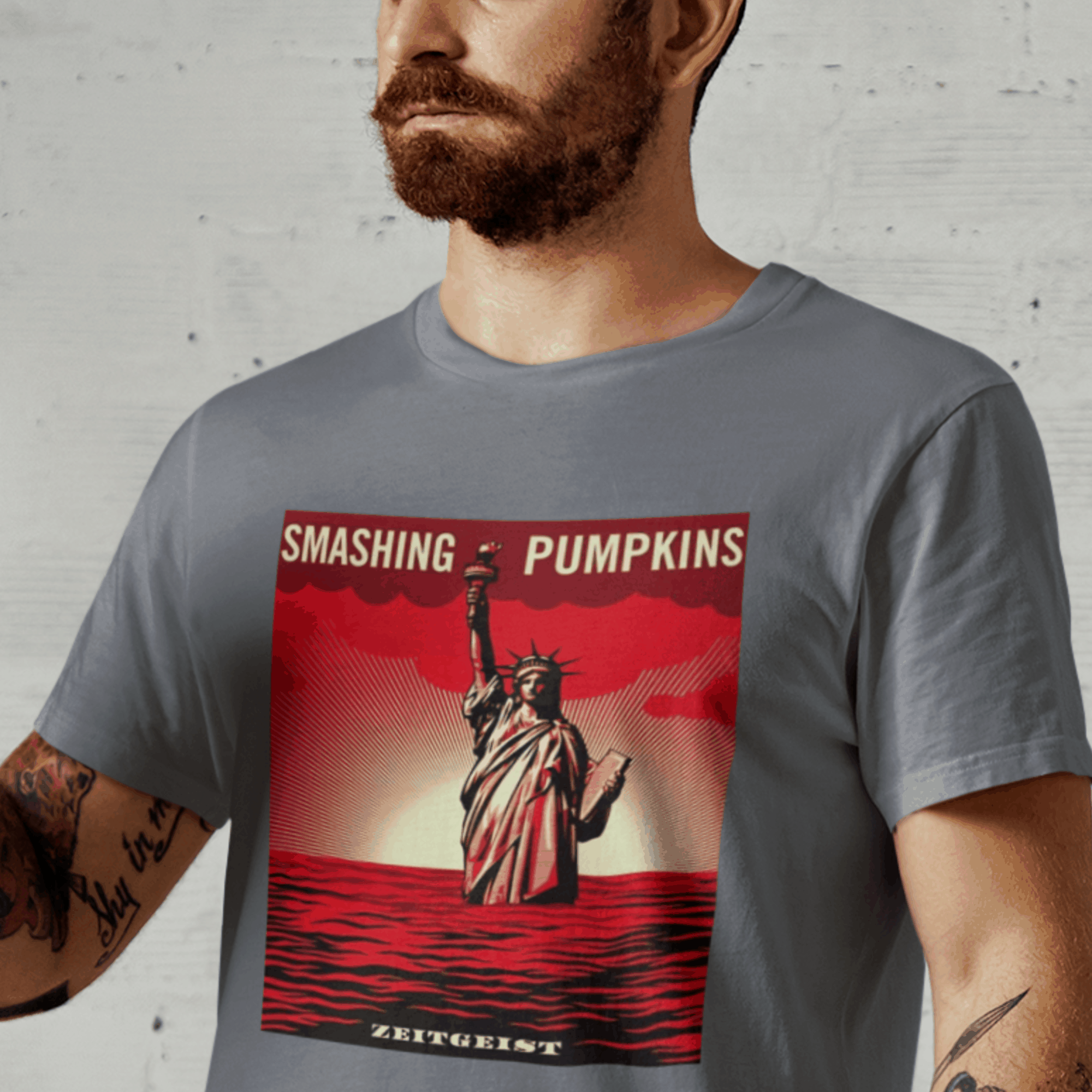 Expresse sua paixão pelo rock alternativo com esta camiseta estampada da banda Smashing Pumpkins. A arte vibrante celebra a energia inconfundível e o legado sonoro dessa icônica banda.