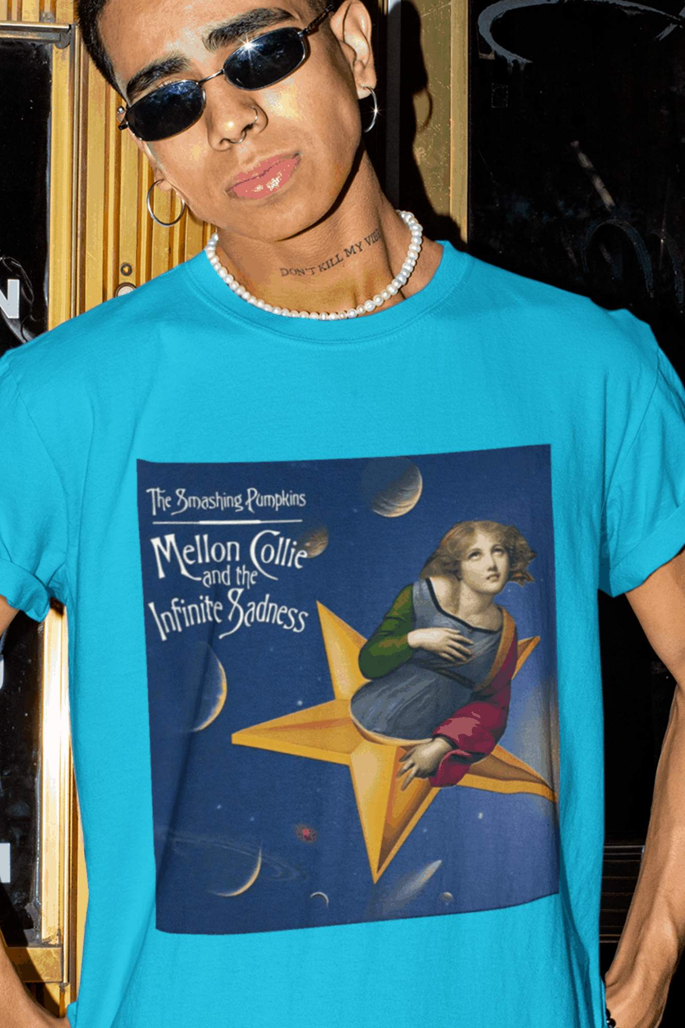 Expresse sua paixão pelo rock alternativo com esta camiseta estampada da banda Smashing Pumpkins. A arte vibrante celebra a energia inconfundível e o legado sonoro dessa icônica banda.