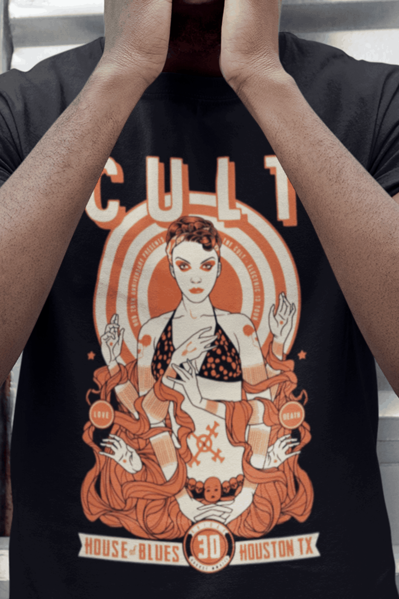 Vista-se com o estilo atemporal e a atitude inconfundível do The Cult, mostrando ao mundo sua conexão com riffs poderosos e letras impactantes.